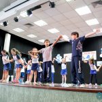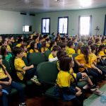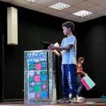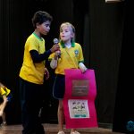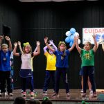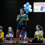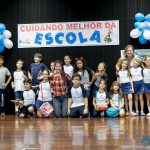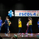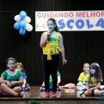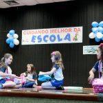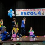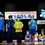 Os alunos do 3º 1 da manhã apresentaram um teatro aos alunos dos Ensino Fundamental I sobre os cuidados com a escola. A peça foi criada por eles para conscientizar os demais alunos sobre como devem cuidar bem do lugar onde estudam, como não jogar lixo no chão, dar a descarga, lavar as mãos e respeitar os amigos.
