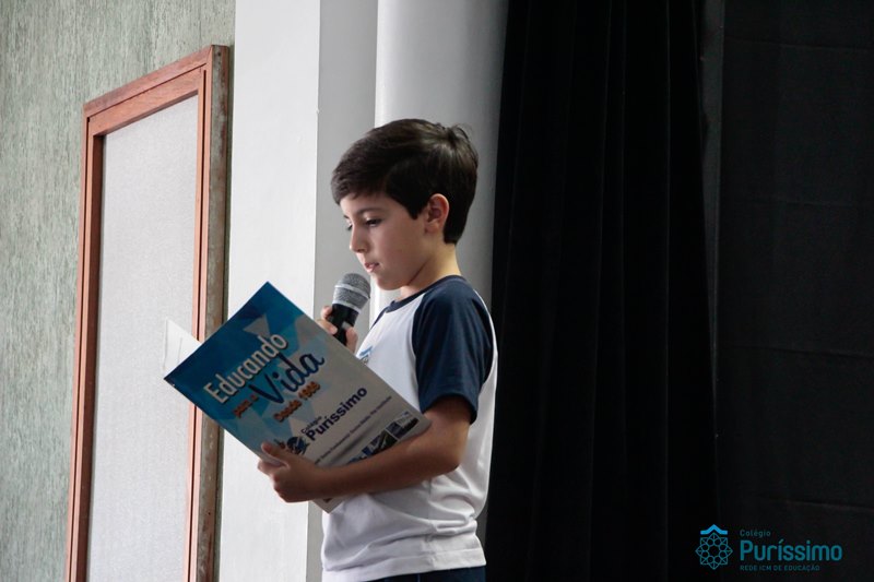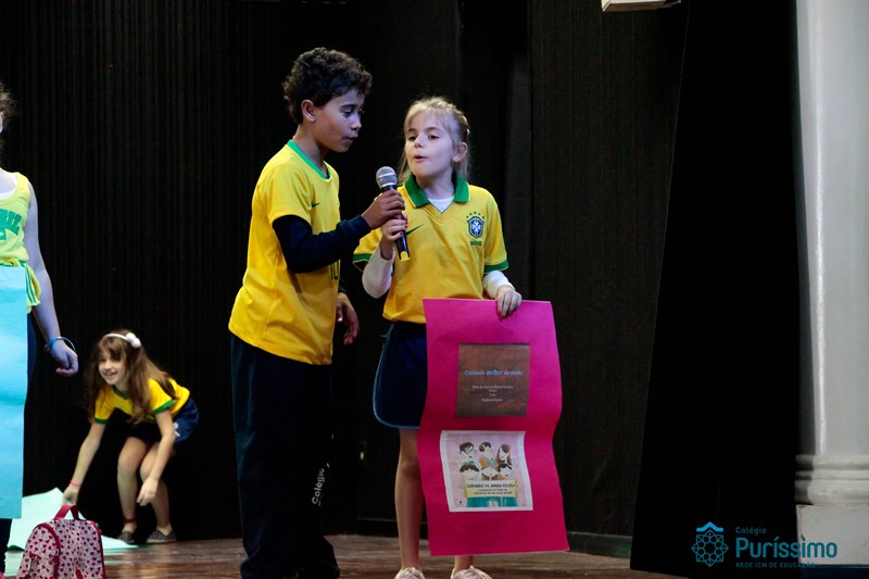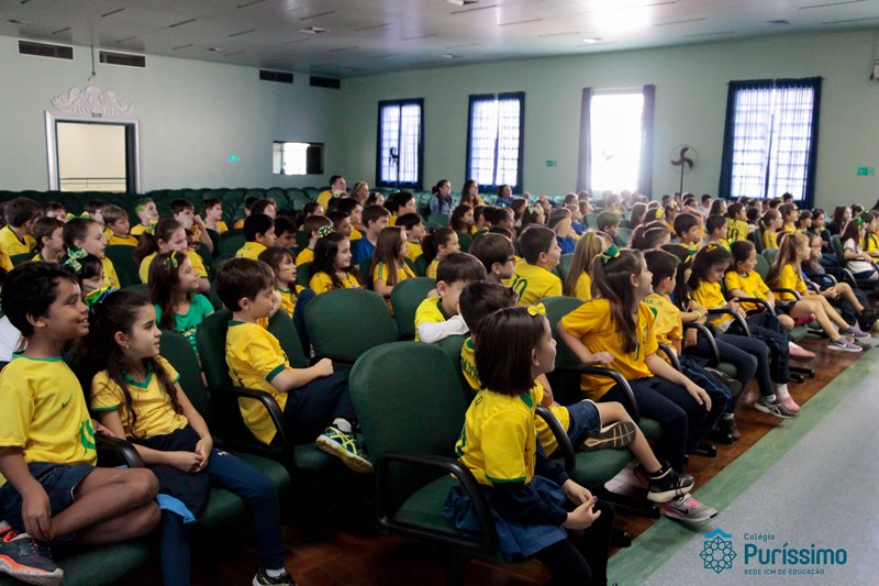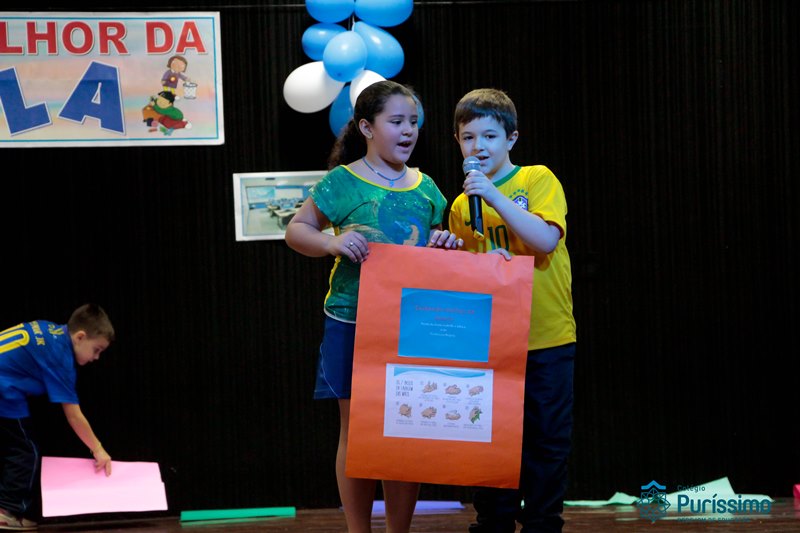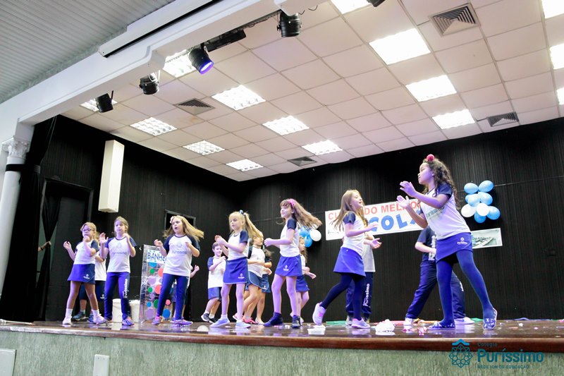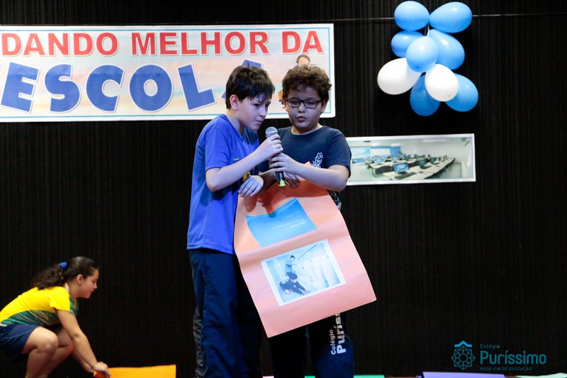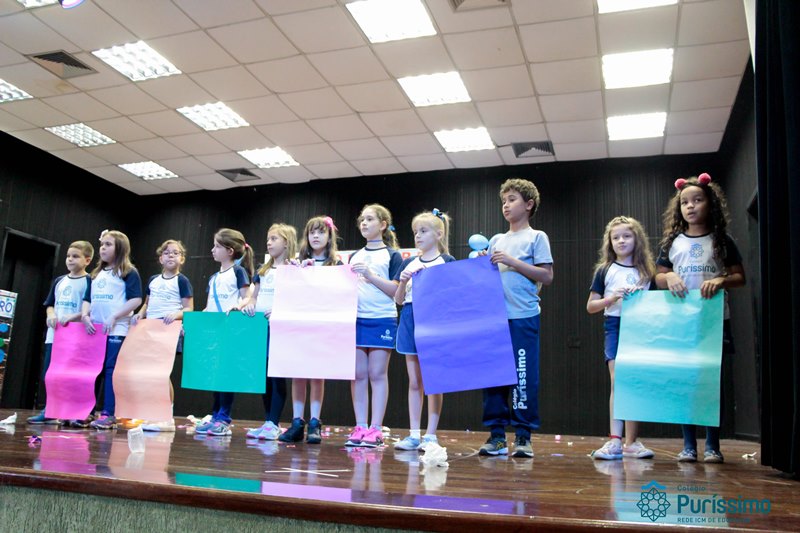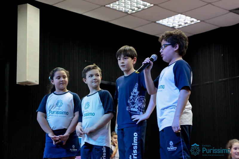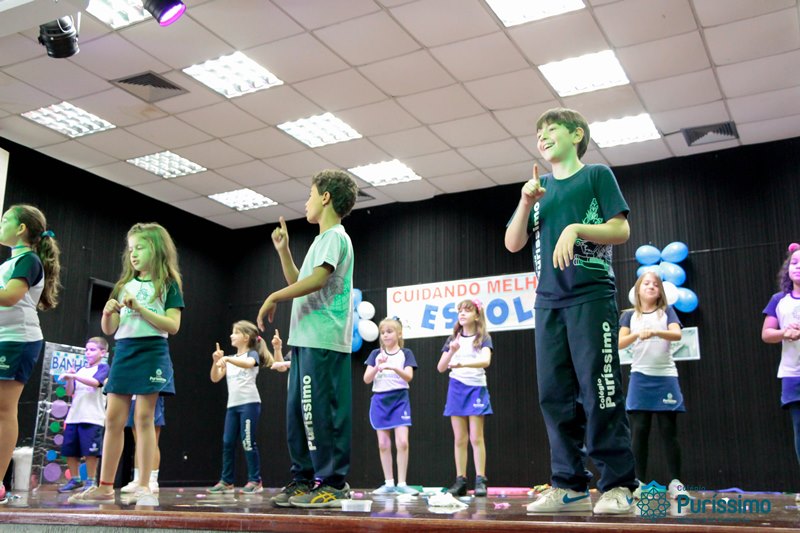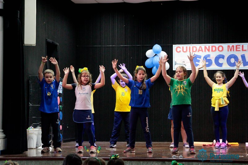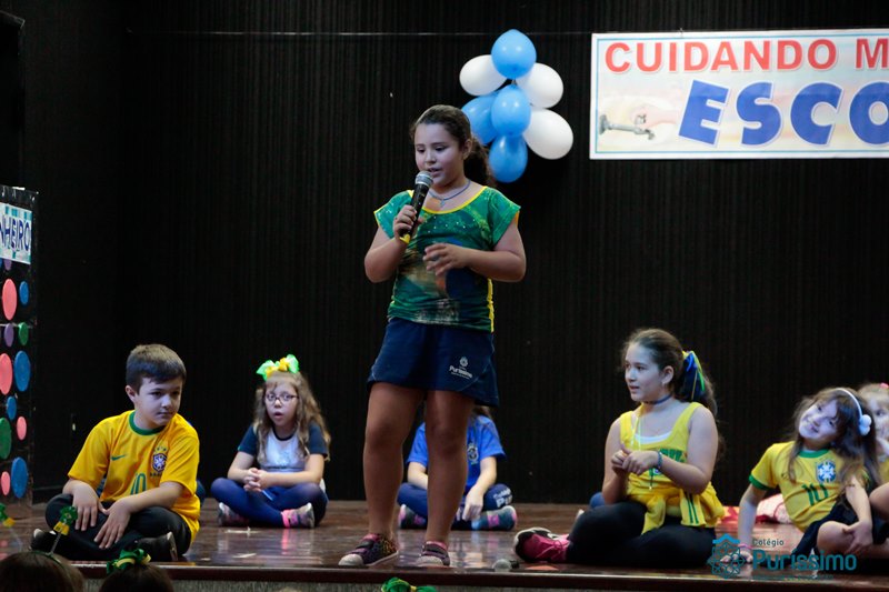 Os alunos do 3º 1 da manhã apresentaram um teatro aos alunos dos Ensino Fundamental I sobre os cuidados com a escola. A peça foi criada por eles para conscientizar os demais alunos sobre como devem cuidar bem do lugar onde estudam, como não jogar lixo no chão, dar a descarga, lavar as mãos e respeitar os amigos.