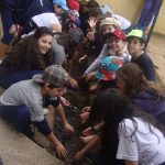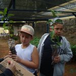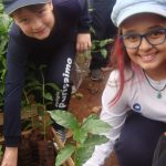 As crianças puderam plantar um pé de café e trazer uma muda para casa.