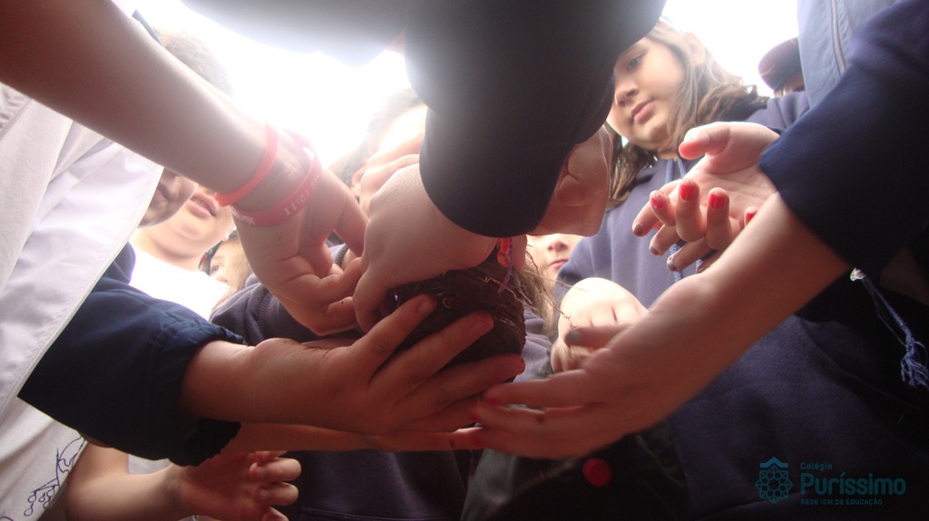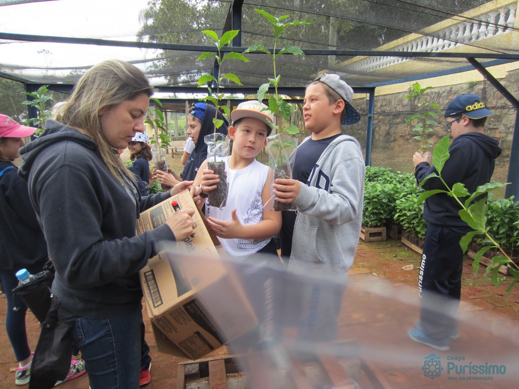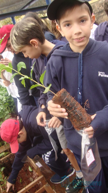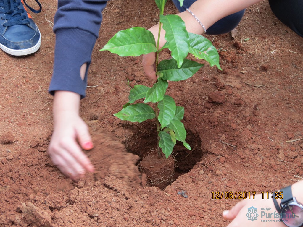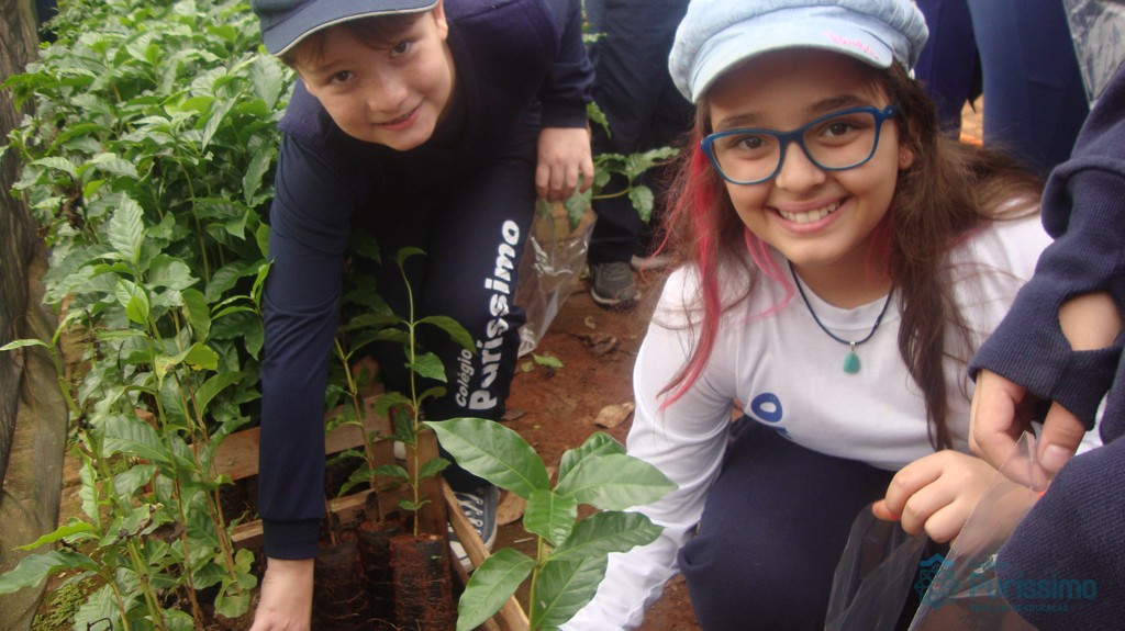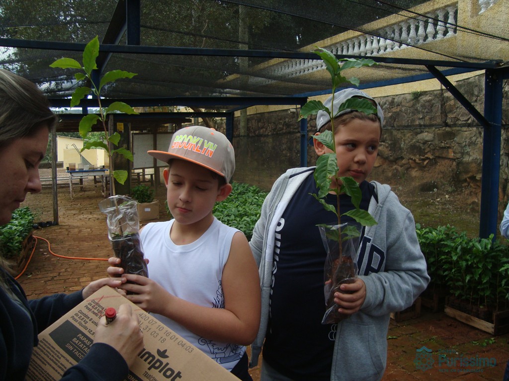 As crianças puderam plantar um pé de café e trazer uma muda para casa.