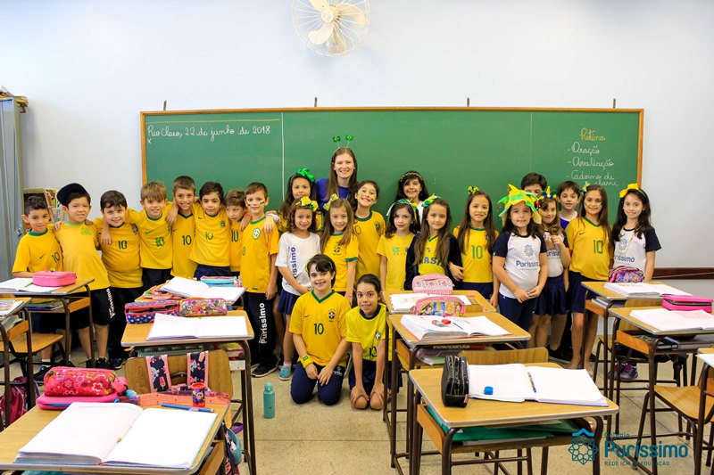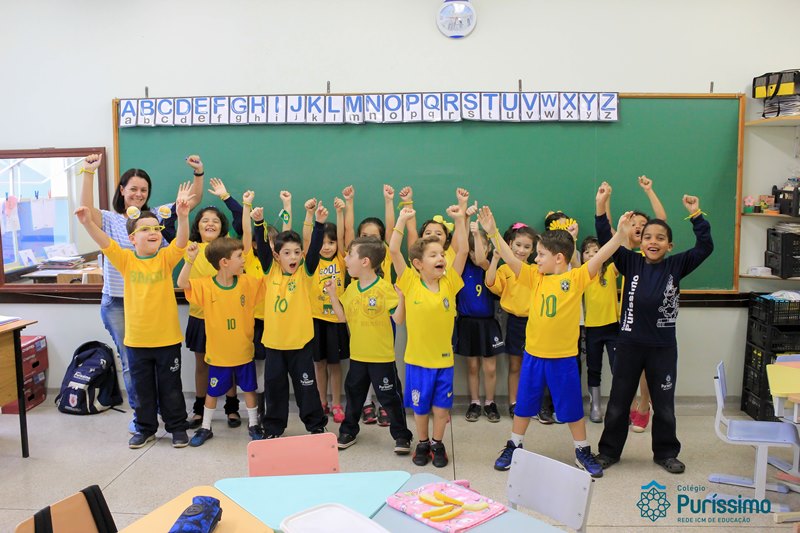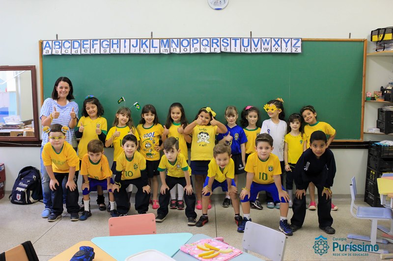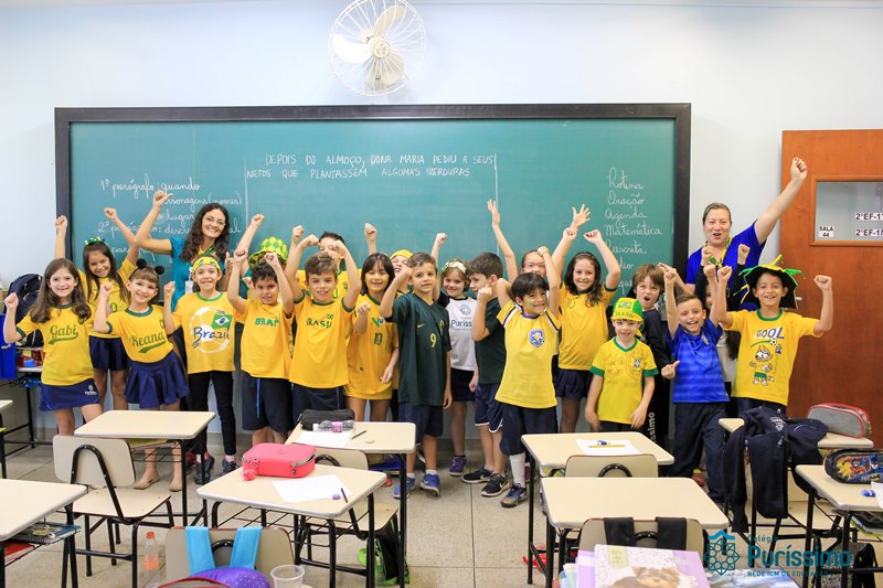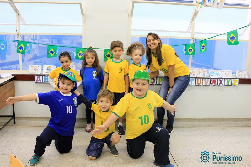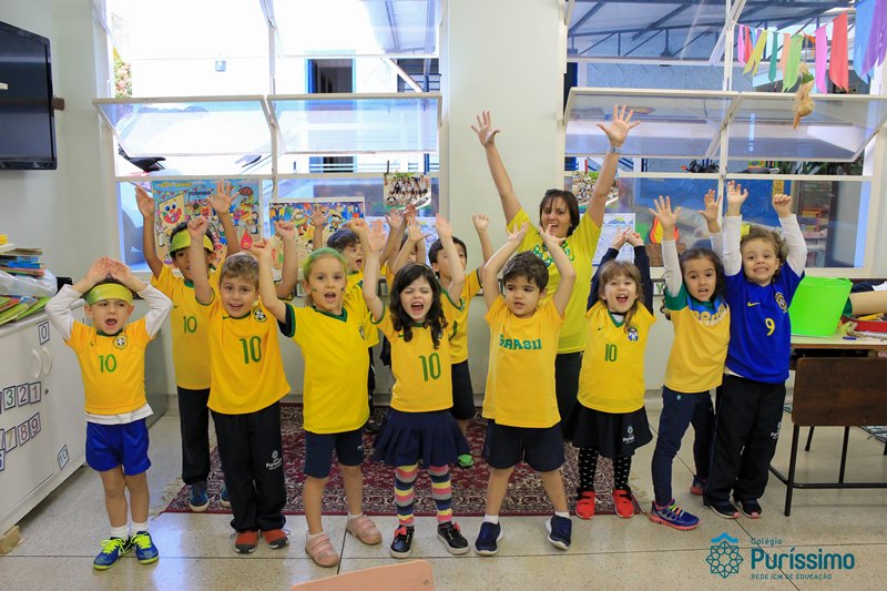 Hoje tivemos a vitória do Brasil sobre a Costa Rica por 2 x 0 e os alunos da Educação Infantil e do Ensino Fundamental I vieram todos de torcedores! Se dependermos dessa torcida linda, o hexa está logo ali!