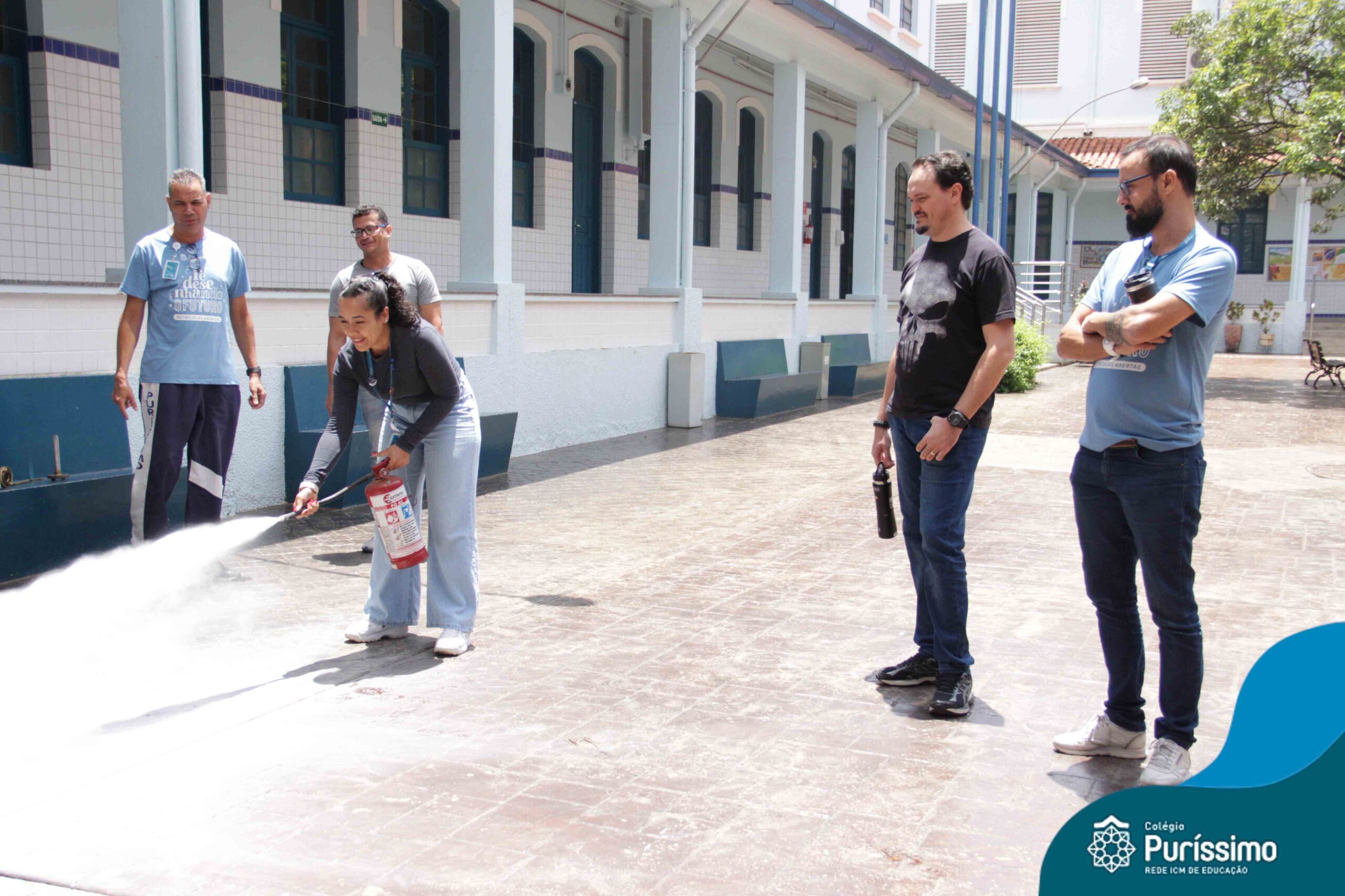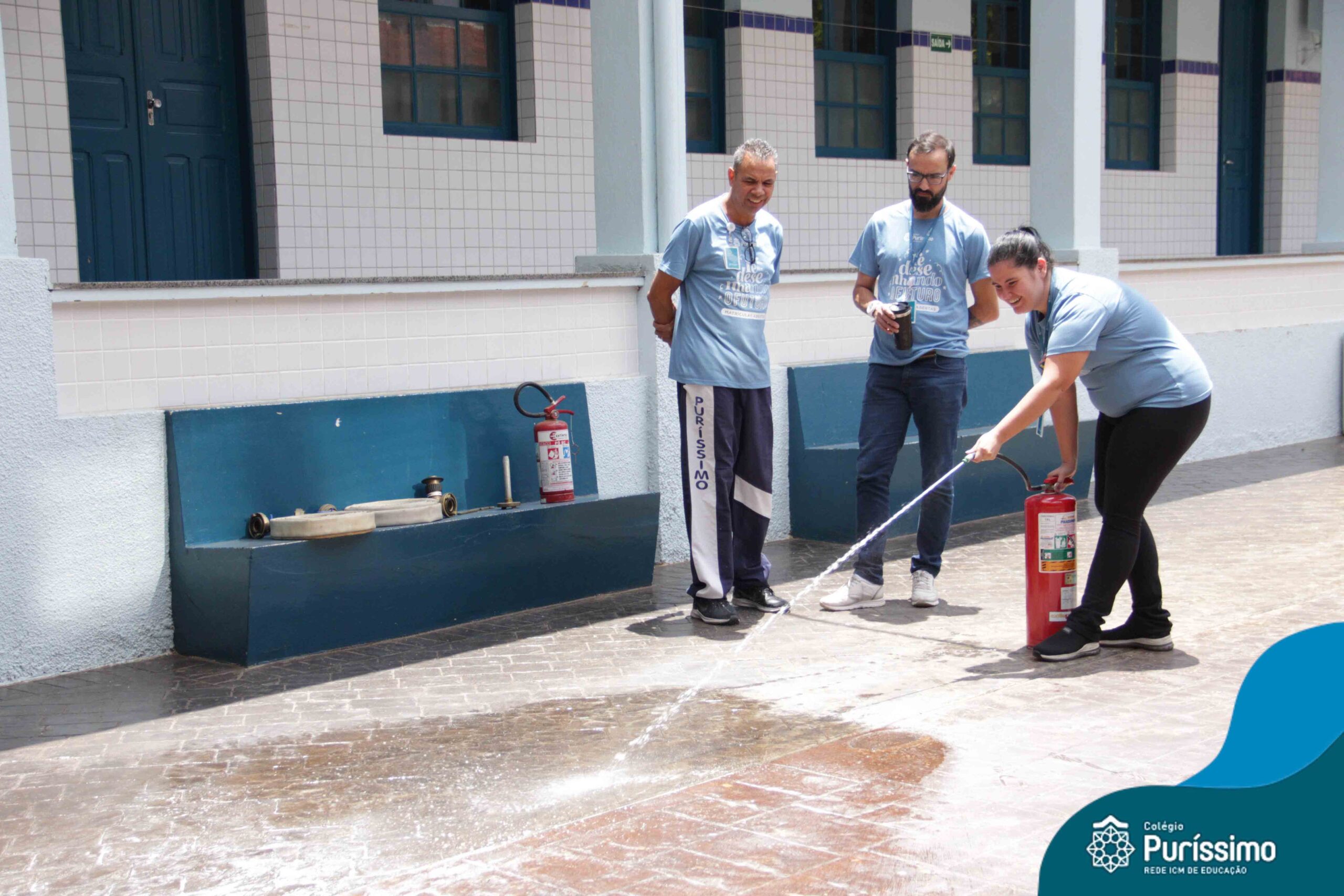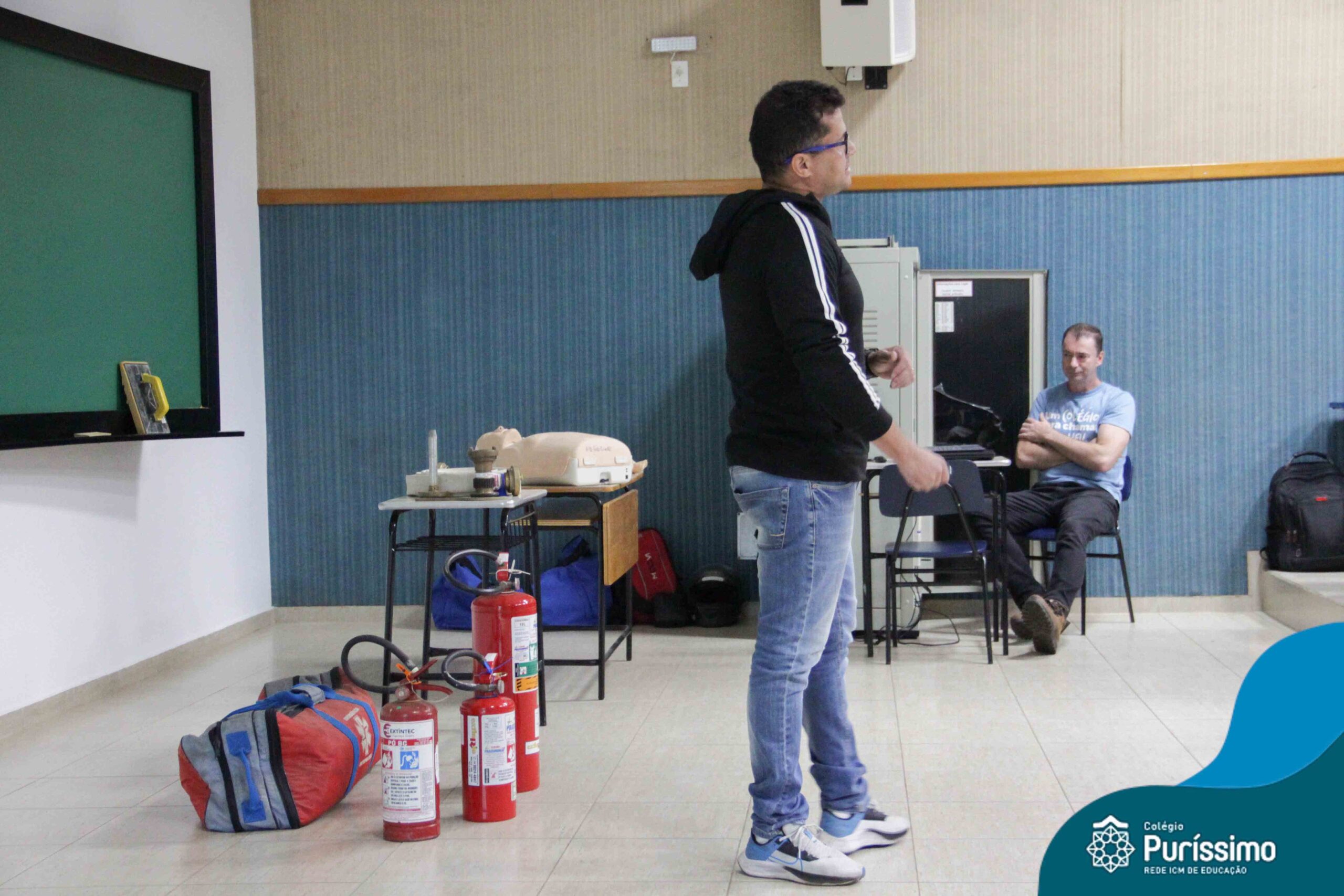O objetivo do treinamento é permitir que os colaboradores se tornem aptos a agir caso ocorram situações de incêndio ou que necessitem de primeiros socorros nas dependências do Colégio.