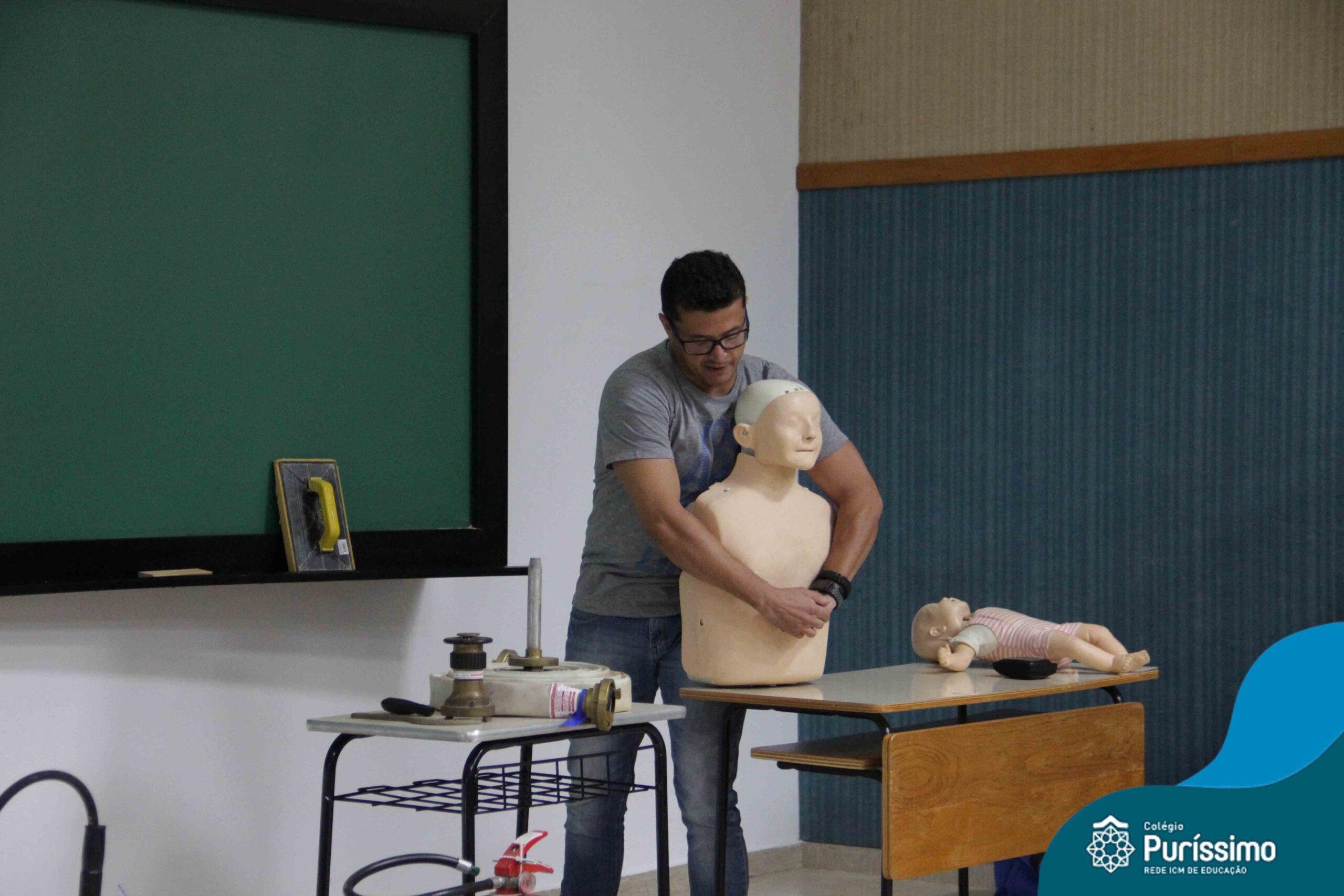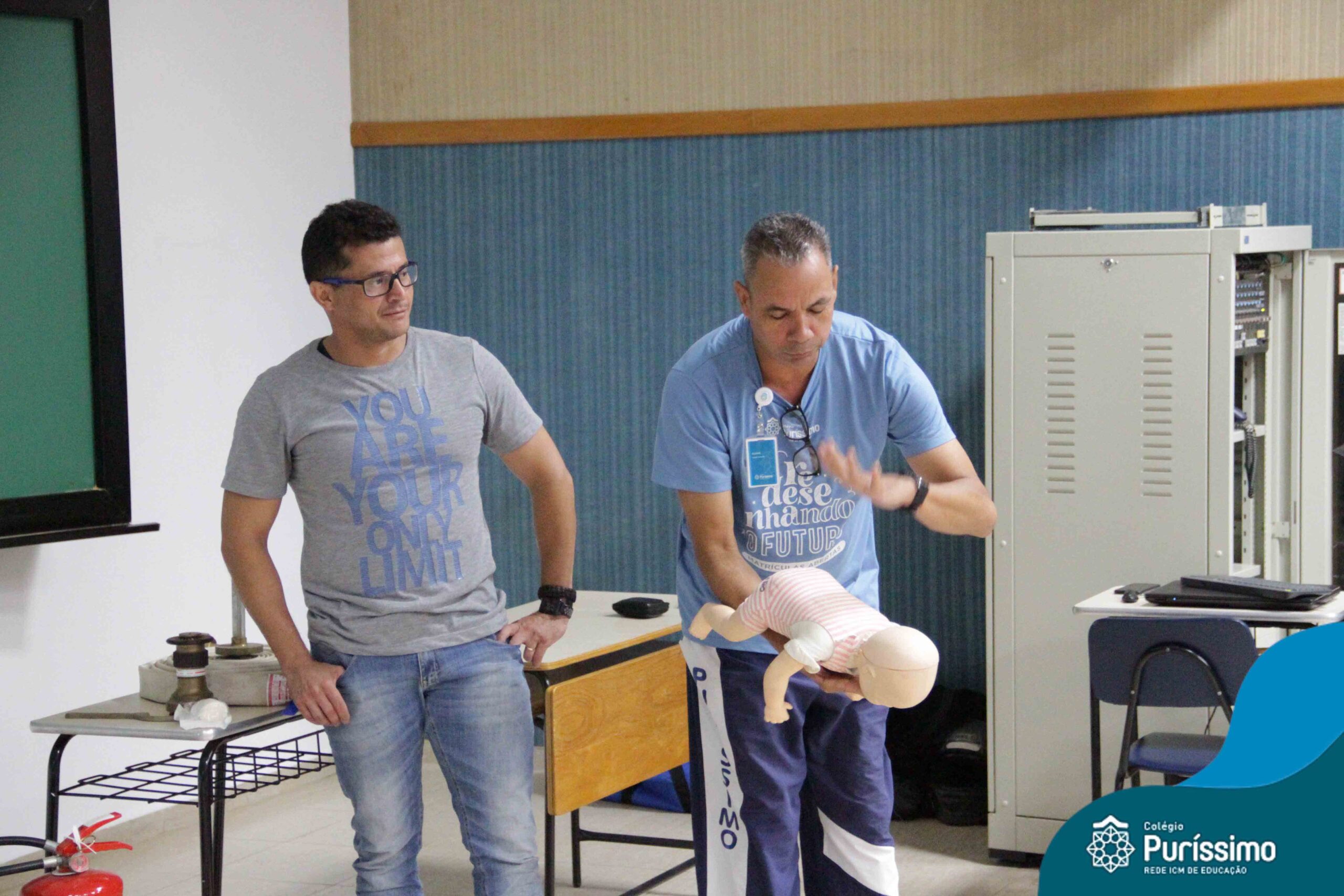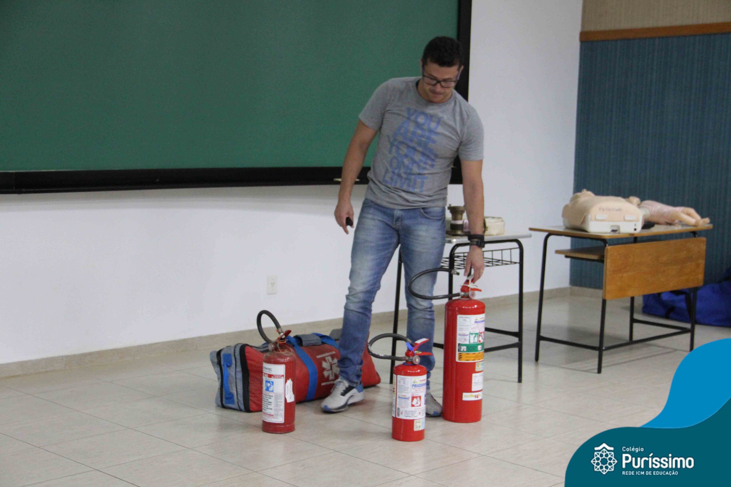 O objetivo do treinamento é permitir que os colaboradores se tornem aptos a agir caso ocorram situações de incêndio ou que necessitem de primeiros socorros nas dependências do Colégio.