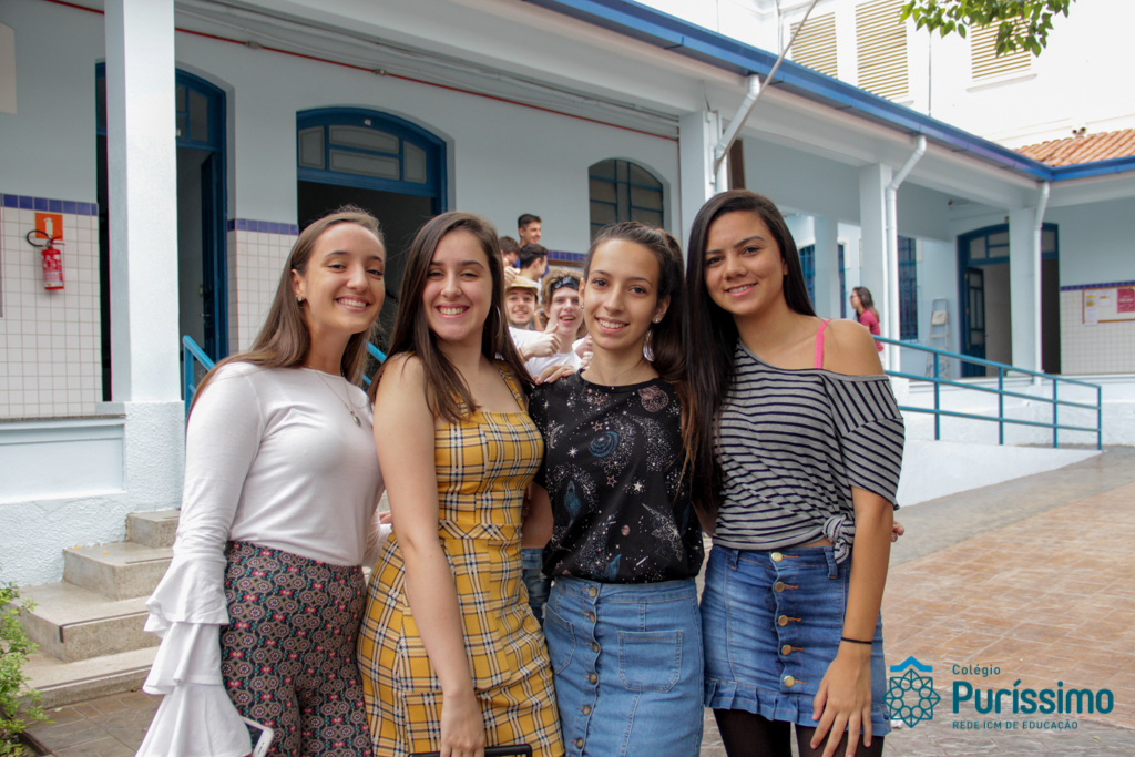 Hoje pela manhã, os 3ºs anos realizaram o penúltimo trote do ano, vieram vestidos com trajes da década de 80. Os alunos arrasaram no figurino e na caracterização dos personagens!