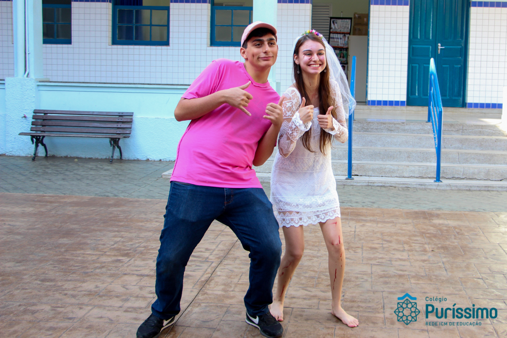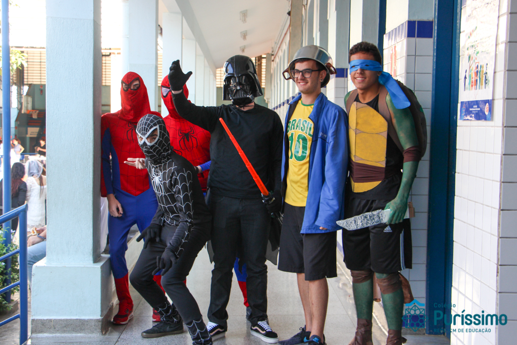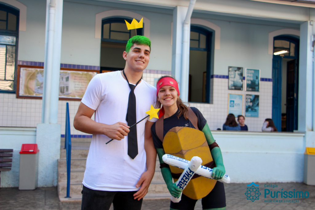 Na manhã de ontem, 09 de maio, os alunos dos 3ºs anos gastaram toda a criatividade para virem fantasiados no trote do mês. Eles entraram na brincadeira e o resultado foi uma fantasia mais legal que a outra!