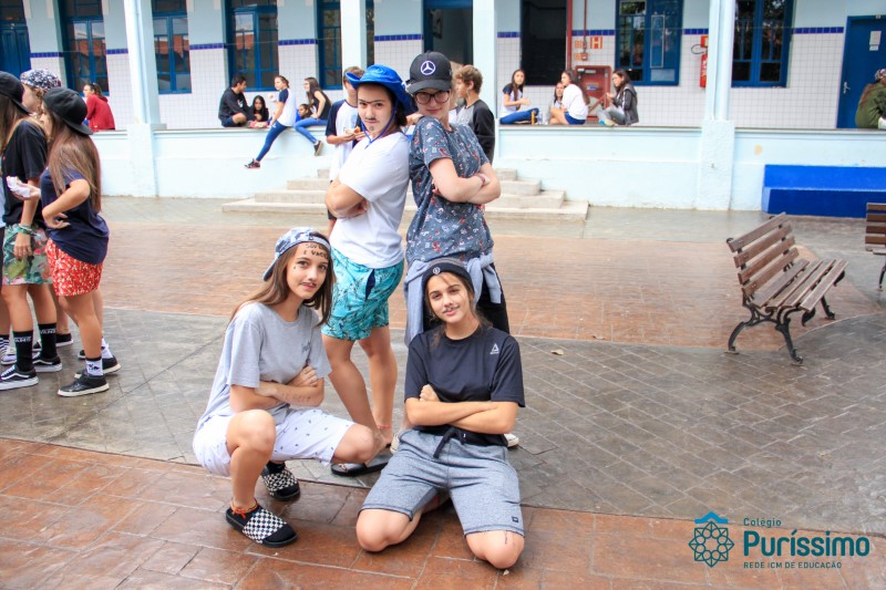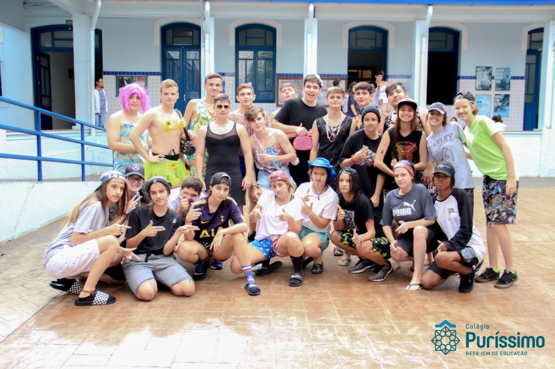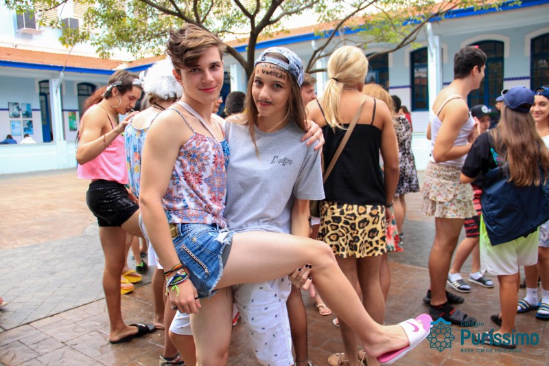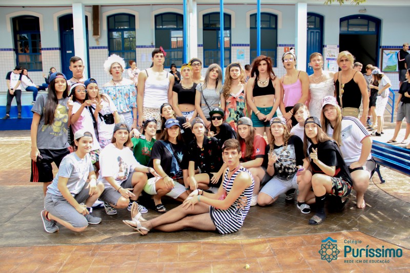 Na manhã de hoje os alunos dos 3ºs anos vieram trocados! Rolou muita criatividade na escolha dos figurinos e adereços, resultando em um intervalo muito descontraído e divertido!