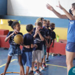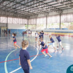 Acompanhados pelo coordenador da Pastoral, Denilson Ansanello, os estudantes se juntaram as crianças para jogar Base 4 e Queimada em uma tarde de muita alegria, sempre buscando ensinar o poder do trabalho em equipe juntamente com a diversão da competição.