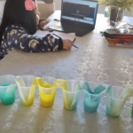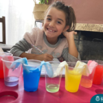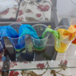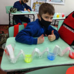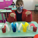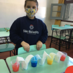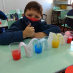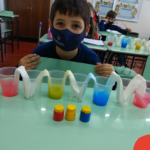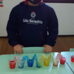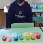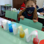 As cores podem ser muito fascinantes, principalmente, quando sabemos o que há por trás delas. Os alunos, em um estudo das cores primárias e secundárias, realizaram uma experiência envolvendo copos plásticos, tintas e guardanapos. Montando o experimento, foi possível identificar que pela junção das cores primárias, surgem as secundárias. Todos ficaram muito impressionados!