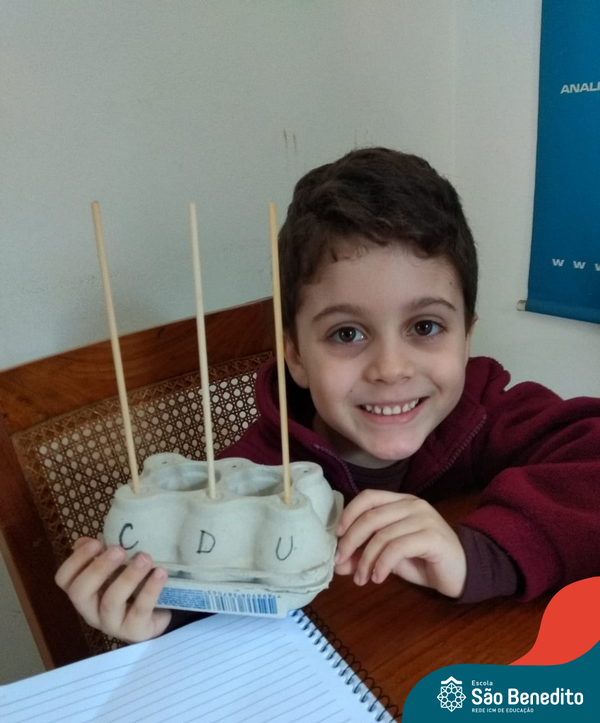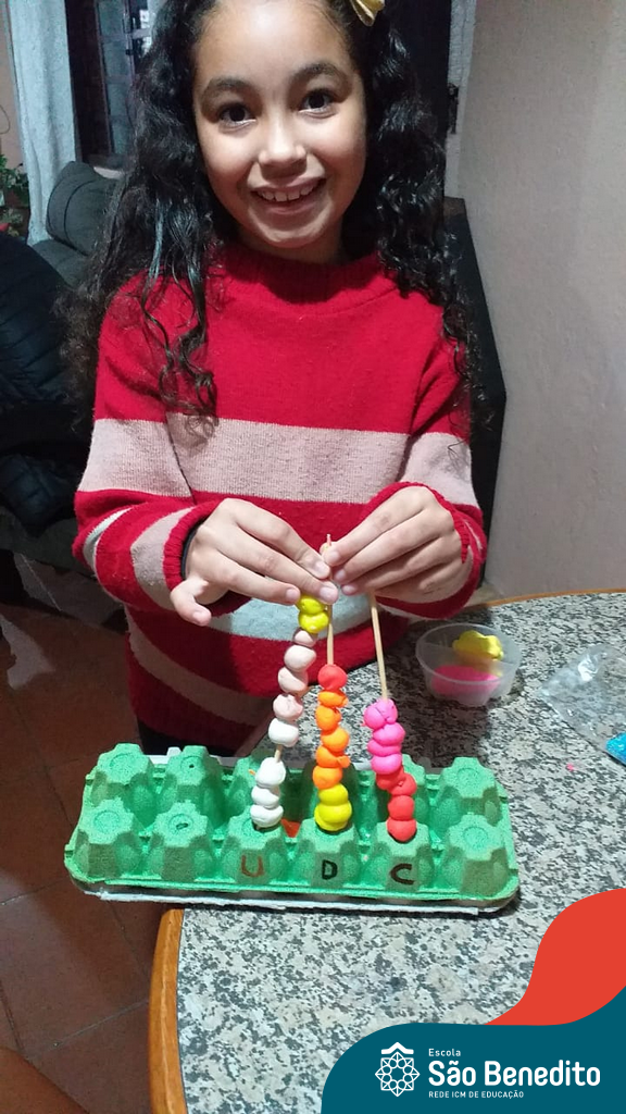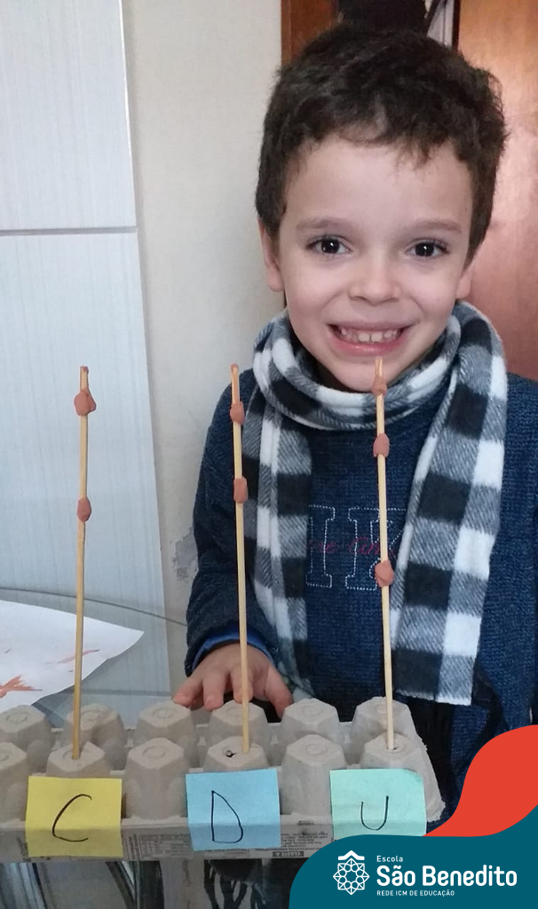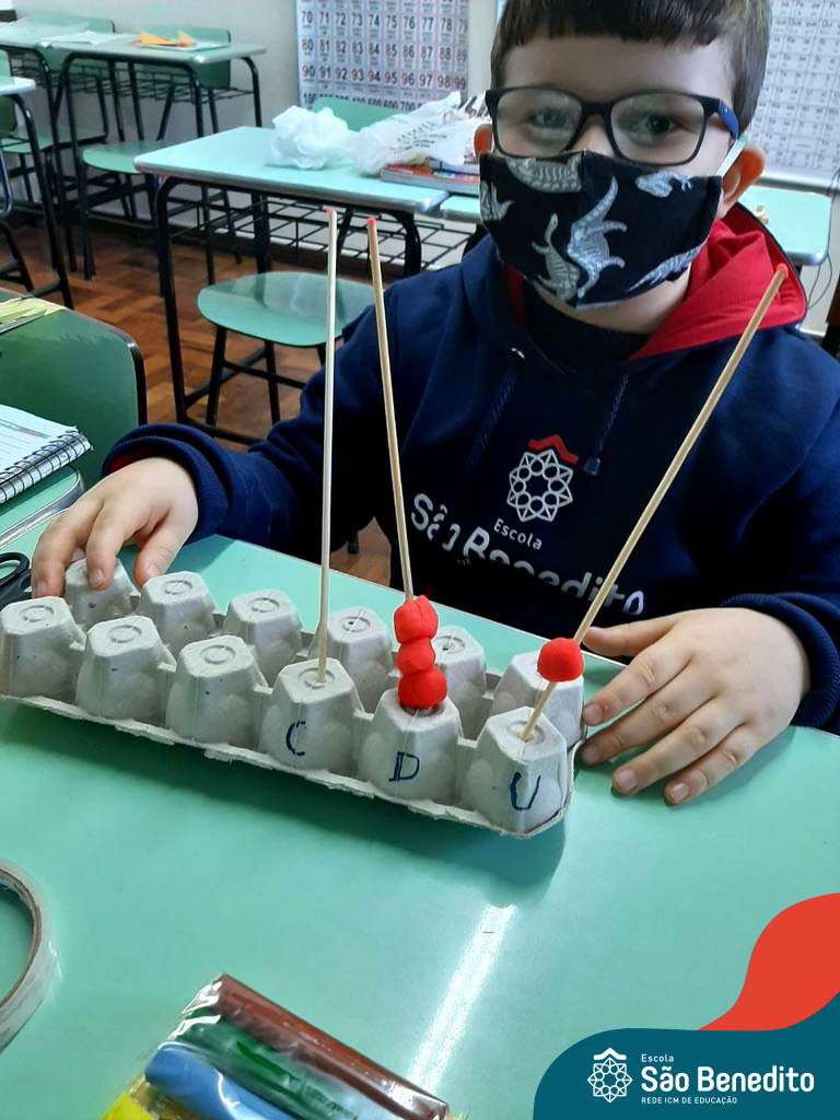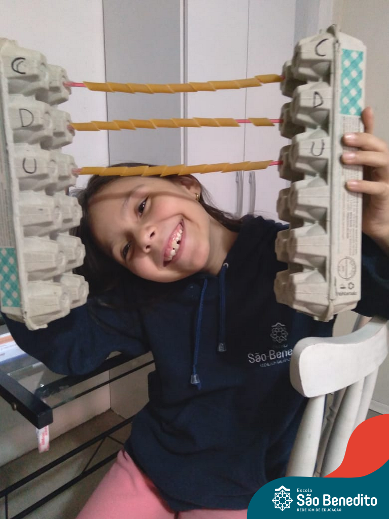 O ábaco é um instrumento matemático que foi desenvolvido para facilitar os cálculos. Nossos alunos confeccionaram os próprios utilizando diversos materiais, como caixa de ovos, massinha de modelar, lápis e cordões, com supervisão das professoras. O intuito da produção foi auxiliar os pequenos no aprendizado do sistema de numeração decimal, e cumpriu muito bem com seu papel, proporcionando um momento alegre, descontraído e interessante.