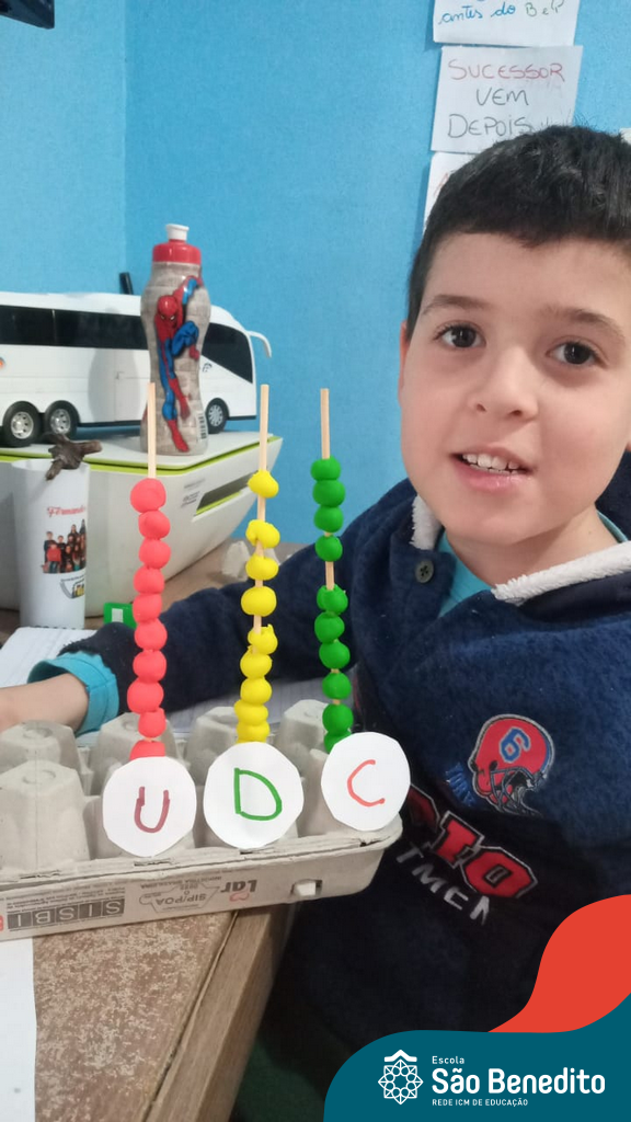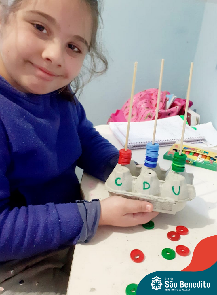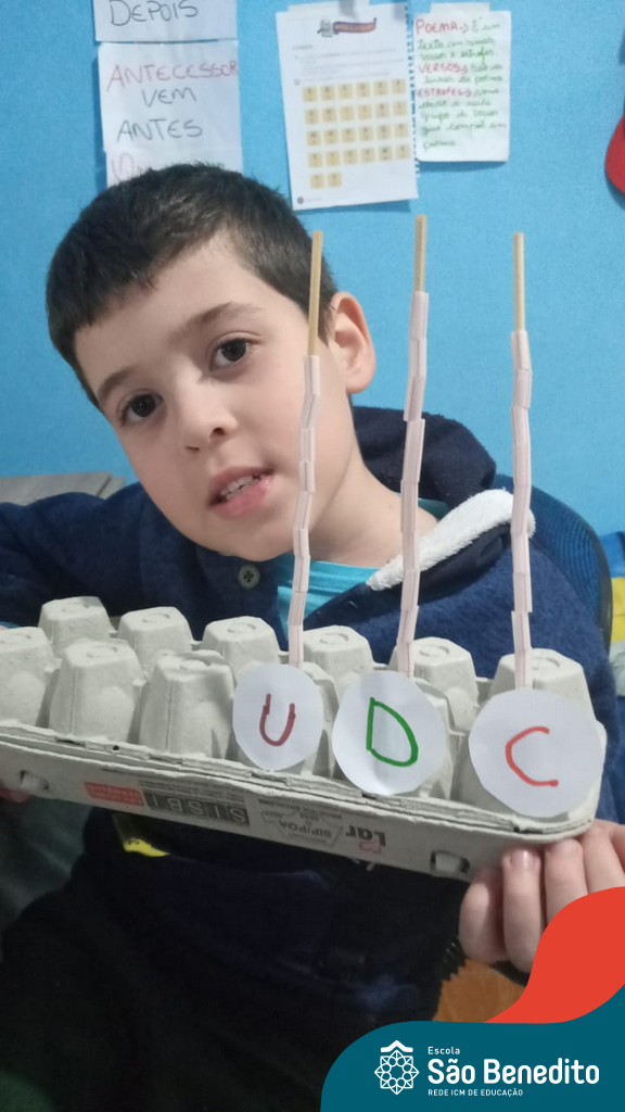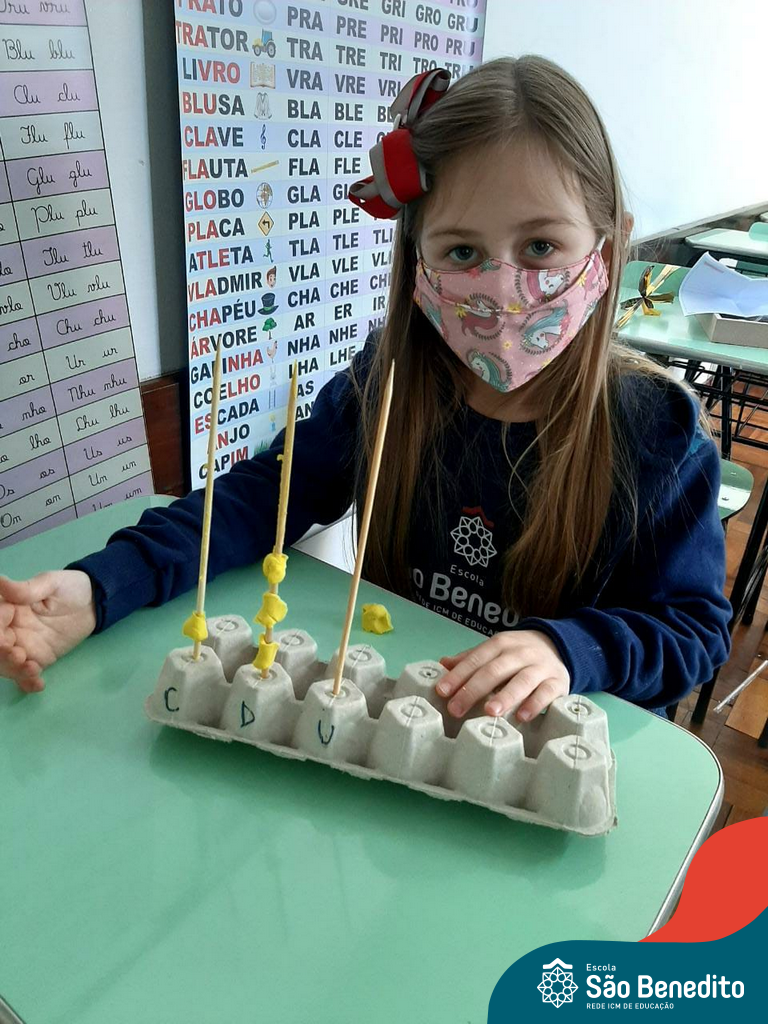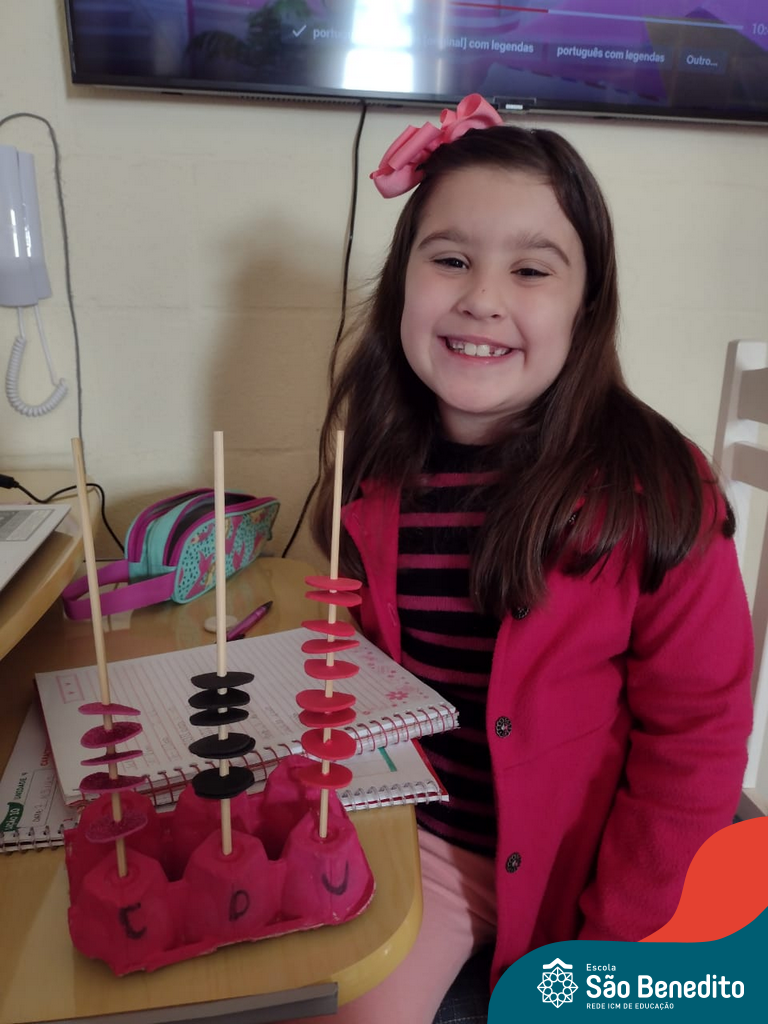 O ábaco é um instrumento matemático que foi desenvolvido para facilitar os cálculos. Nossos alunos confeccionaram os próprios utilizando diversos materiais, como caixa de ovos, massinha de modelar, lápis e cordões, com supervisão das professoras. O intuito da produção foi auxiliar os pequenos no aprendizado do sistema de numeração decimal, e cumpriu muito bem com seu papel, proporcionando um momento alegre, descontraído e interessante.