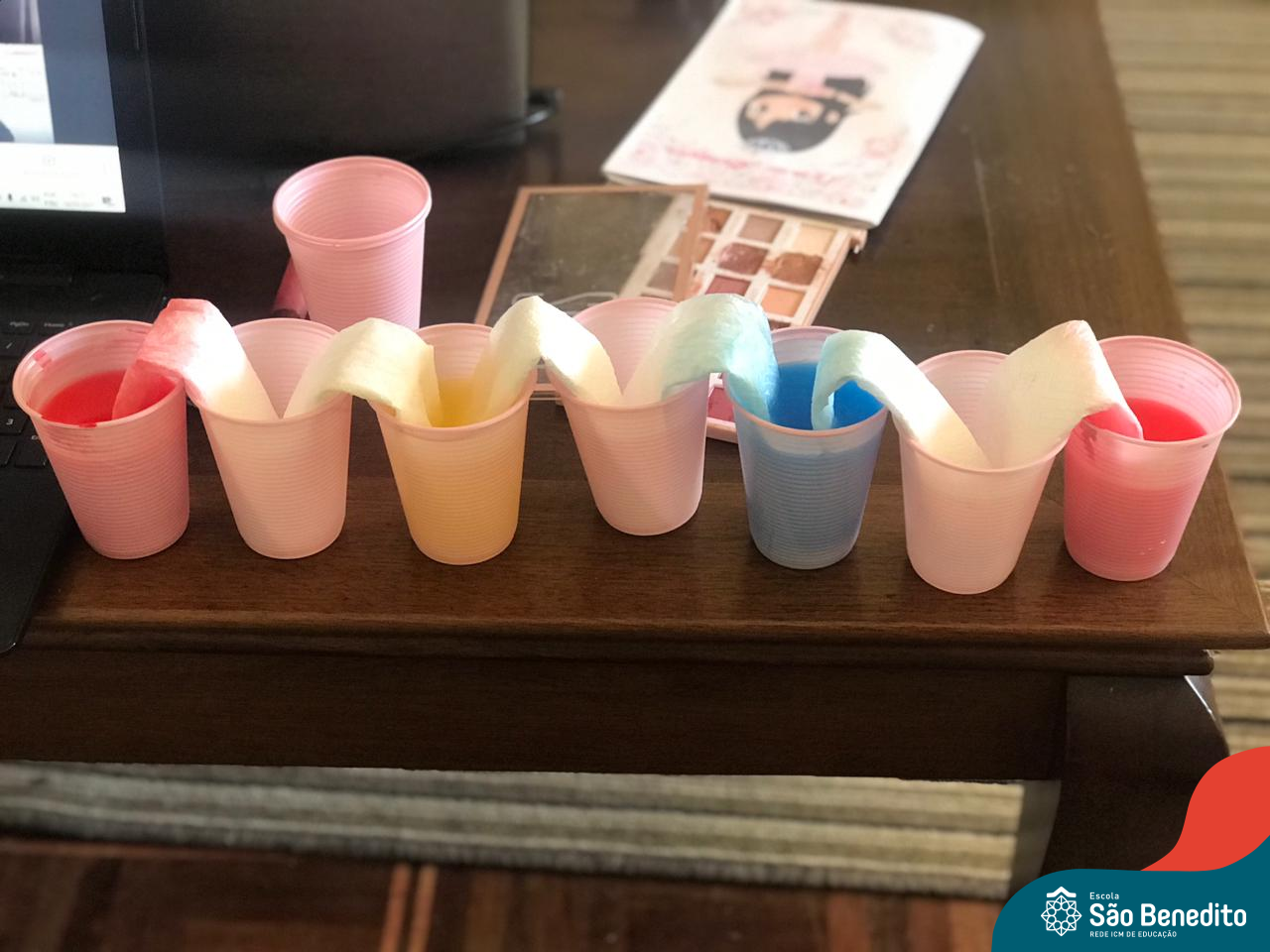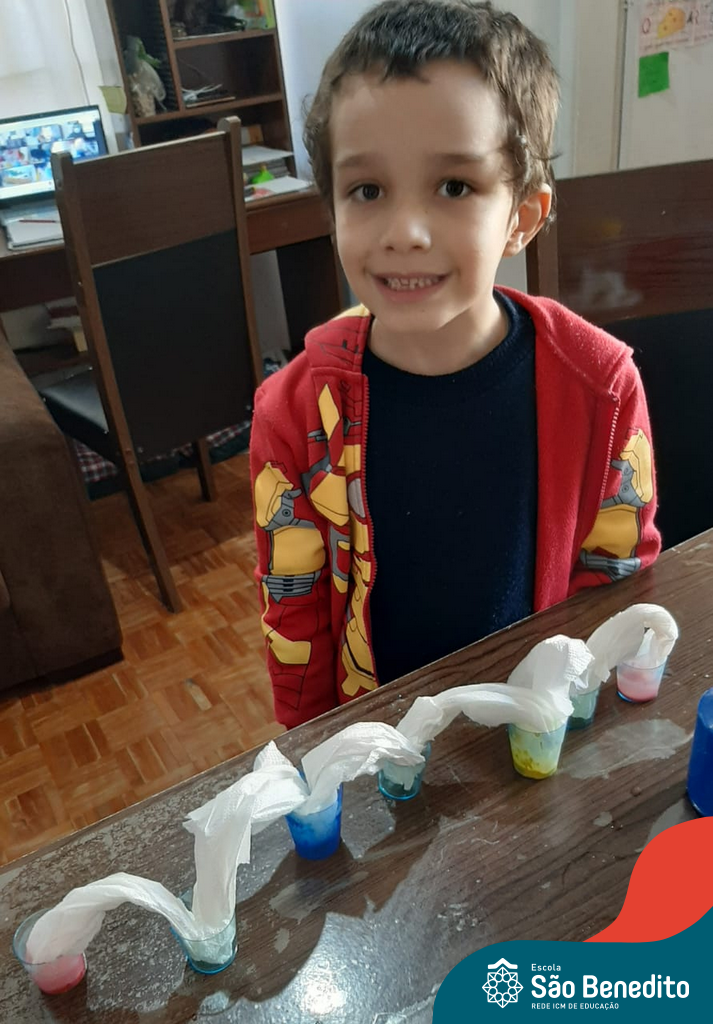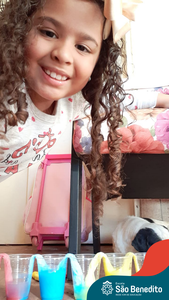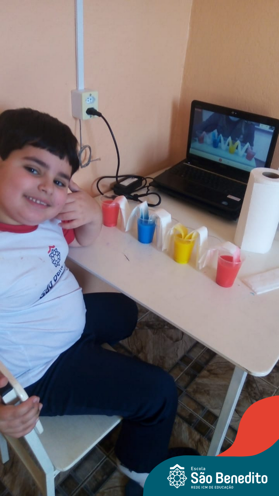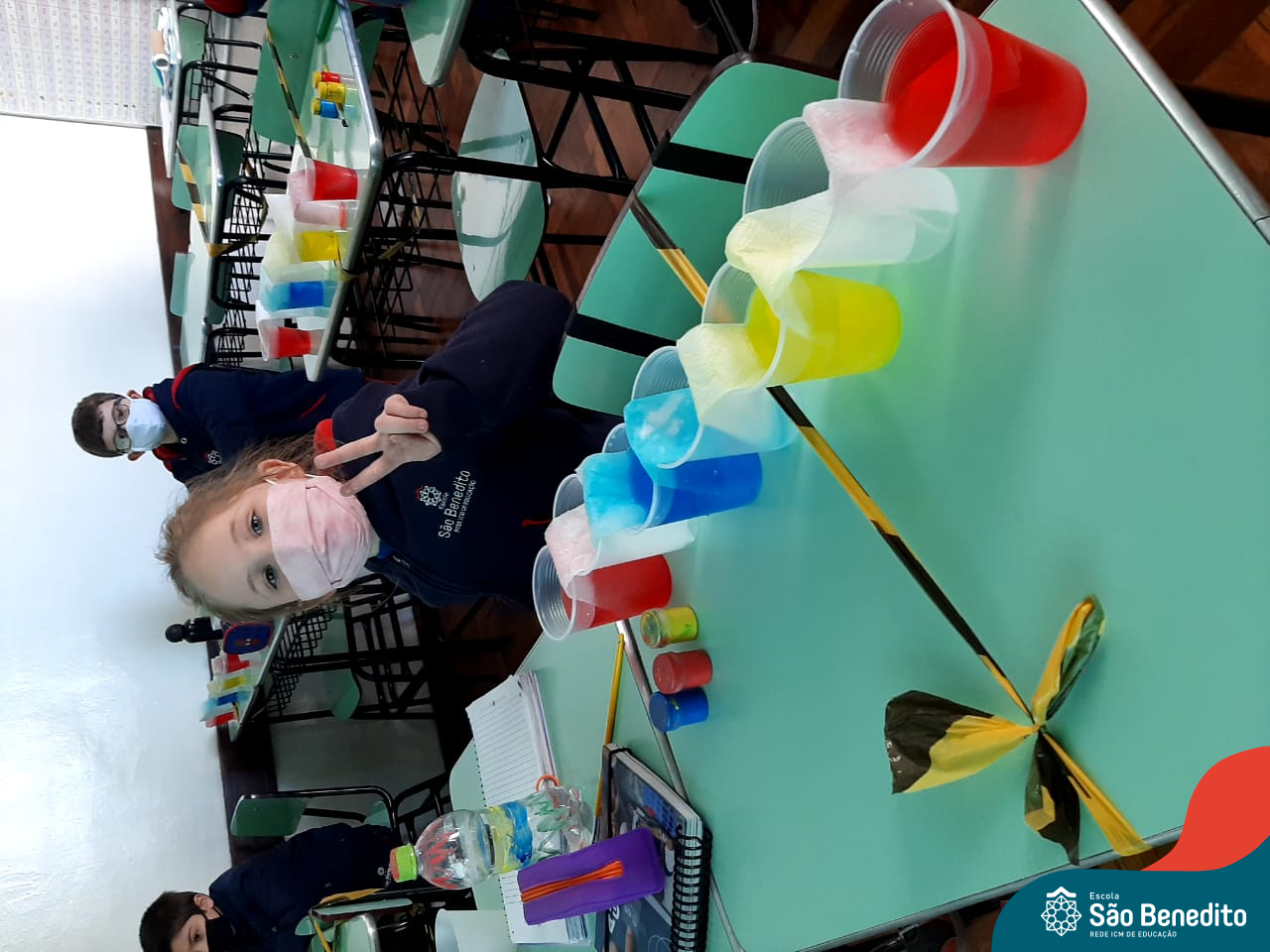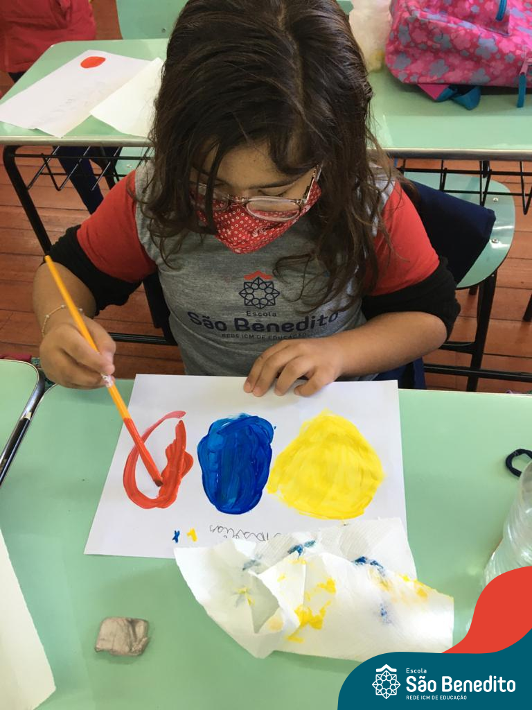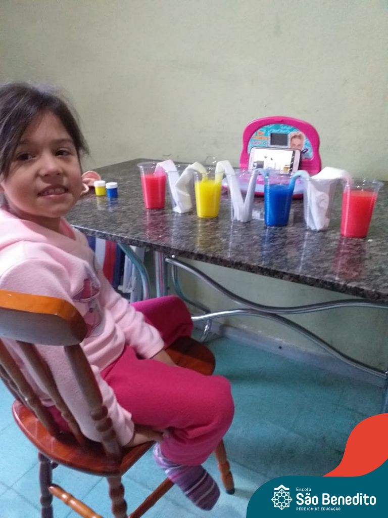 As cores podem ser muito fascinantes, principalmente, quando sabemos o que há por trás delas. Os alunos, em um estudo das cores primárias e secundárias, realizaram uma experiência envolvendo copos plásticos, tintas e guardanapos. Montando o experimento, foi possível identificar que pela junção das cores primárias, surgem as secundárias. Todos ficaram muito impressionados!