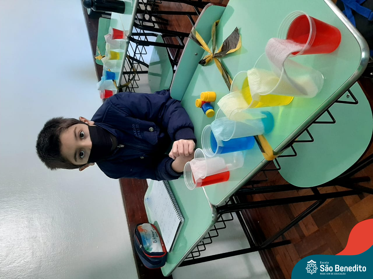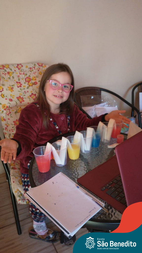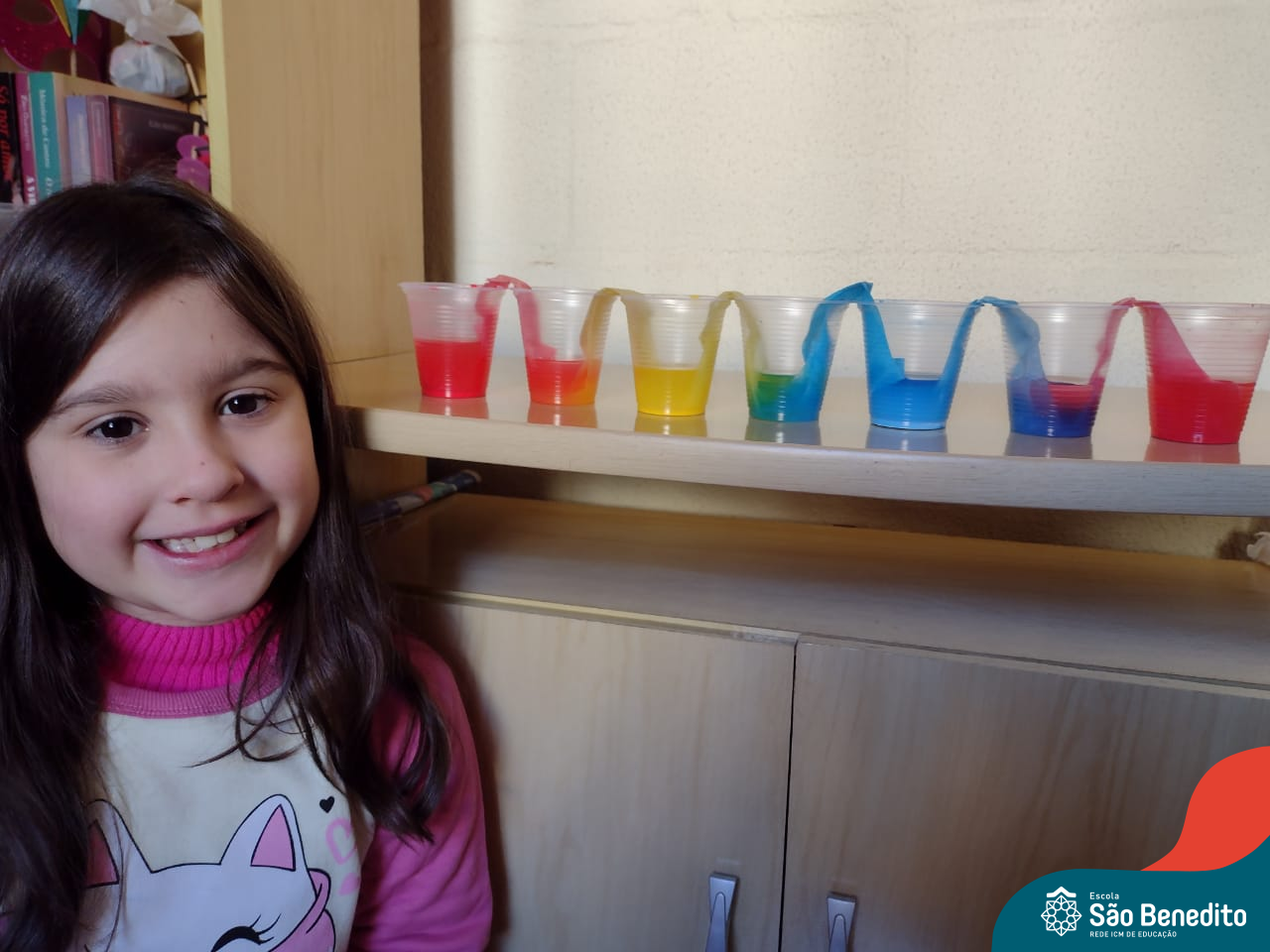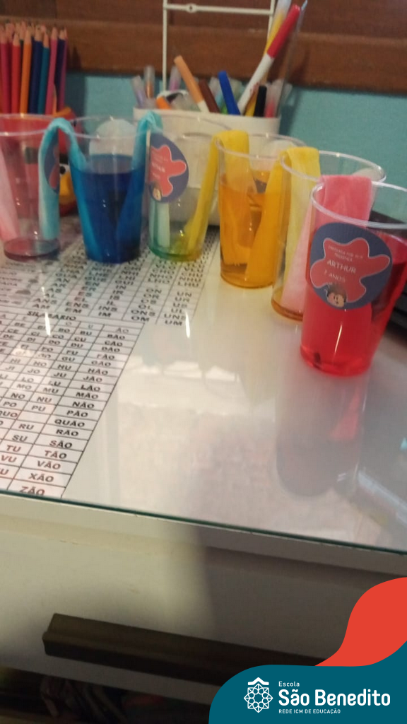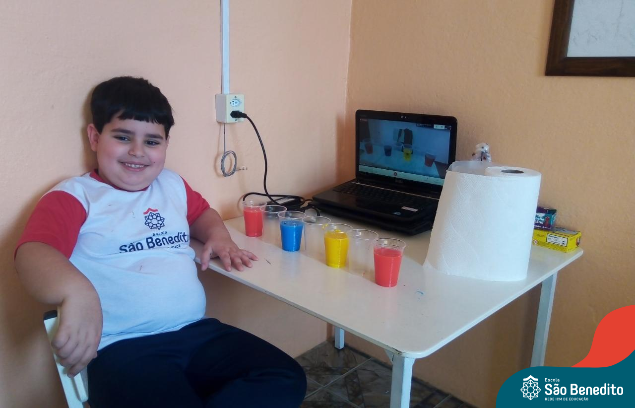 As cores podem ser muito fascinantes, principalmente, quando sabemos o que há por trás delas. Os alunos, em um estudo das cores primárias e secundárias, realizaram uma experiência envolvendo copos plásticos, tintas e guardanapos. Montando o experimento, foi possível identificar que pela junção das cores primárias, surgem as secundárias. Todos ficaram muito impressionados!