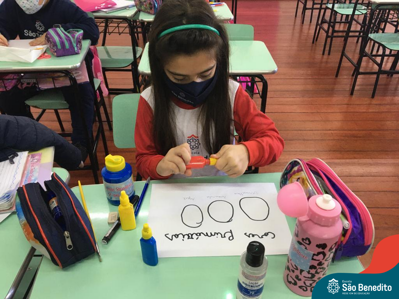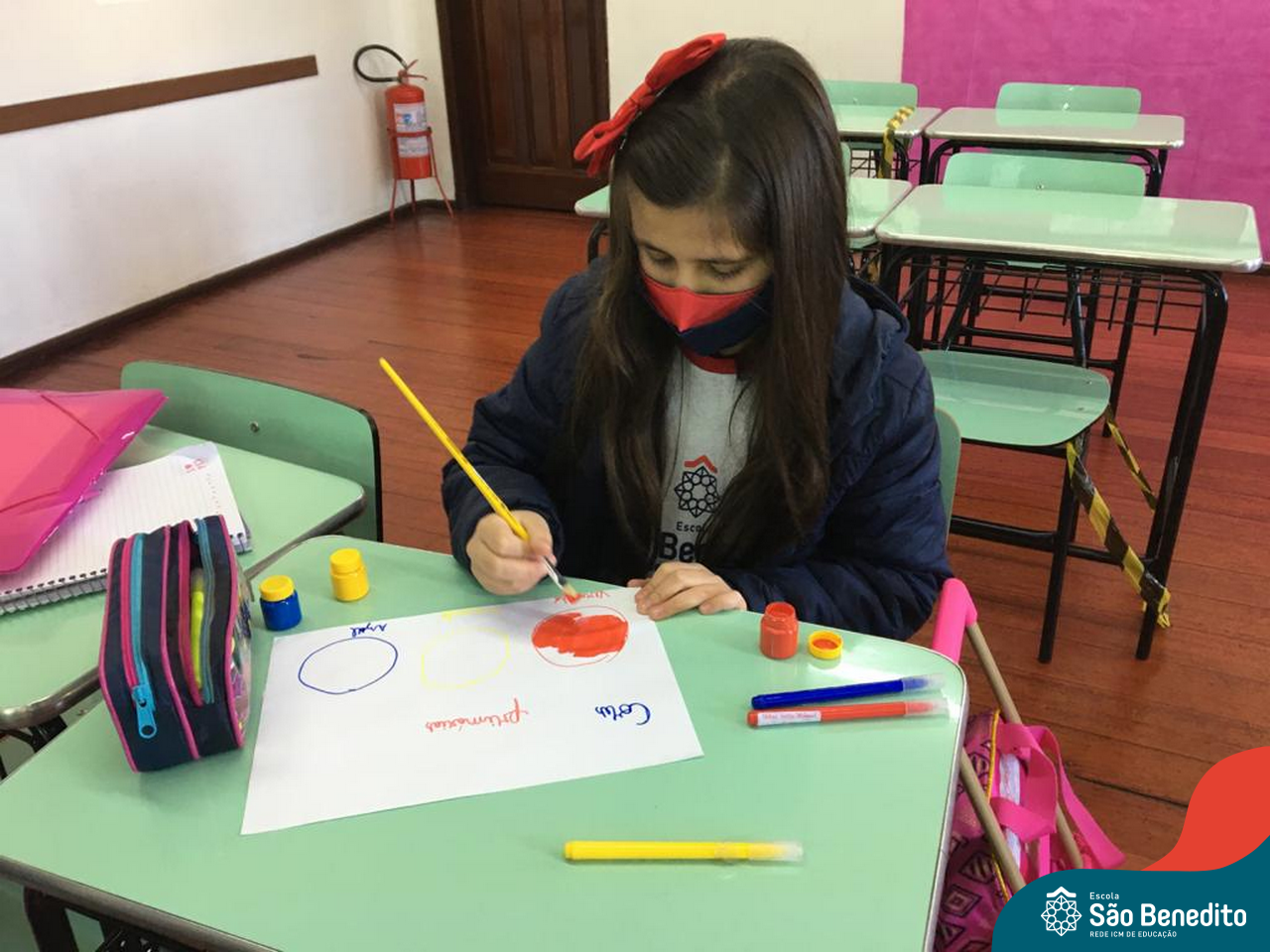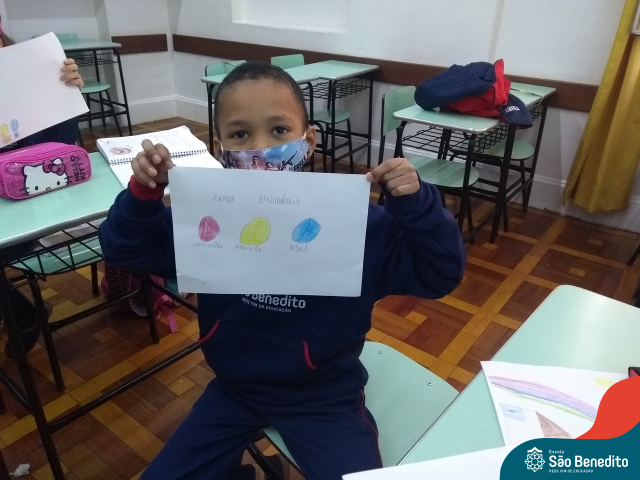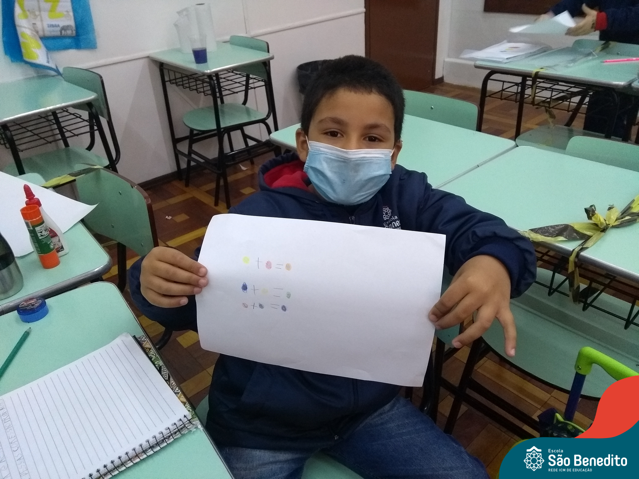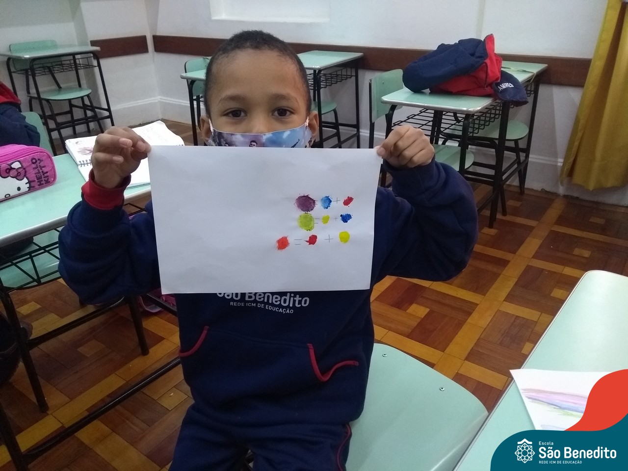 As cores podem ser muito fascinantes, principalmente, quando sabemos o que há por trás delas. Os alunos, em um estudo das cores primárias e secundárias, realizaram uma experiência envolvendo copos plásticos, tintas e guardanapos. Montando o experimento, foi possível identificar que pela junção das cores primárias, surgem as secundárias. Todos ficaram muito impressionados!