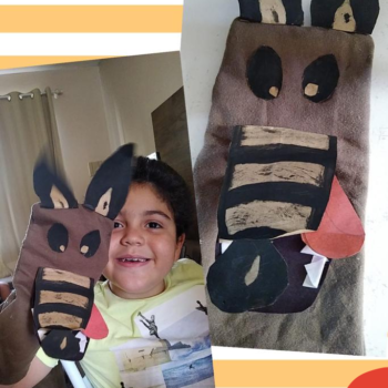 Em um primeiro momento, os alunos escolheram um livro que fosse de seu interesse, dentro da Plataforma digital Elefante Letrado ou físico, e após realização da leitura e interpretação, confeccionaram fantoches utilizando meias.