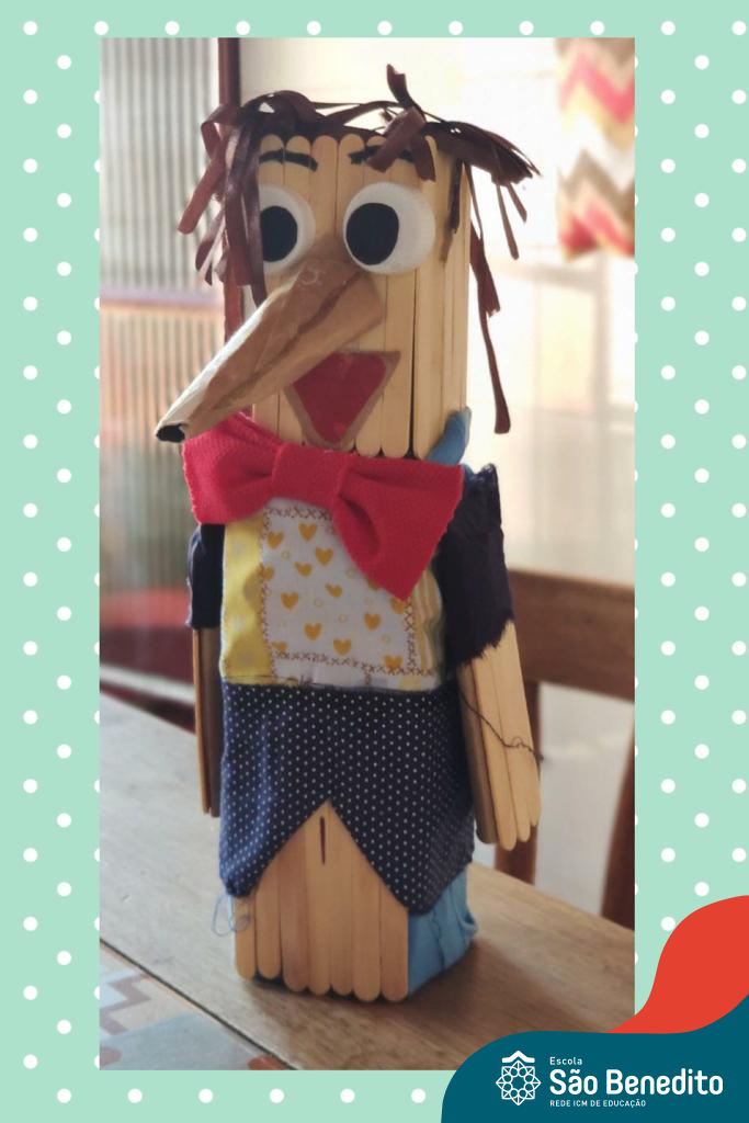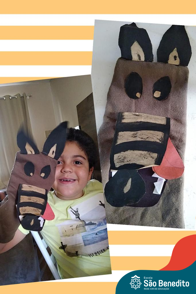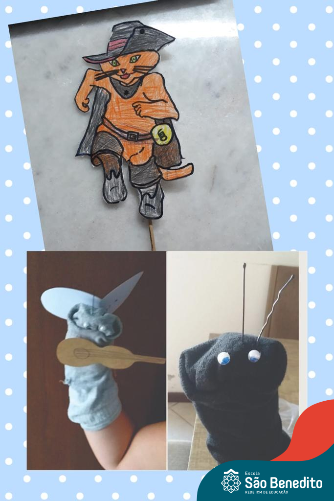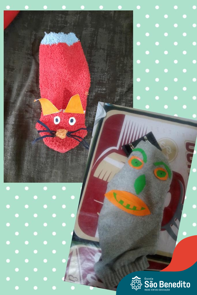 Em um primeiro momento, os alunos escolheram um livro que fosse de seu interesse, dentro da Plataforma digital Elefante Letrado ou físico, e após realização da leitura e interpretação, confeccionaram fantoches utilizando meias.