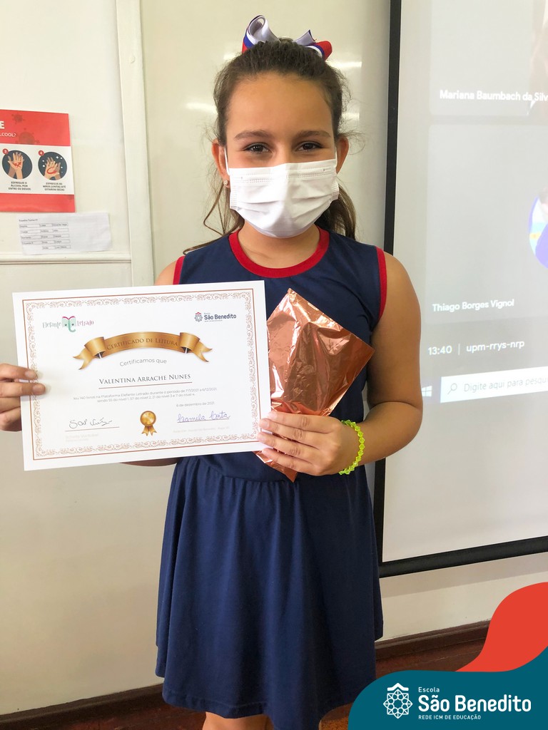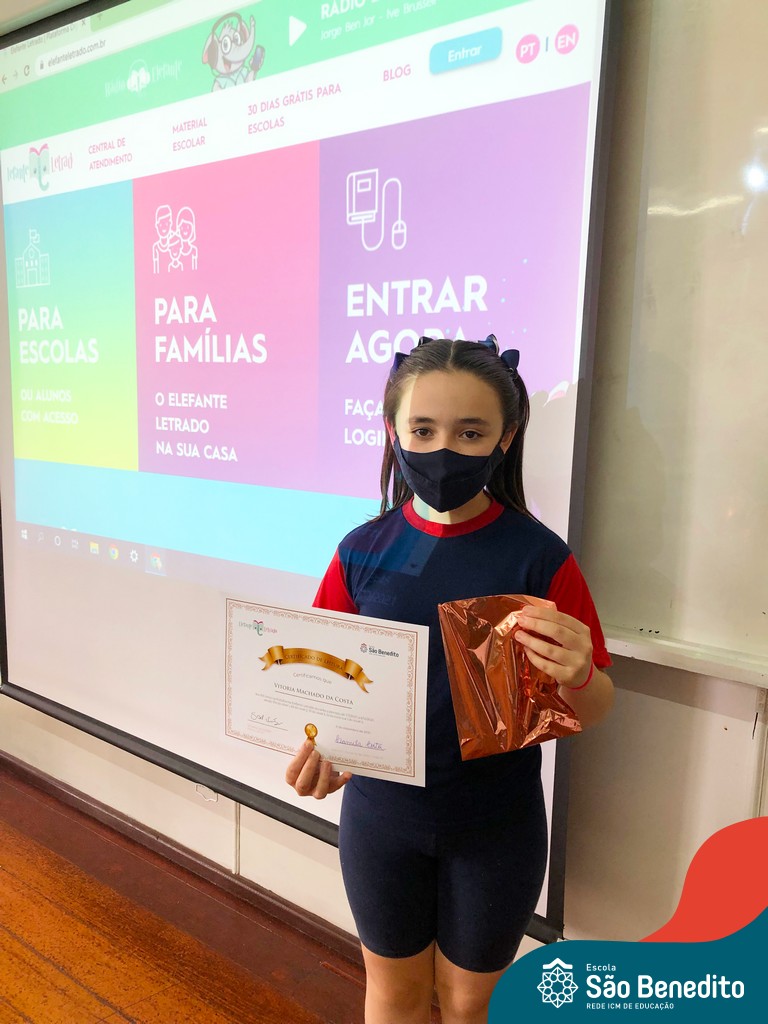 2021 passou voando, e chegou o momento de colher tudo o que foi cultivado até agora. A turma do 4º Ano, comandada pela professora Camila Mércio, realizou uma cerimônia de entrega de certificados de leitura da Plataforma Digital Elefante Letrado.