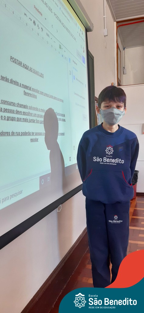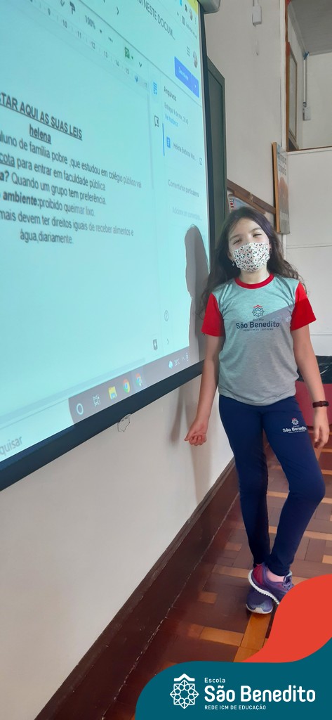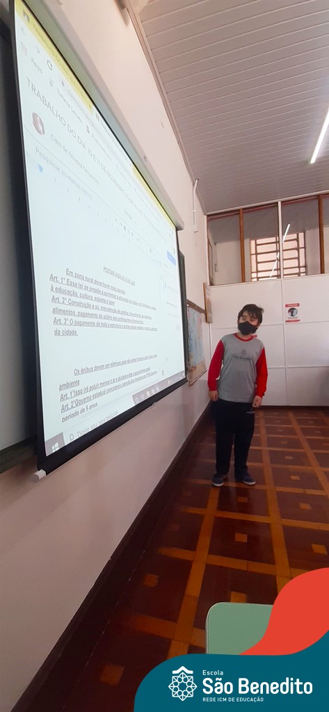 Cada estudante fez uma pesquisa, leu e se aprofundou nos estudos de como uma lei é escrita e feita. Após esta breve pesquisa, elaboraram 3 leis que precisavam ter o objetivo de controlar os comportamentos e ações dos indivíduos do nosso país em 3 pontos específicos: Igualdade, Acesso à educação e Meio ambiente. Após a votação na assembléia, a turma montou a Constituição.