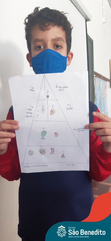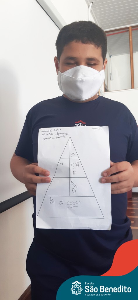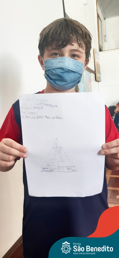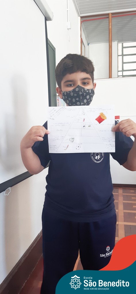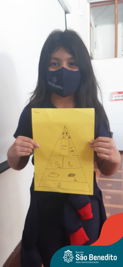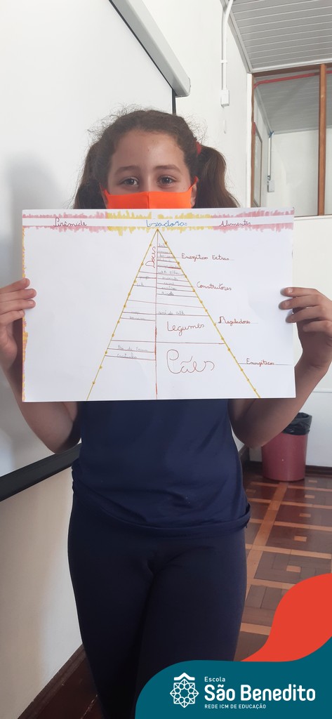 A turma do 5º Ano, orientada pela professora Rita Patron realizou um projeto sobre a Pirâmide Alimentar, que é um tipo de gráfico que sistematiza os alimentos de acordo com suas funções e seus nutrientes.