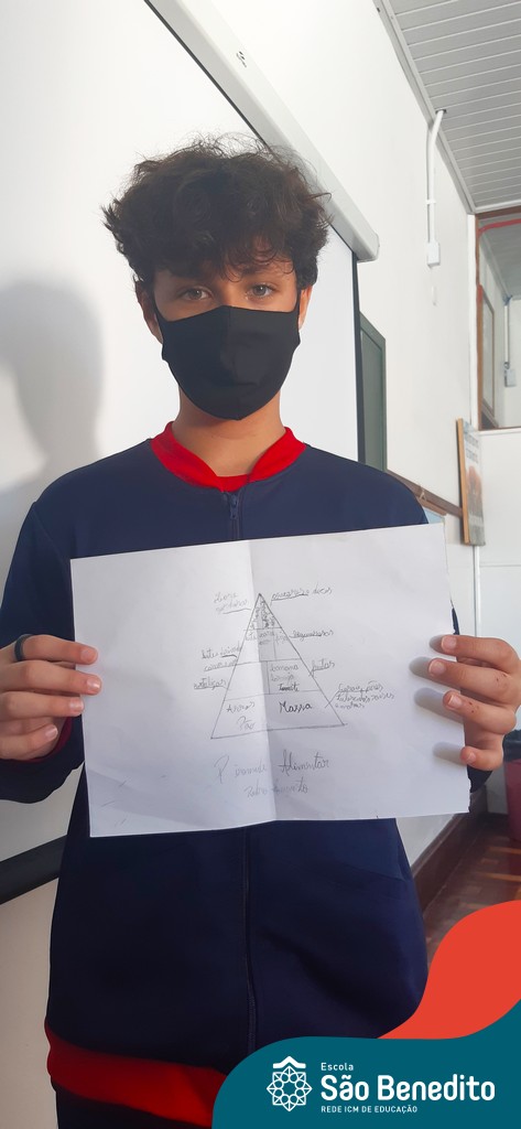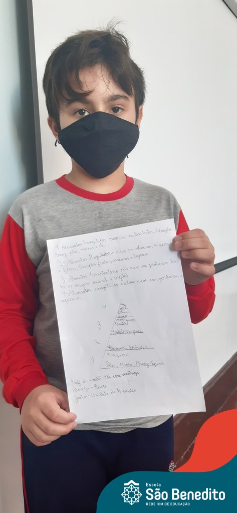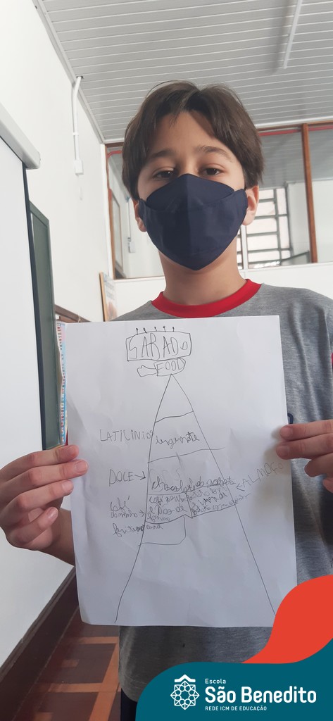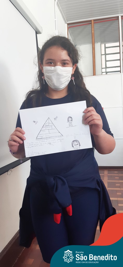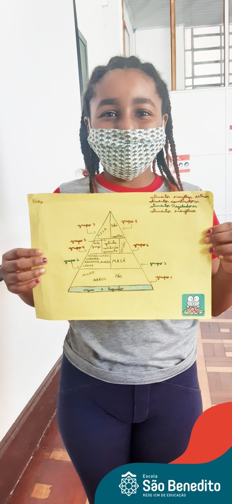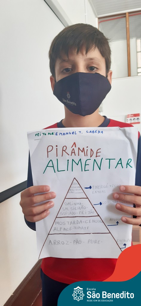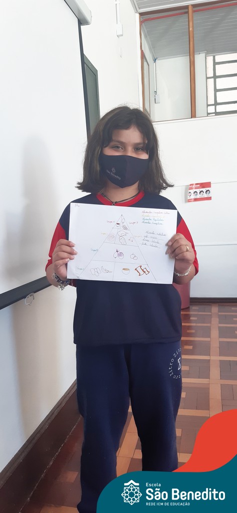 A turma do 5º Ano, orientada pela professora Rita Patron realizou um projeto sobre a Pirâmide Alimentar, que é um tipo de gráfico que sistematiza os alimentos de acordo com suas funções e seus nutrientes.
