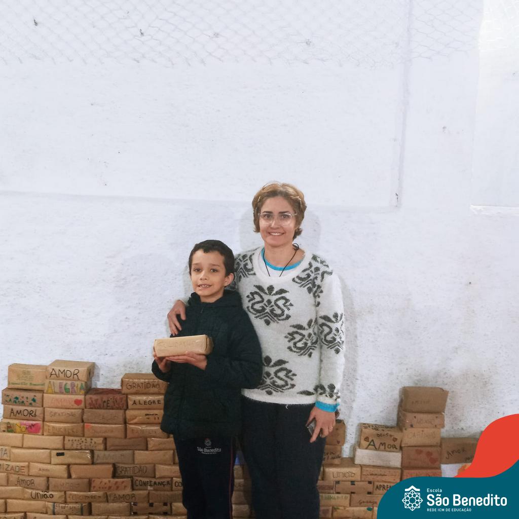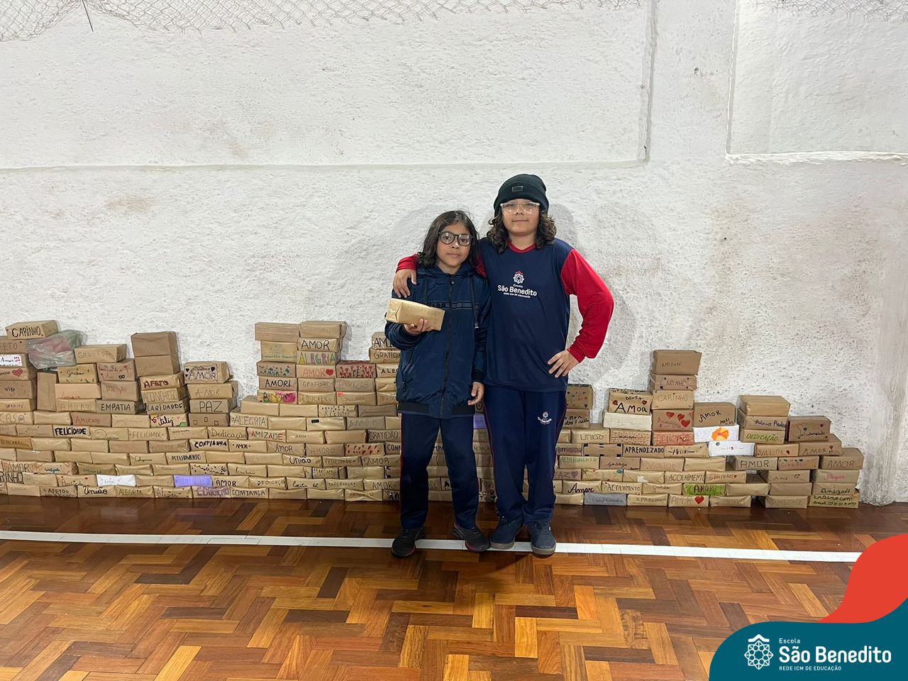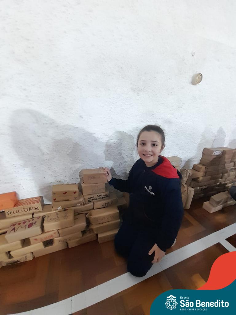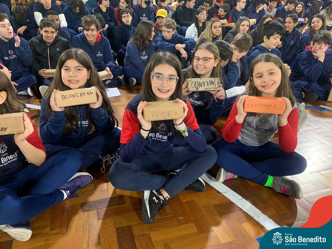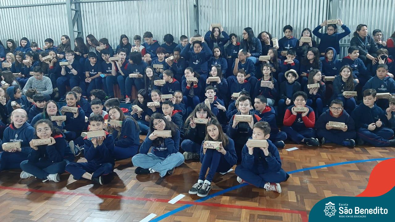 Através de um gesto simbólico, os estudantes produziram tijolinhos com caixas de leite, que posteriormente foram doadas para os asilos, Vila Vicentina e José e Auta Gomes (total de 711 caixas). Cada tijolo possuía uma palavra (escolhida pelos estudantes e suas famílias), que representava a contribuição de cada um para a existência da atual Escola São Benedito.
