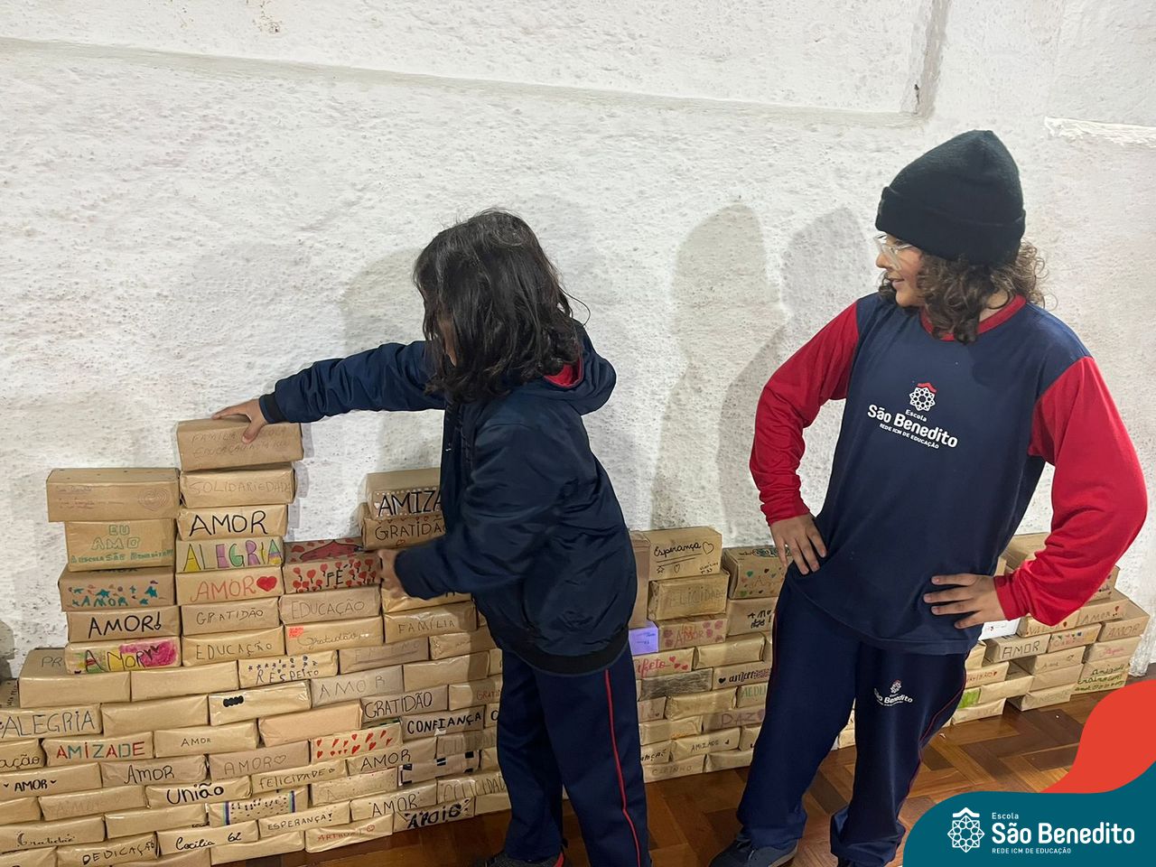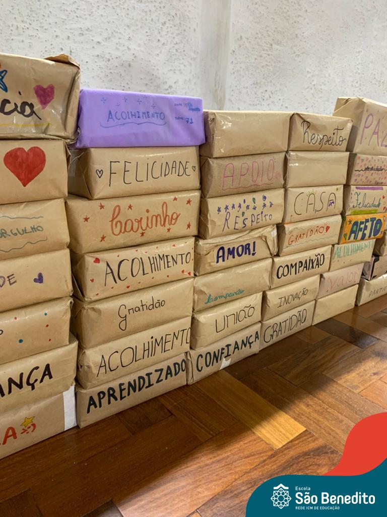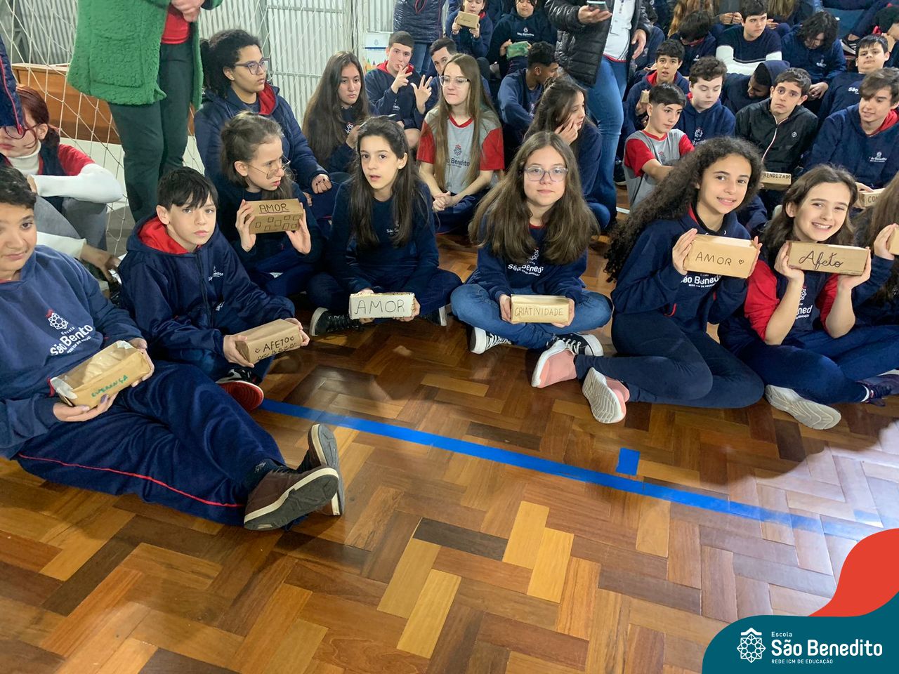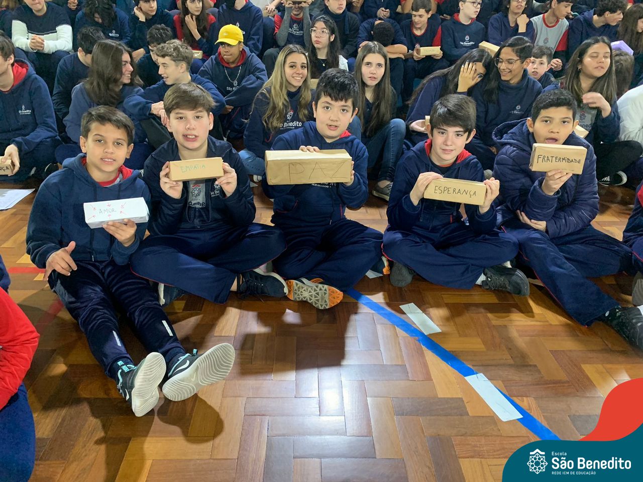 Através de um gesto simbólico, os estudantes produziram tijolinhos com caixas de leite, que posteriormente foram doadas para os asilos, Vila Vicentina e José e Auta Gomes (total de 711 caixas). Cada tijolo possuía uma palavra (escolhida pelos estudantes e suas famílias), que representava a contribuição de cada um para a existência da atual Escola São Benedito.