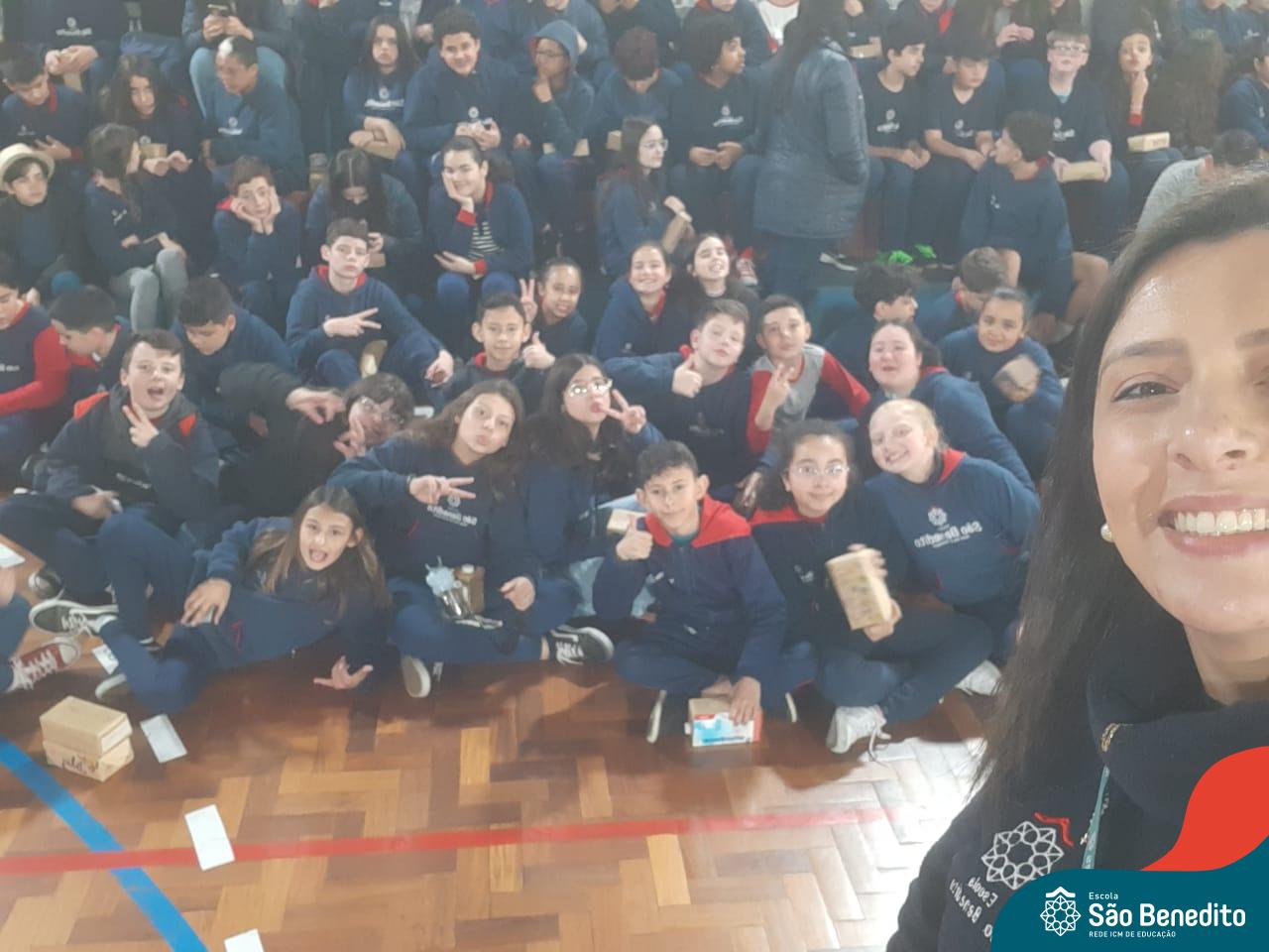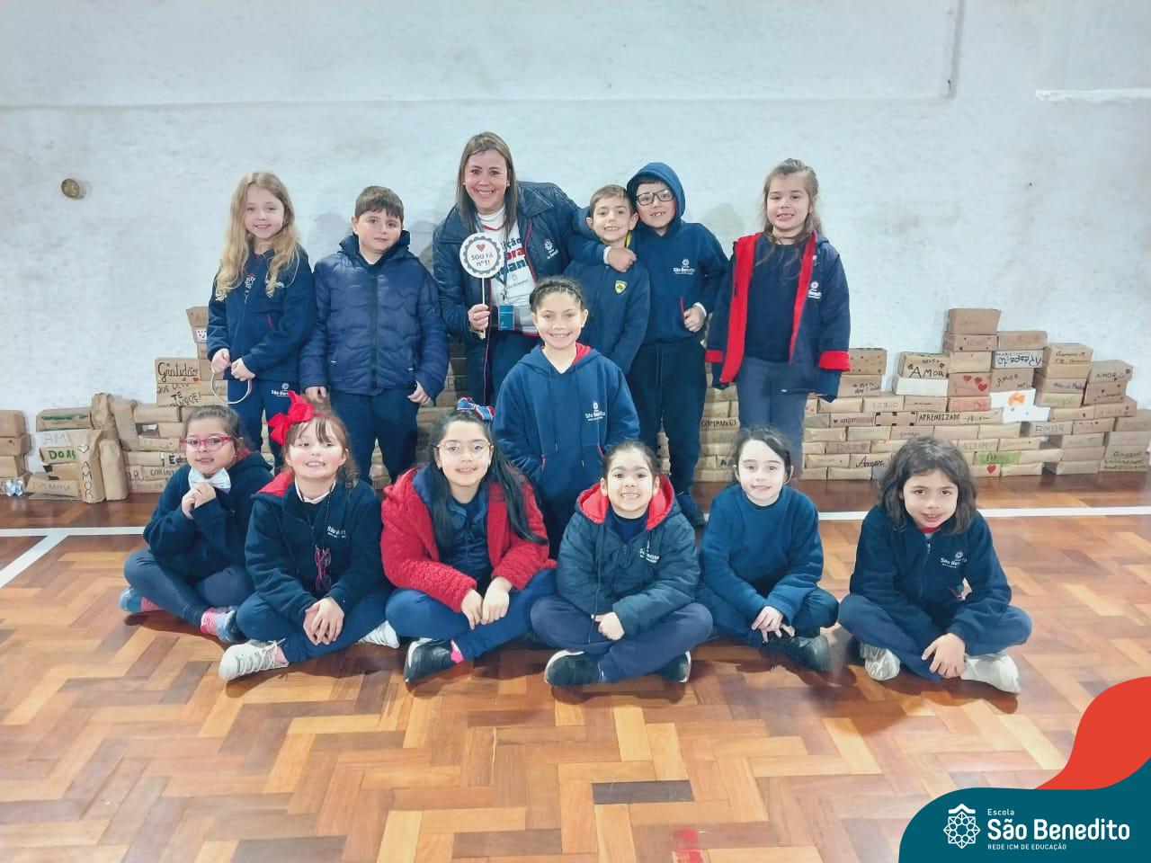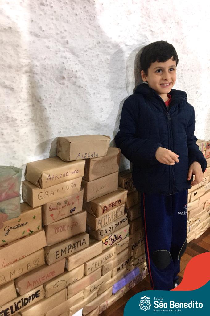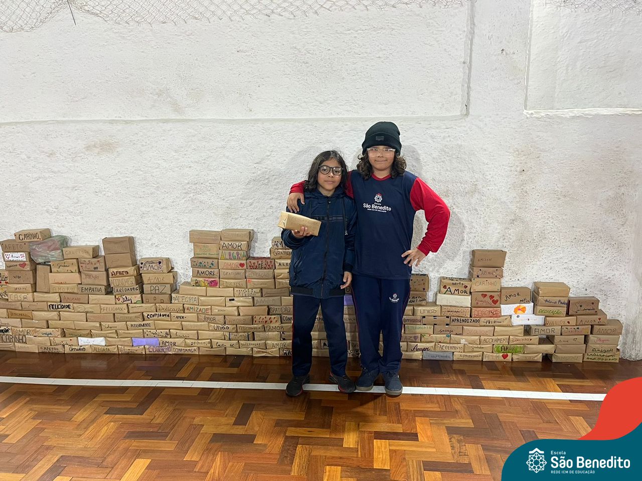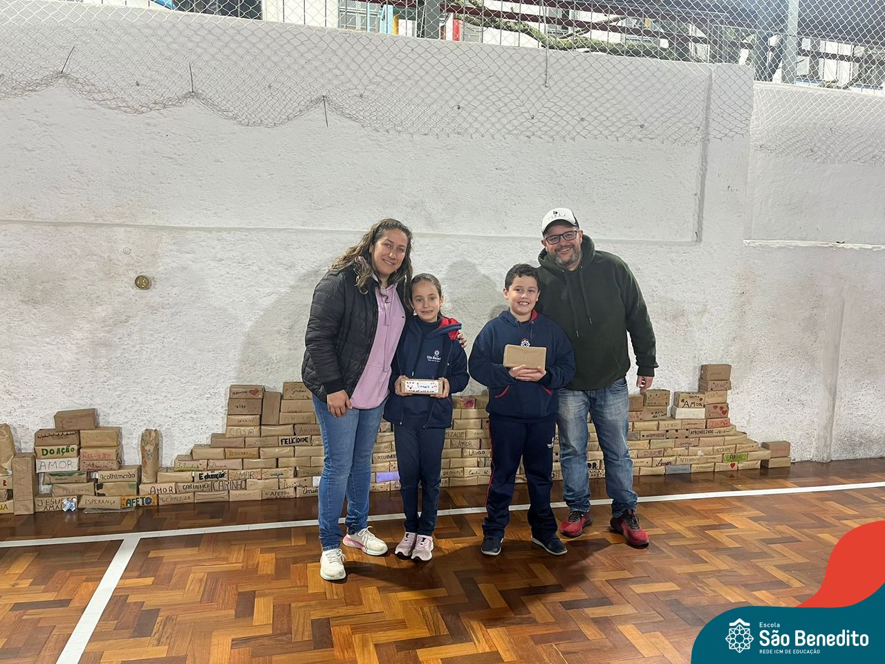Através de um gesto simbólico, os estudantes produziram tijolinhos com caixas de leite, que posteriormente foram doadas para os asilos, Vila Vicentina e José e Auta Gomes (total de 711 caixas). Cada tijolo possuía uma palavra (escolhida pelos estudantes e suas famílias), que representava a contribuição de cada um para a existência da atual Escola São Benedito.