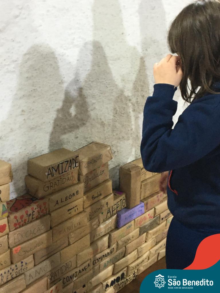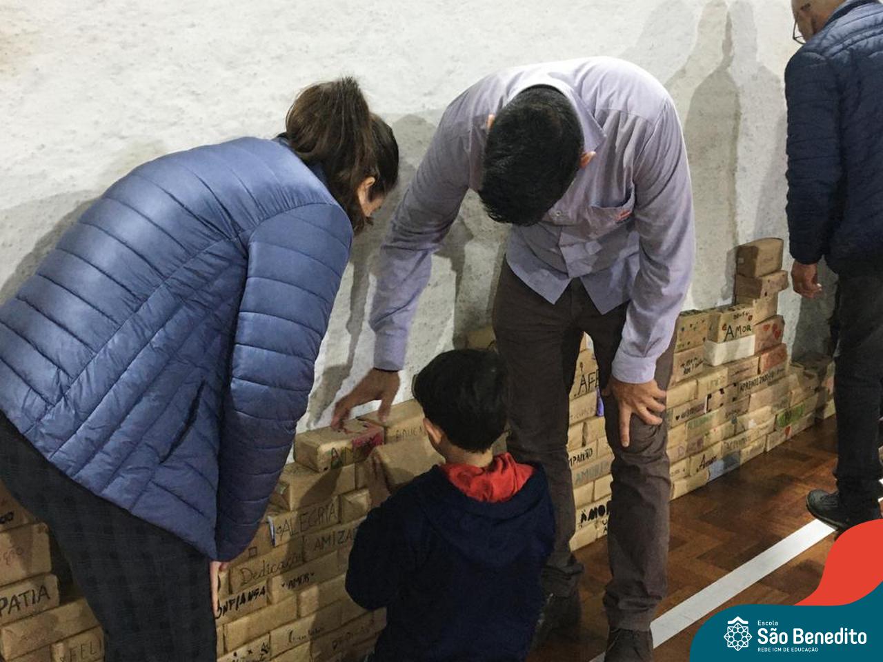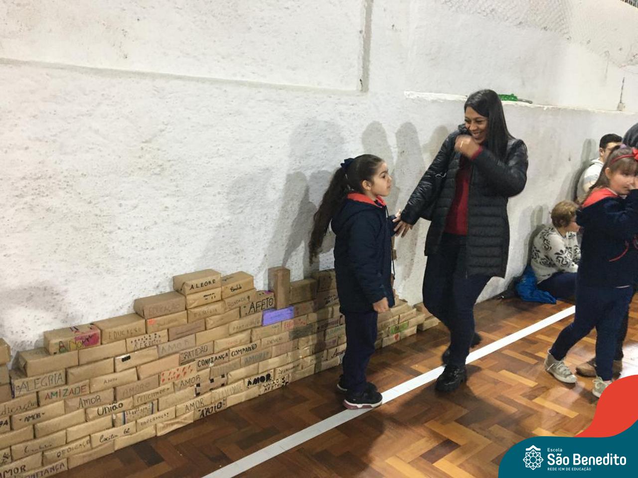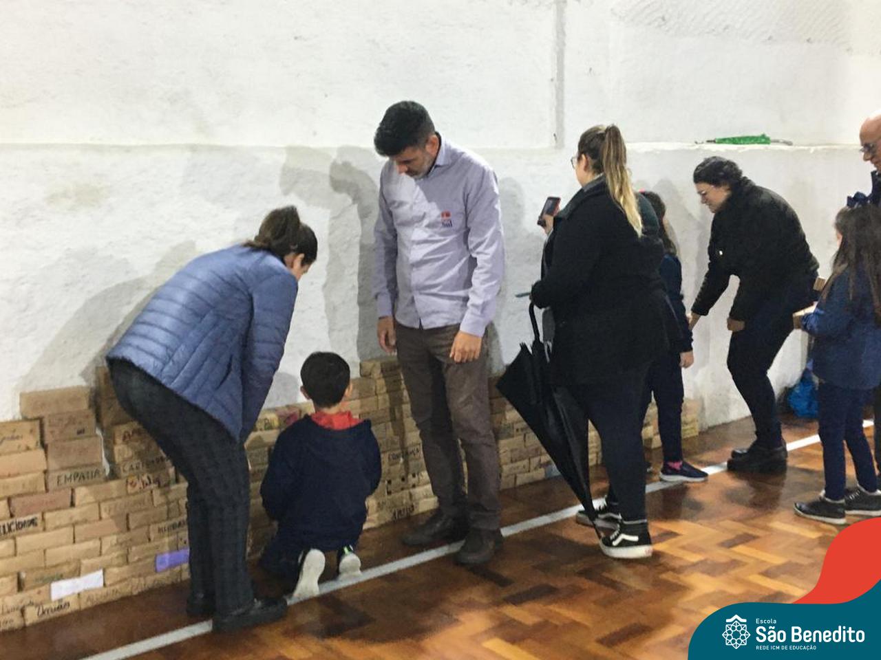 Para que esse momento pudesse ter o significado e o valor que merecia, os pais e responsáveis vieram até a Escola, onde junto de seus filhos, construíram um muro com seus tijolos. “Se o SENHOR não edificar a casa, em vão trabalham os que a edificam” (Salmos 127). Nossa escola é edificada com os valores cristãos, que estão no coração de cada um, que agora foram expressos em palavras, nos tijolinhos. Além disso, recebemos a bênção do Padre Jair, da Catedral de São Sebastião.