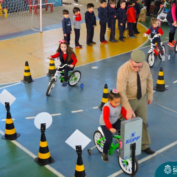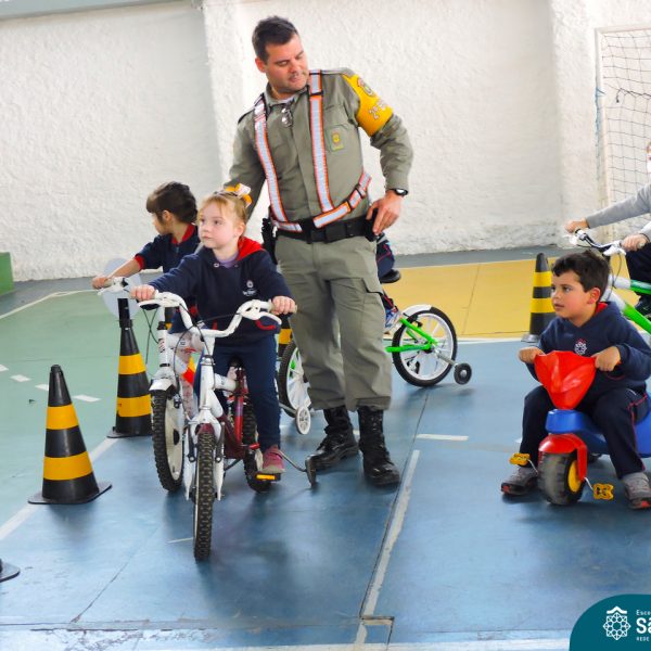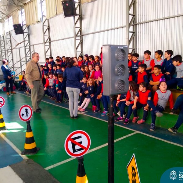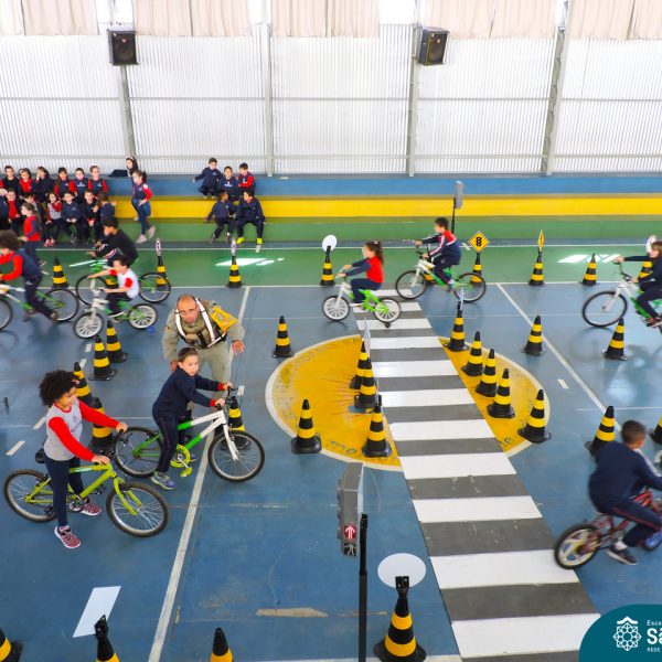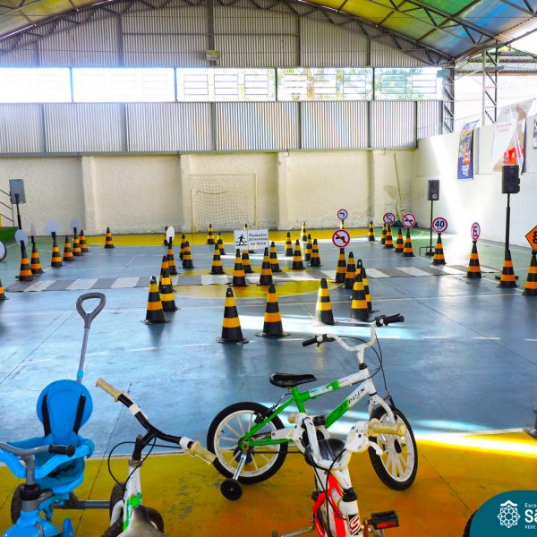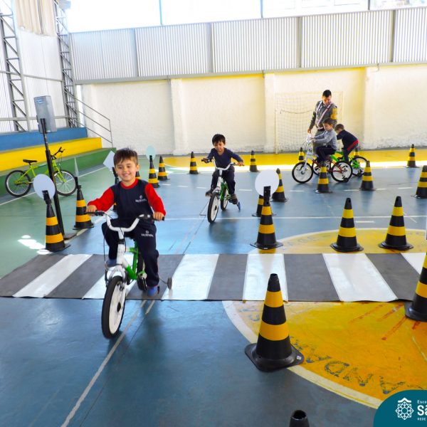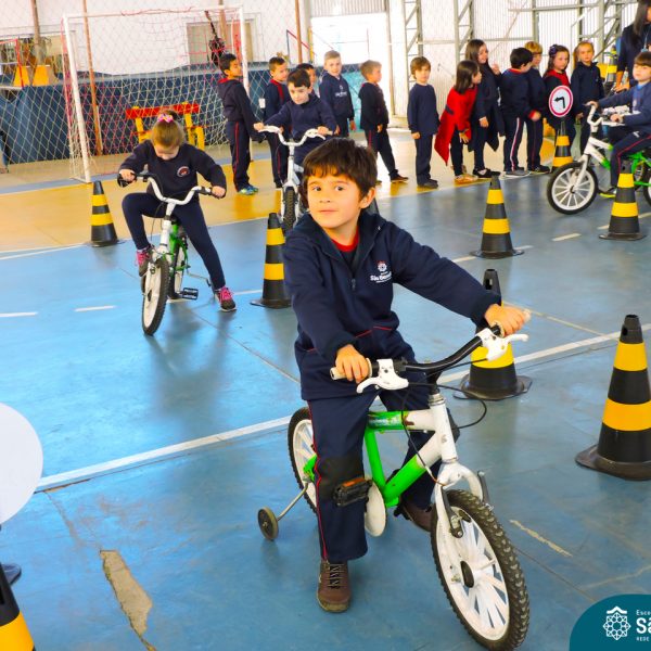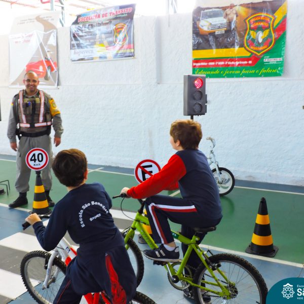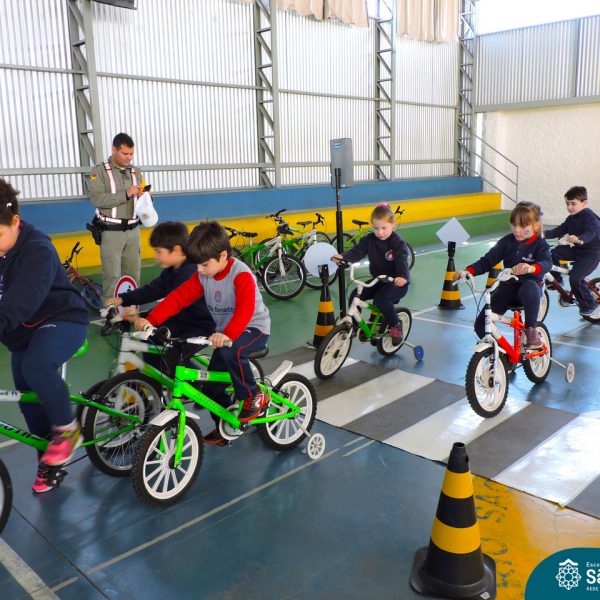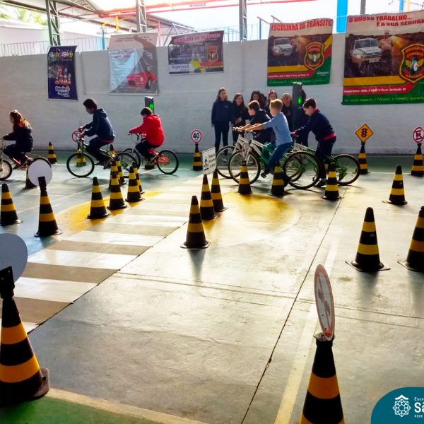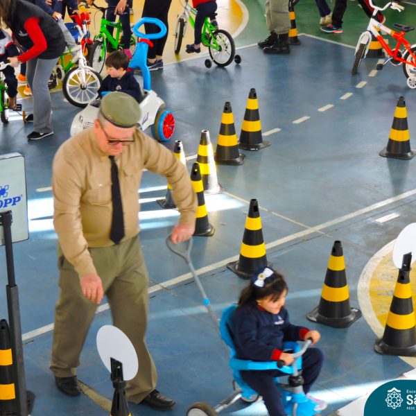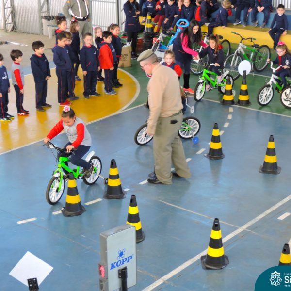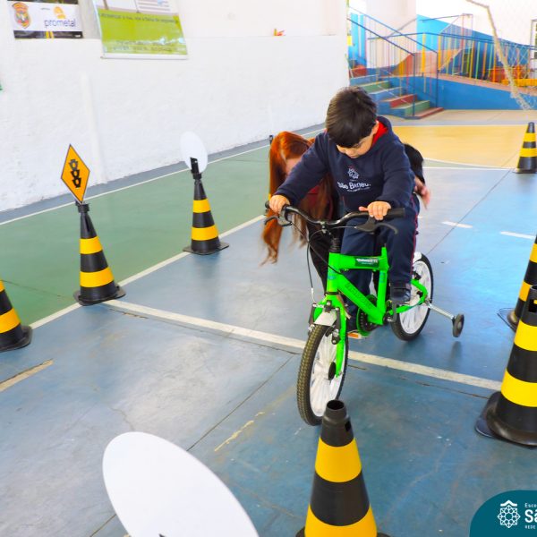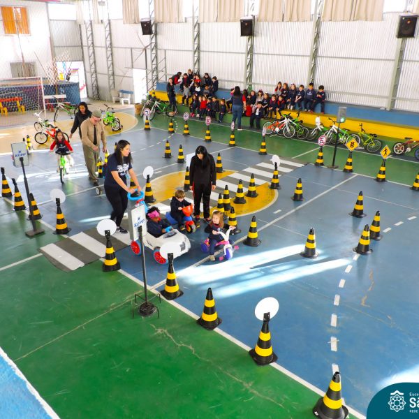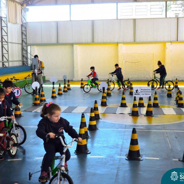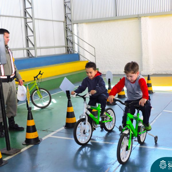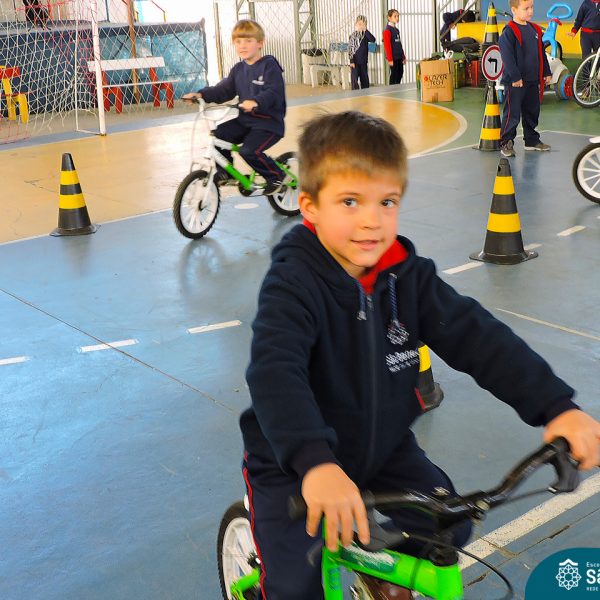 Os alunos da Educação Infantil até o 6º Ano, participaram de um circuito que simula o trânsito, que foi montado na quadra da Escola. Esse é o projeto “Escolinha de Trânsito”, do 2º BRBM.