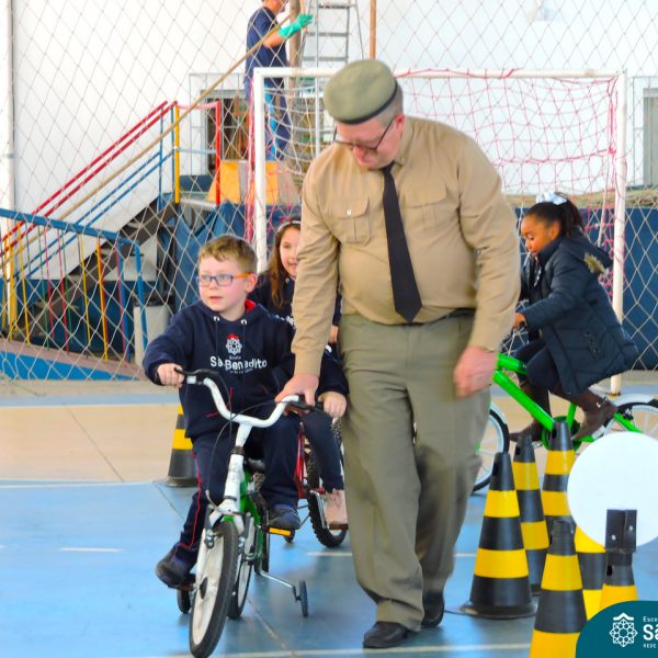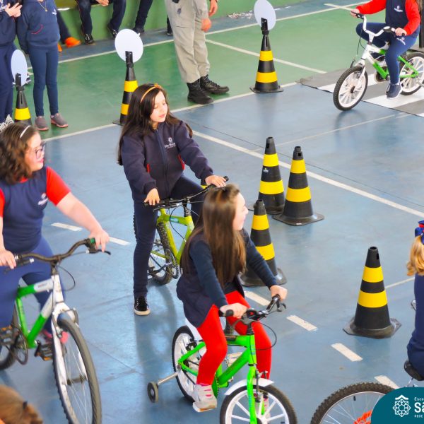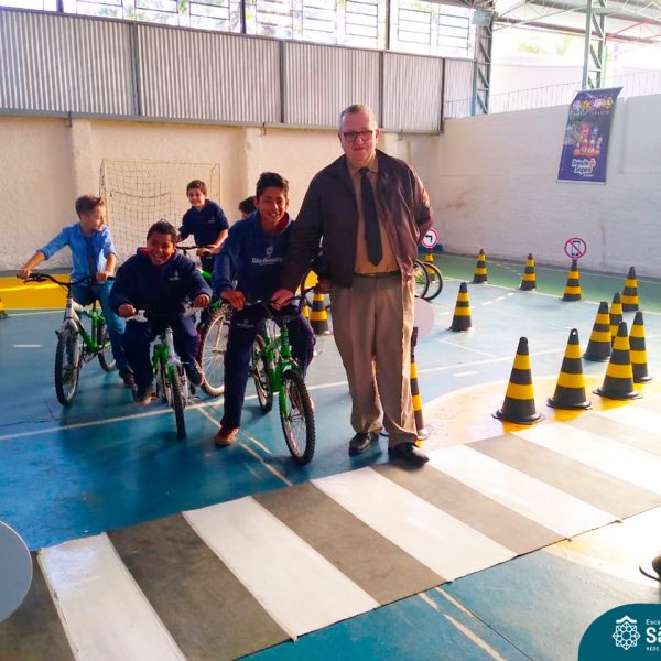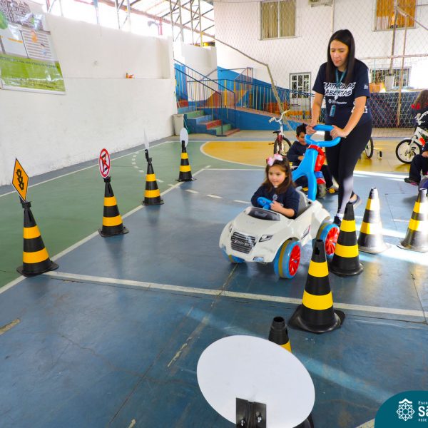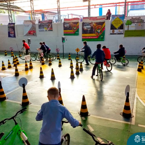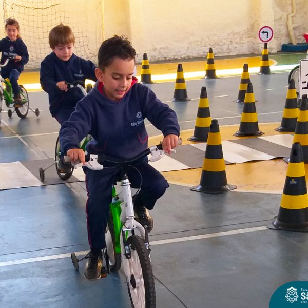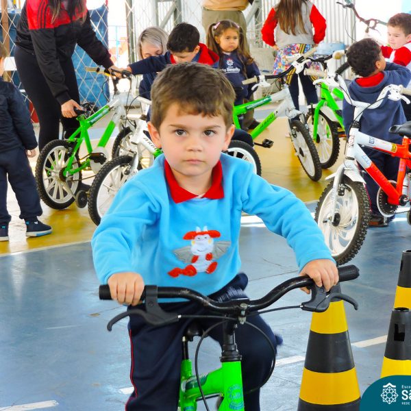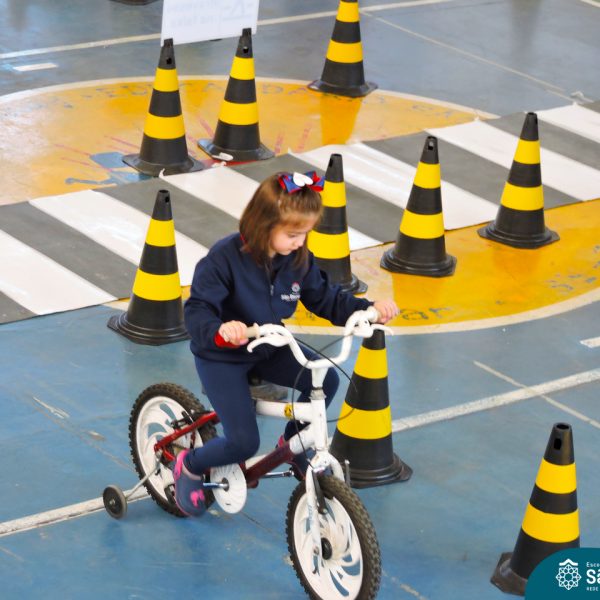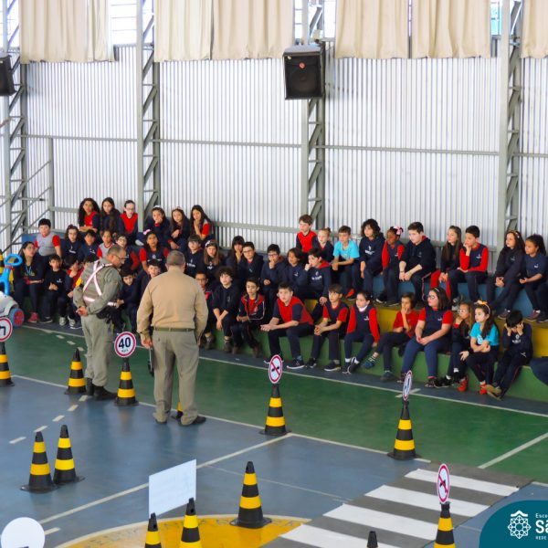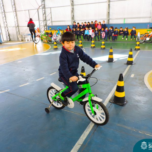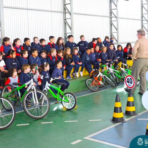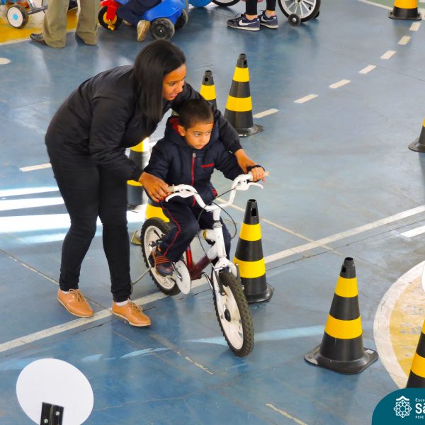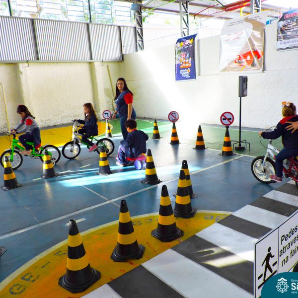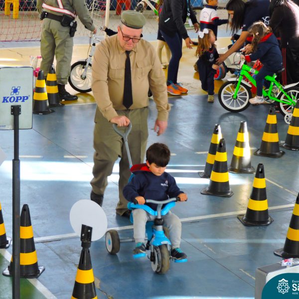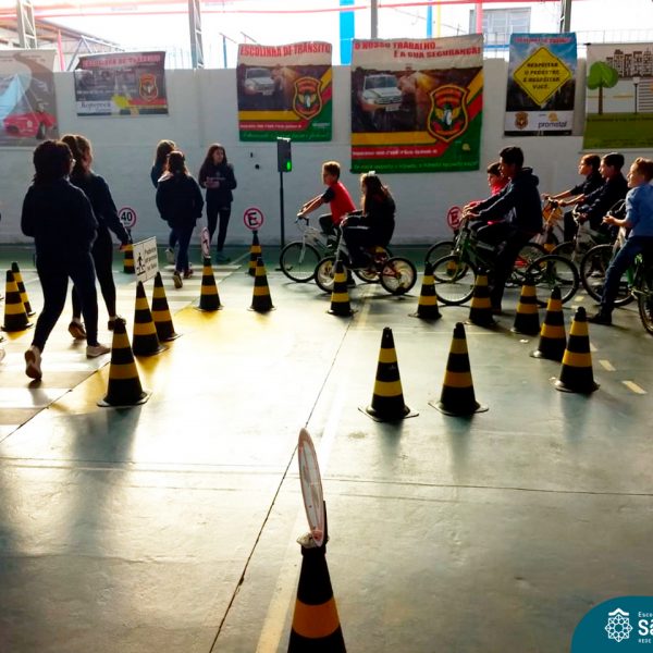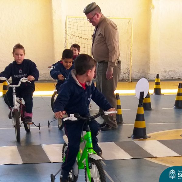 Os alunos da Educação Infantil até o 6º Ano, participaram de um circuito que simula o trânsito, que foi montado na quadra da Escola. Esse é o projeto “Escolinha de Trânsito”, do 2º BRBM.