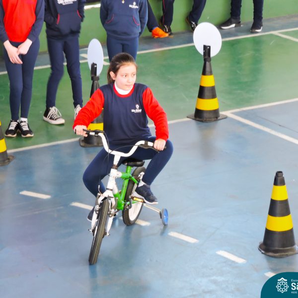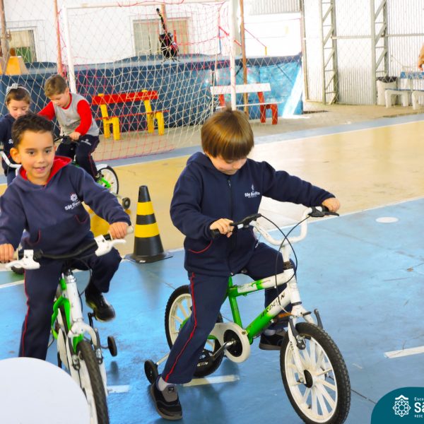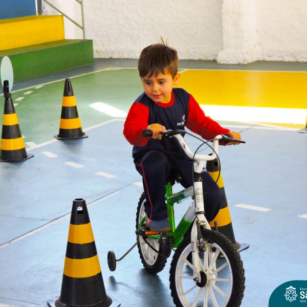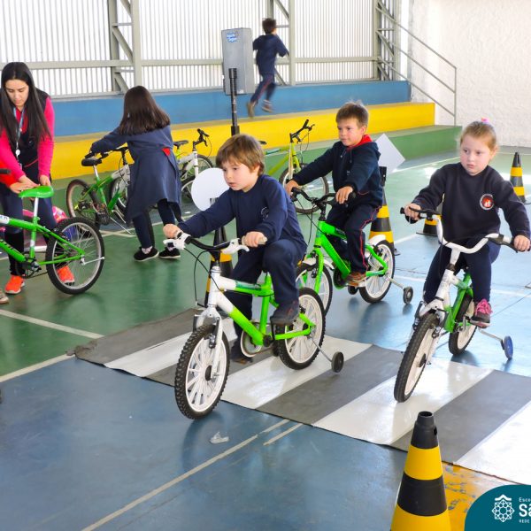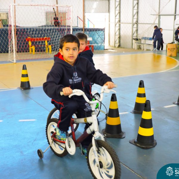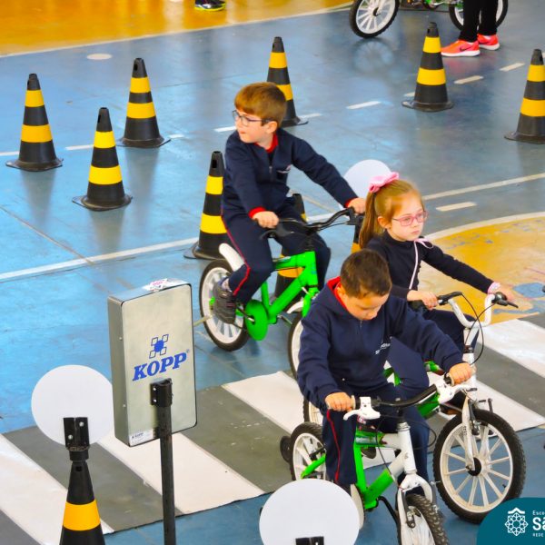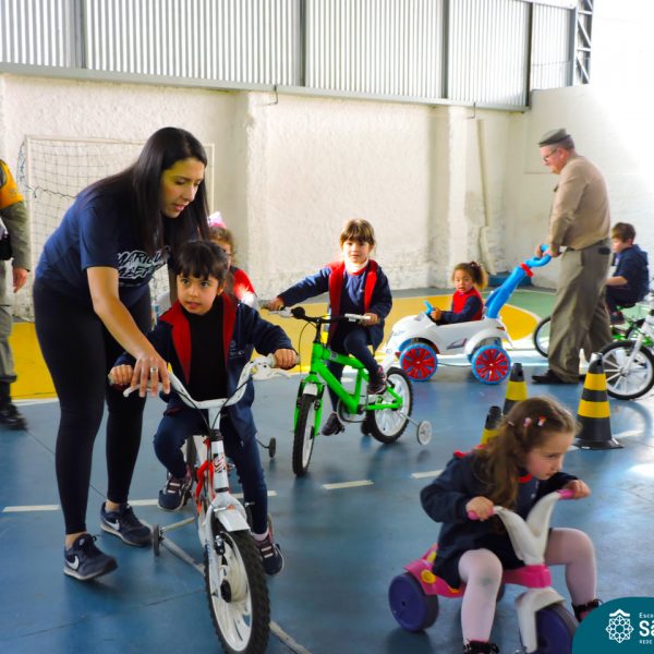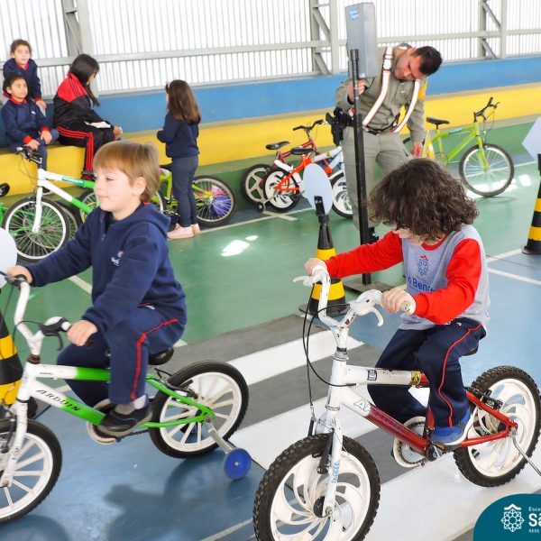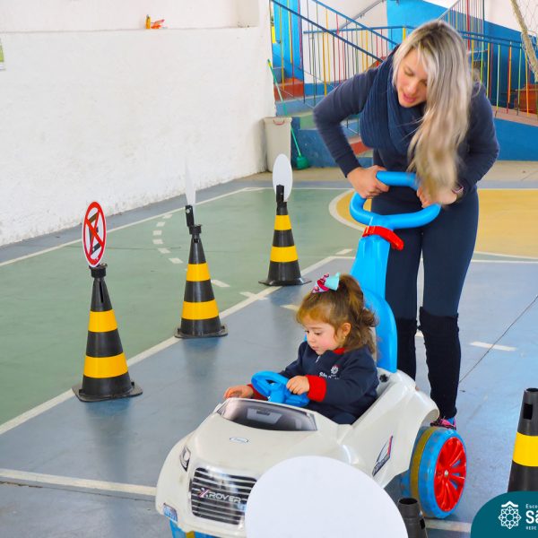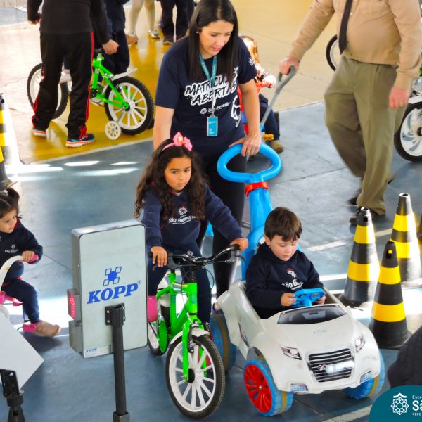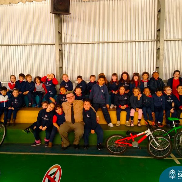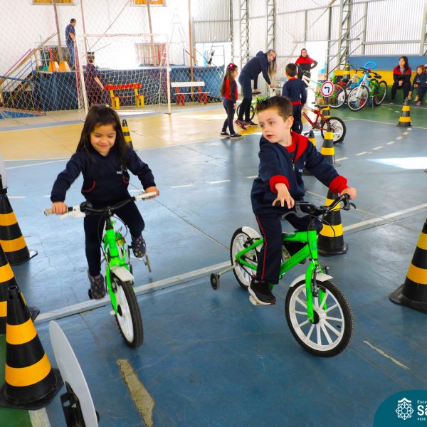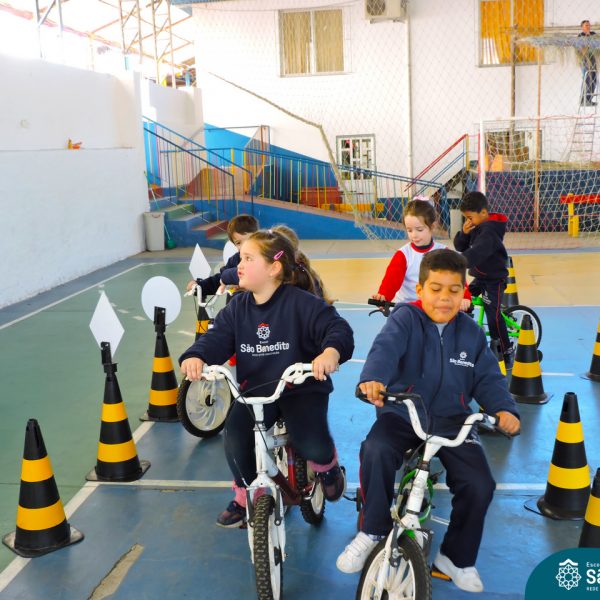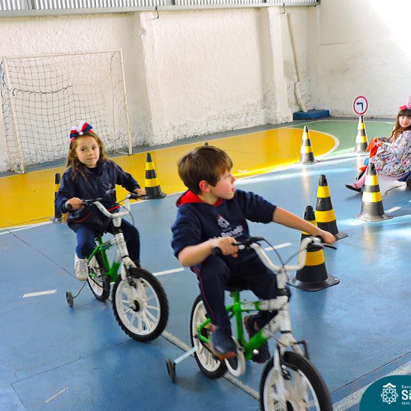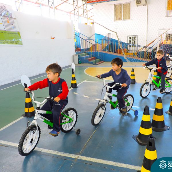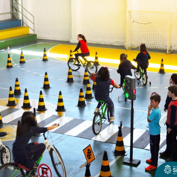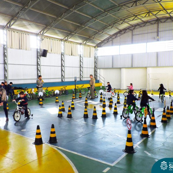 Os alunos da Educação Infantil até o 6º Ano, participaram de um circuito que simula o trânsito, que foi montado na quadra da Escola. Esse é o projeto “Escolinha de Trânsito”, do 2º BRBM.