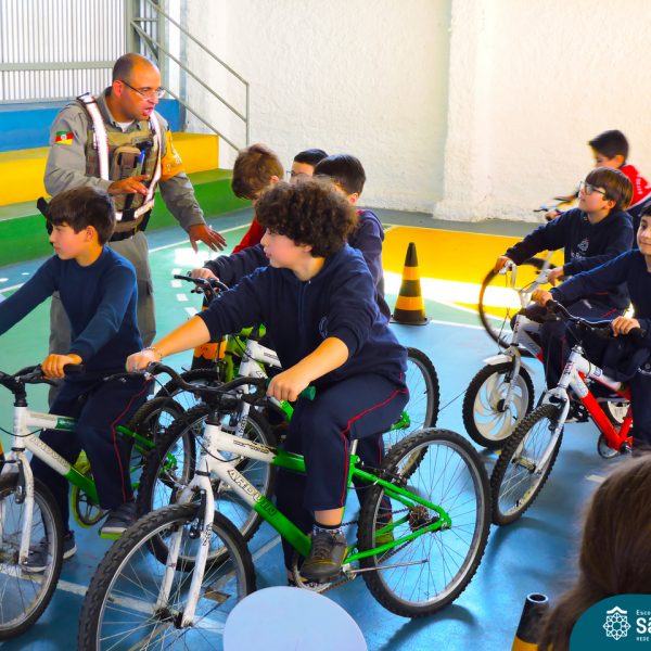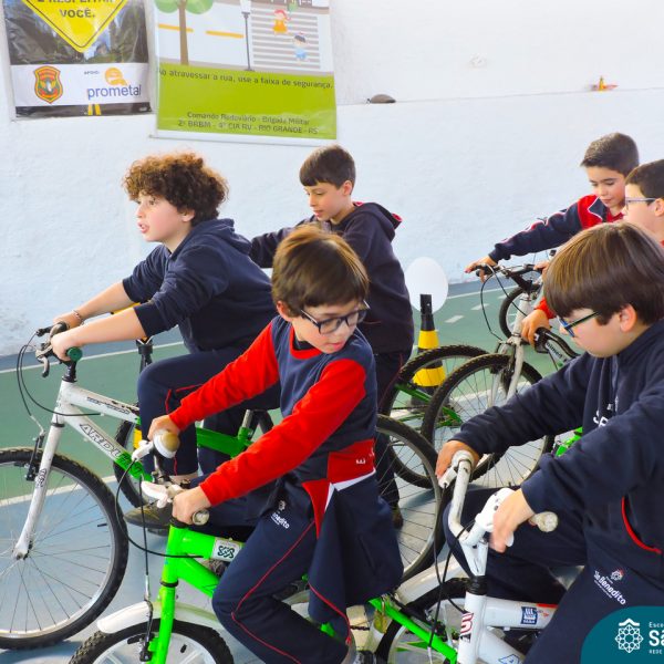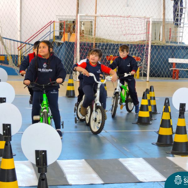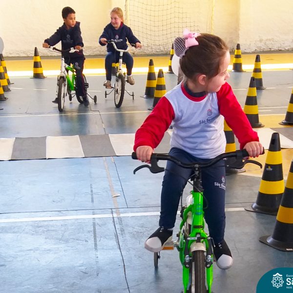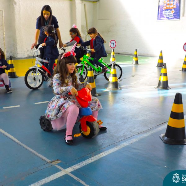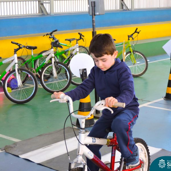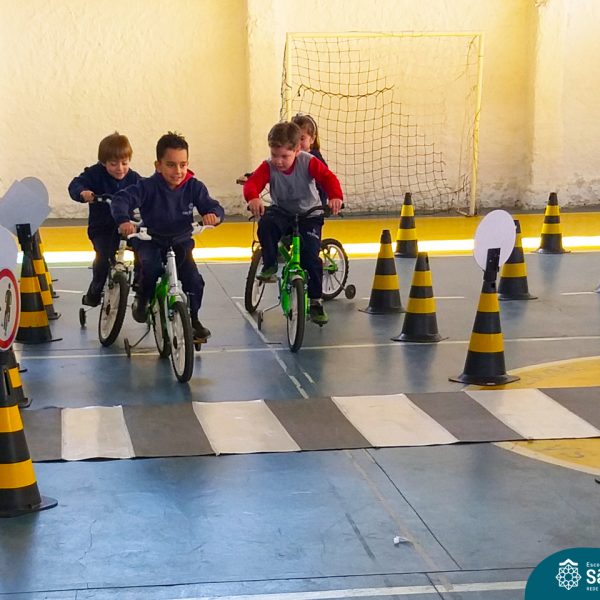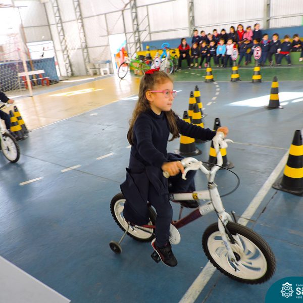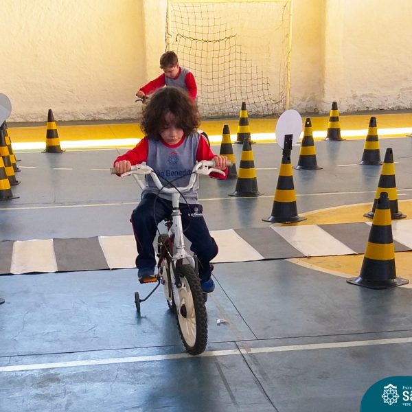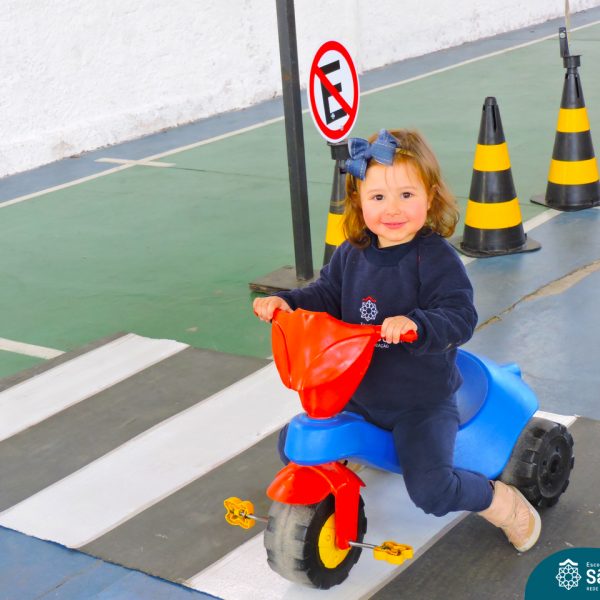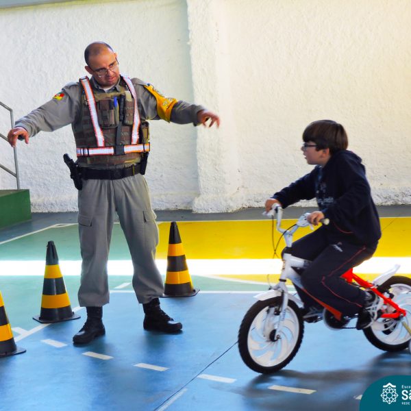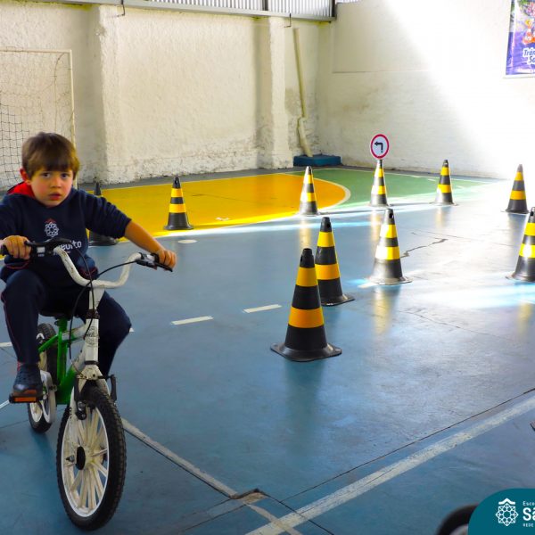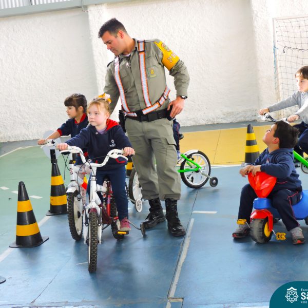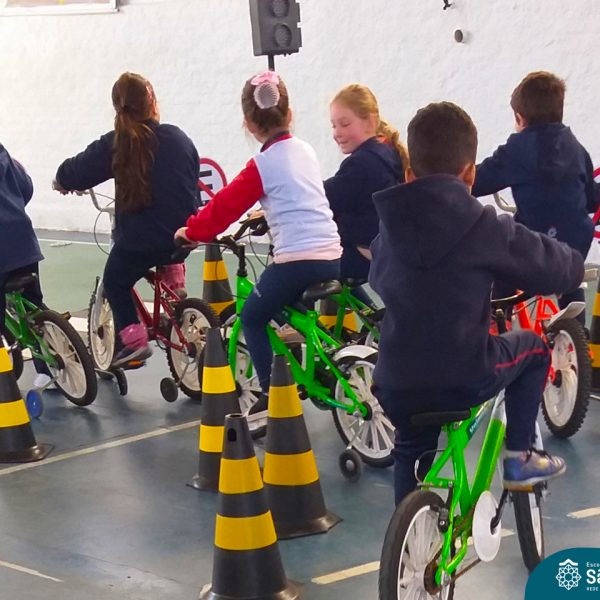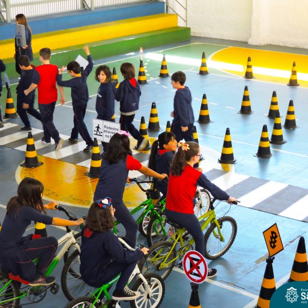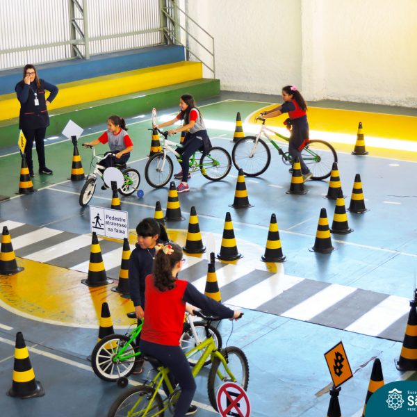 Os alunos da Educação Infantil até o 6º Ano, participaram de um circuito que simula o trânsito, que foi montado na quadra da Escola. Esse é o projeto “Escolinha de Trânsito”, do 2º BRBM.