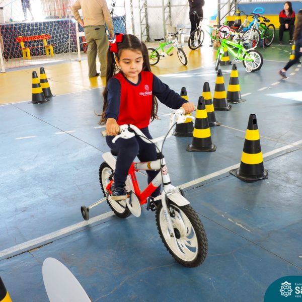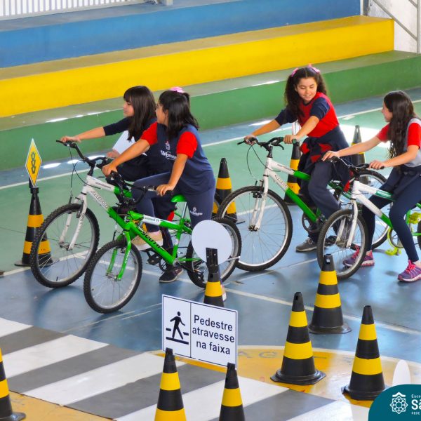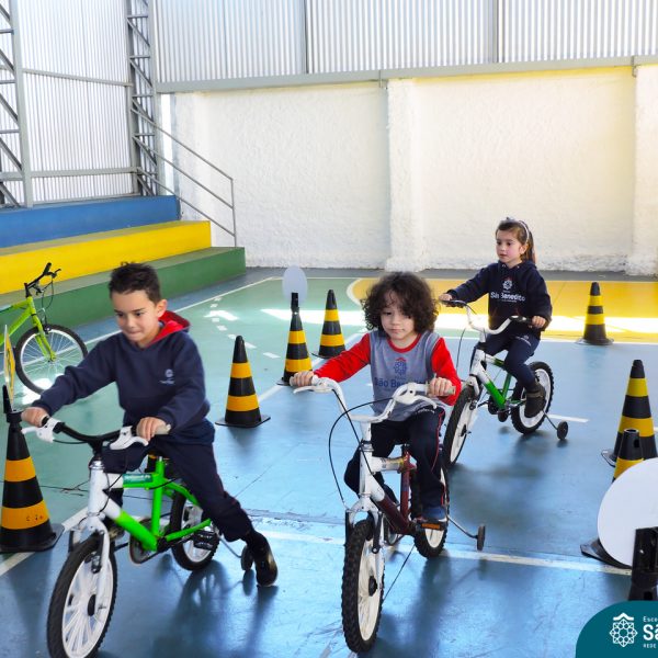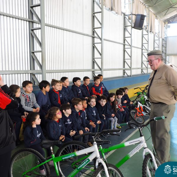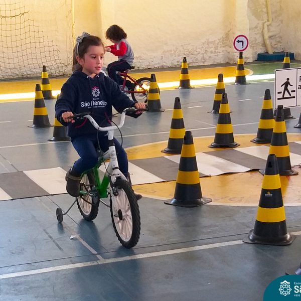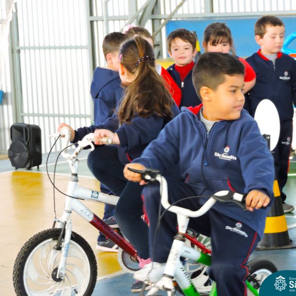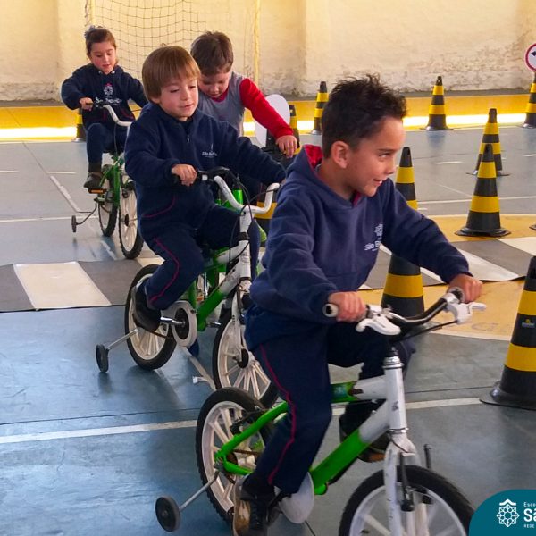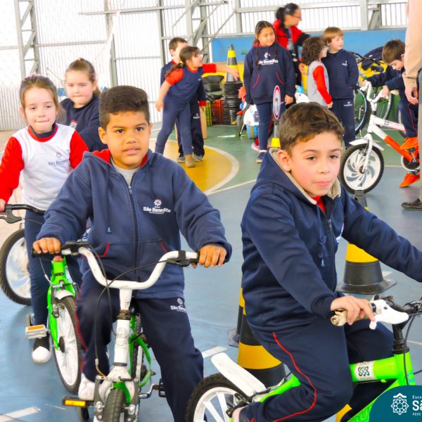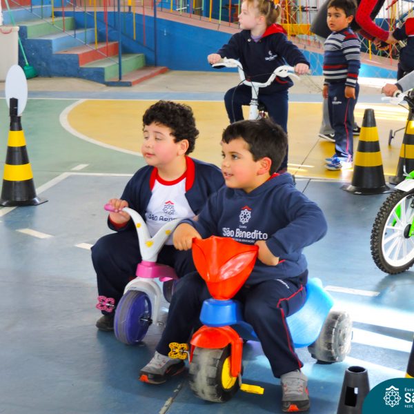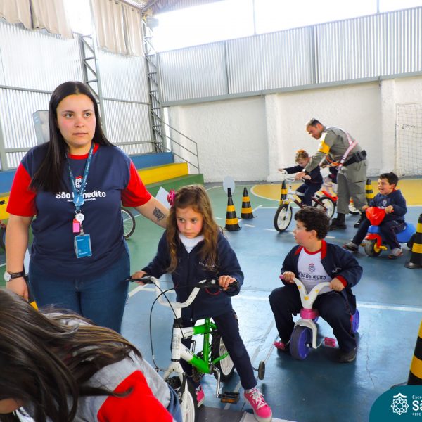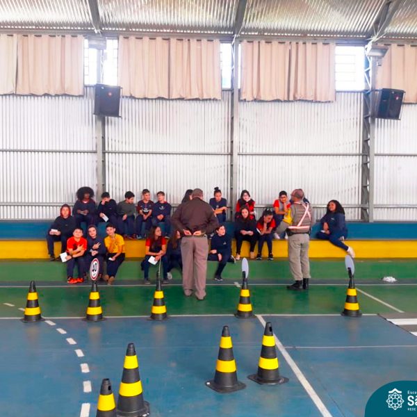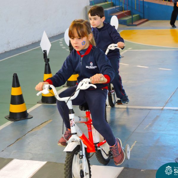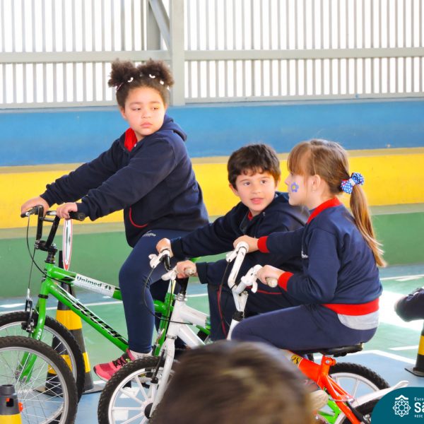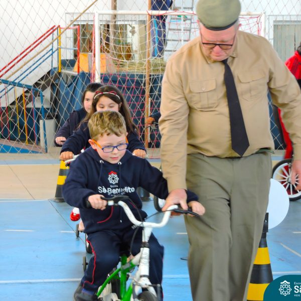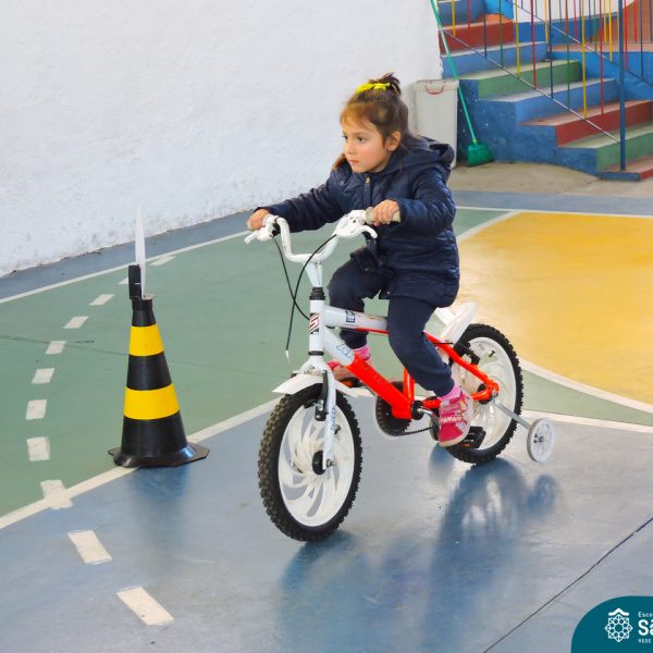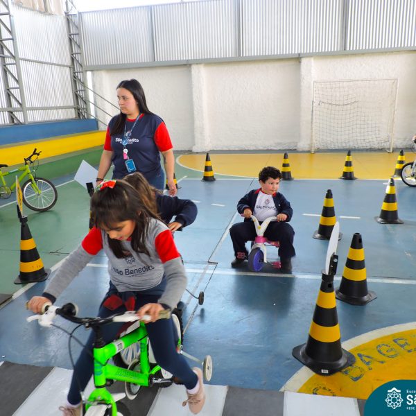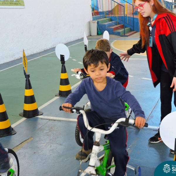 Os alunos da Educação Infantil até o 6º Ano, participaram de um circuito que simula o trânsito, que foi montado na quadra da Escola. Esse é o projeto “Escolinha de Trânsito”, do 2º BRBM.