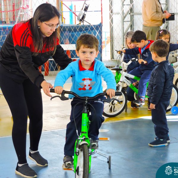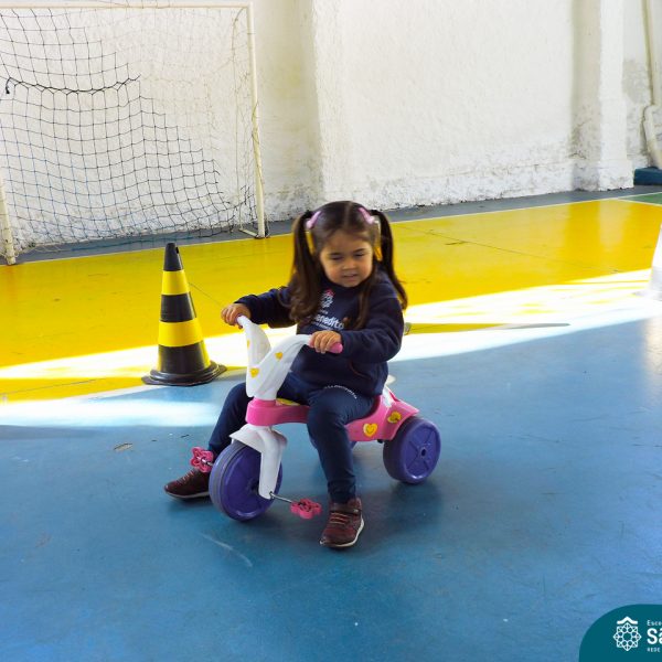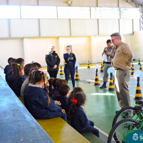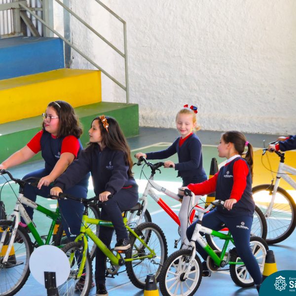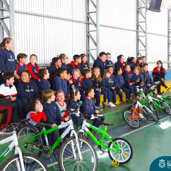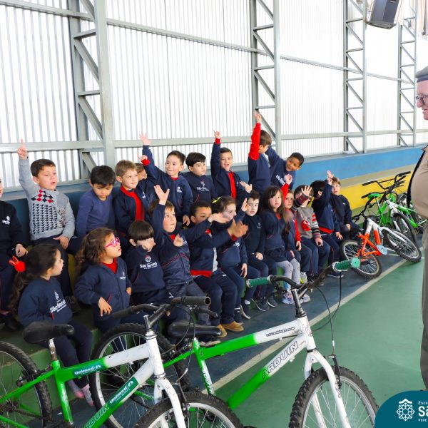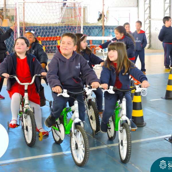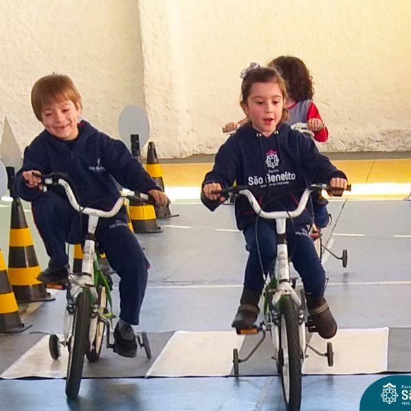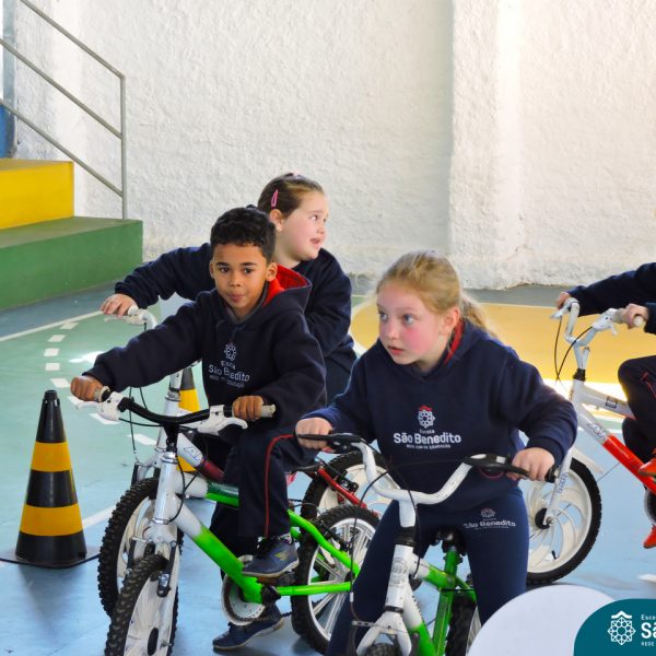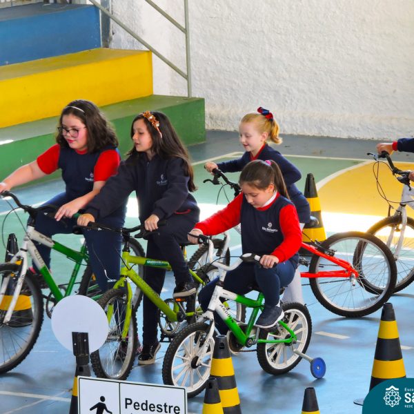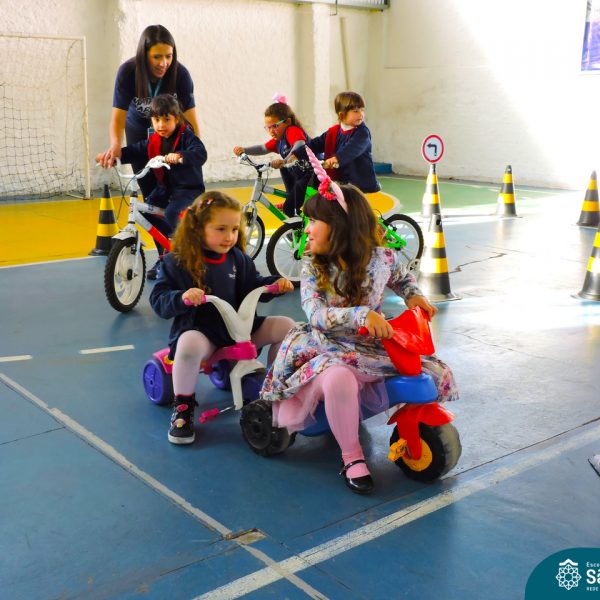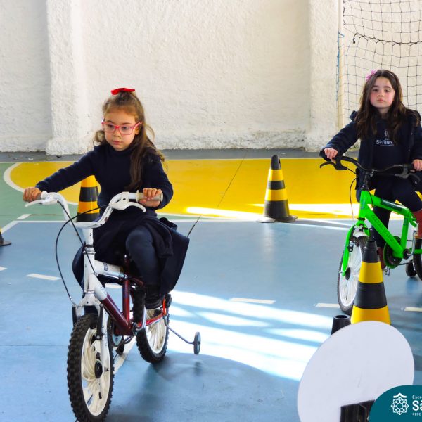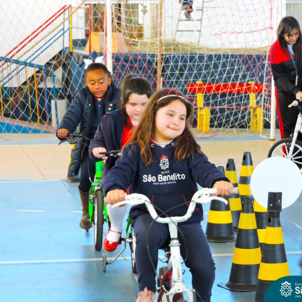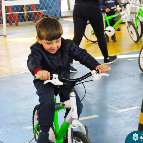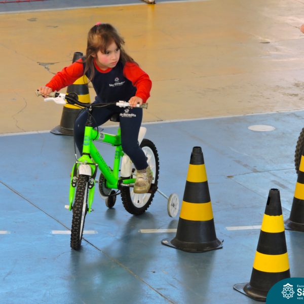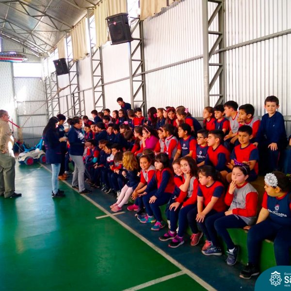 Os alunos da Educação Infantil até o 6º Ano, participaram de um circuito que simula o trânsito, que foi montado na quadra da Escola. Esse é o projeto “Escolinha de Trânsito”, do 2º BRBM.