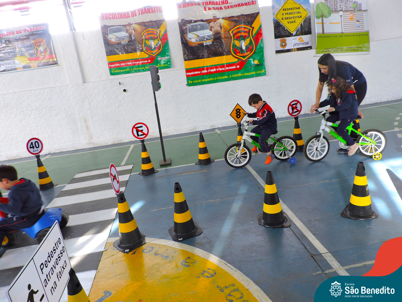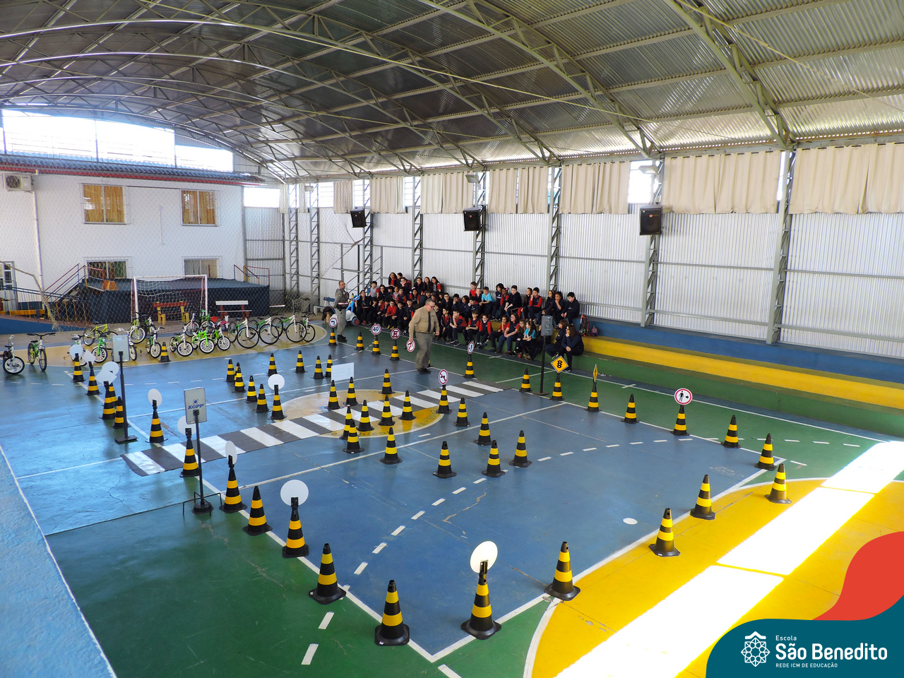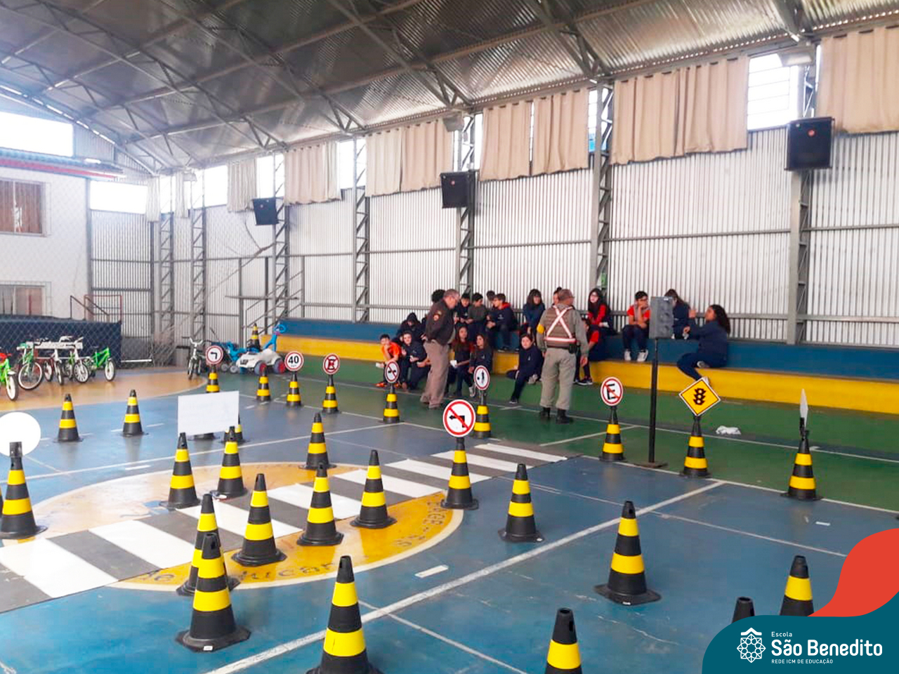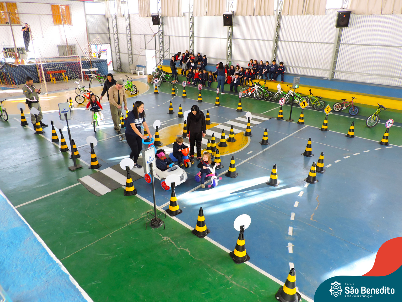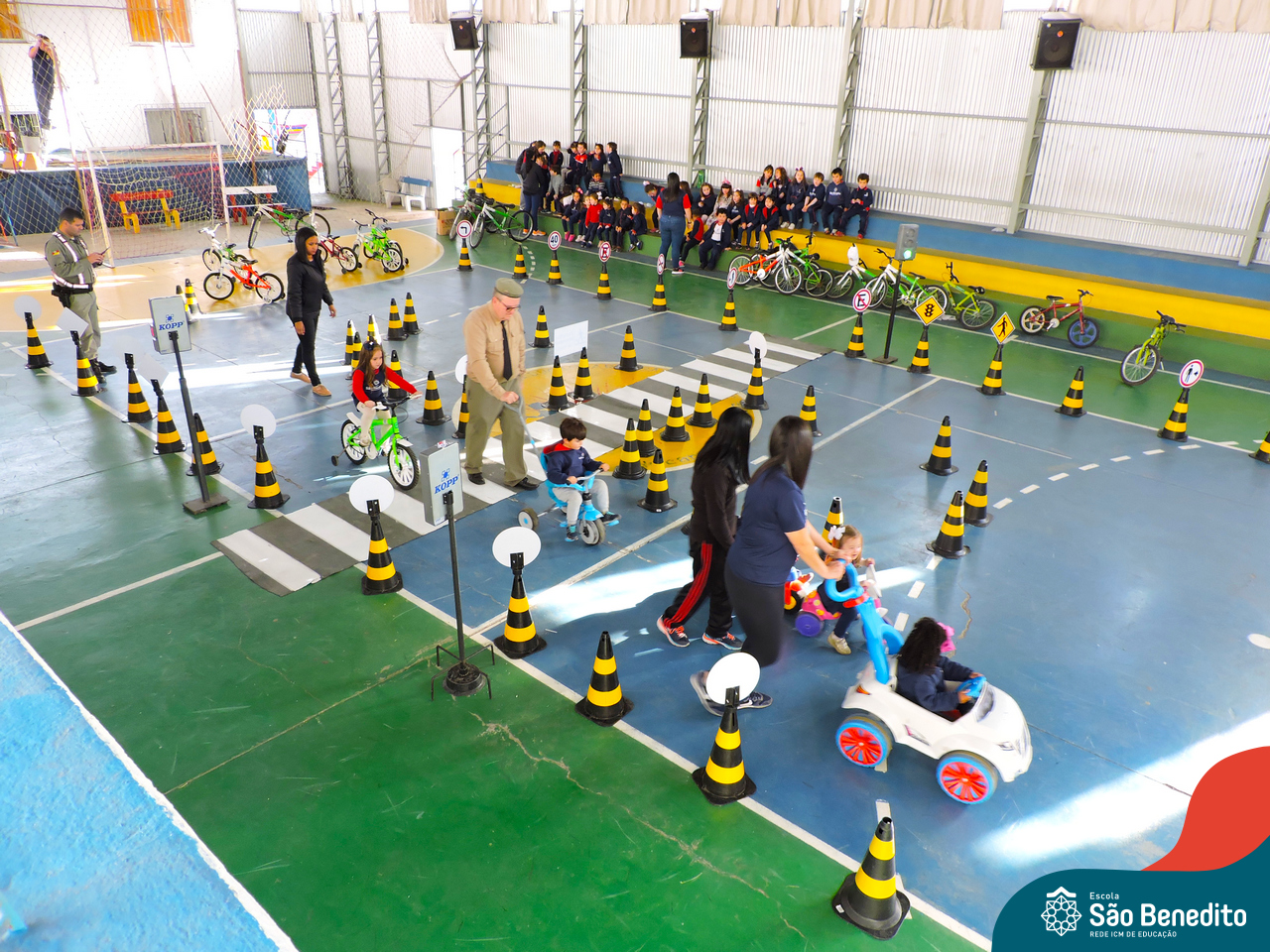 Os alunos da Educação Infantil até o 6º Ano, participaram de um circuito que simula o trânsito, que foi montado na quadra da Escola. Esse é o projeto “Escolinha de Trânsito”, do 2º BRBM.