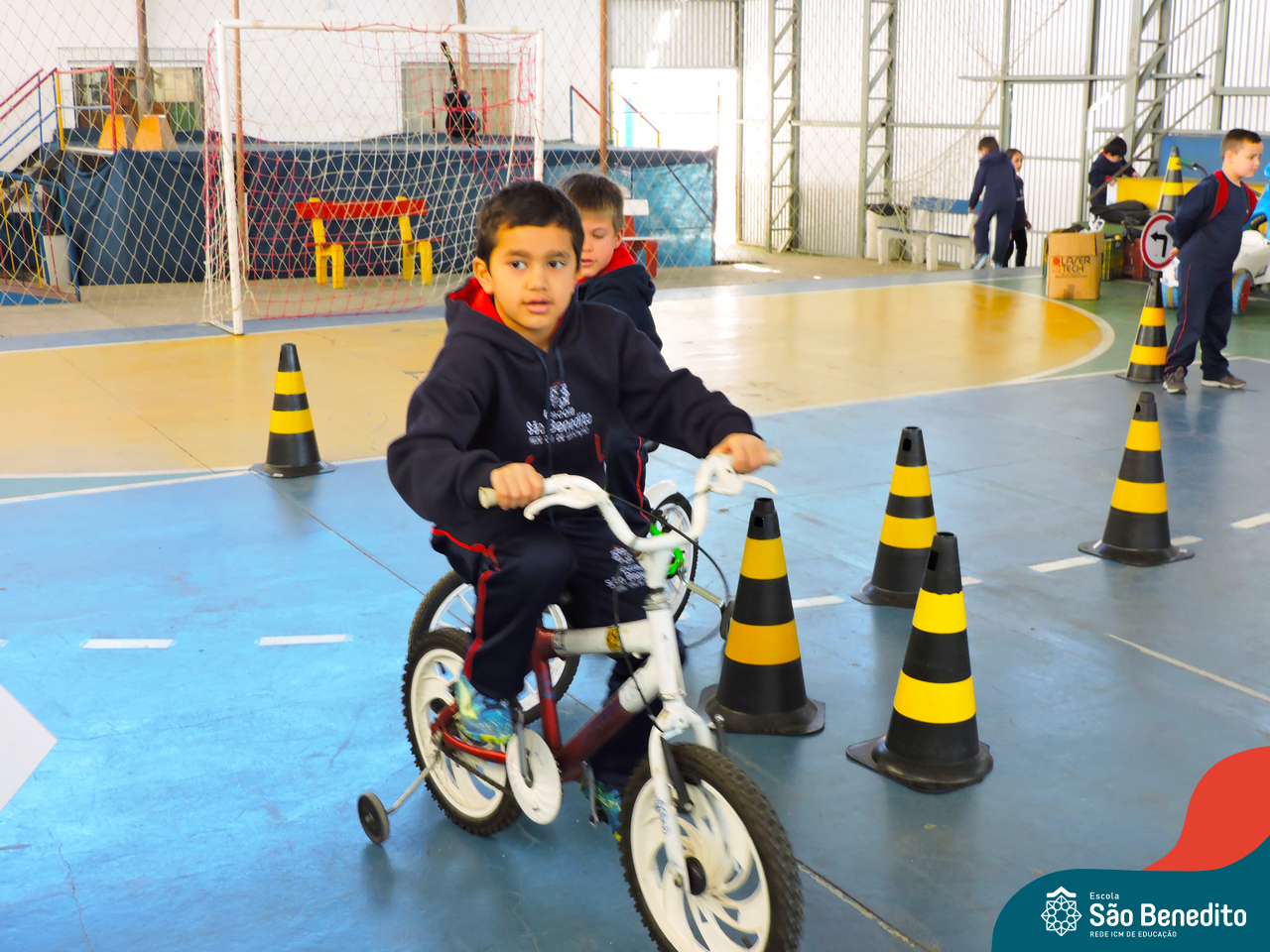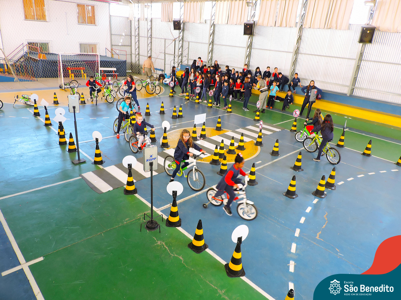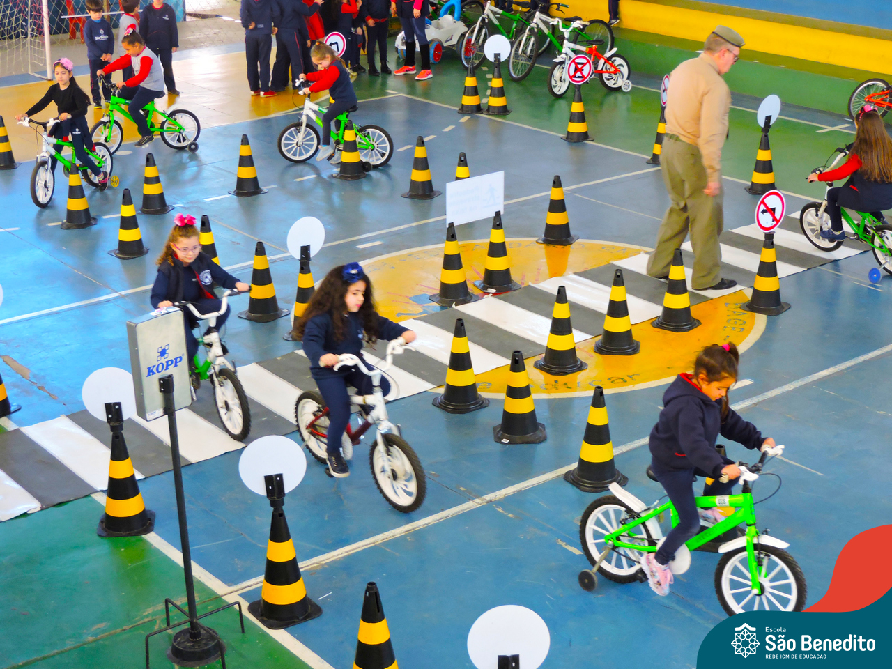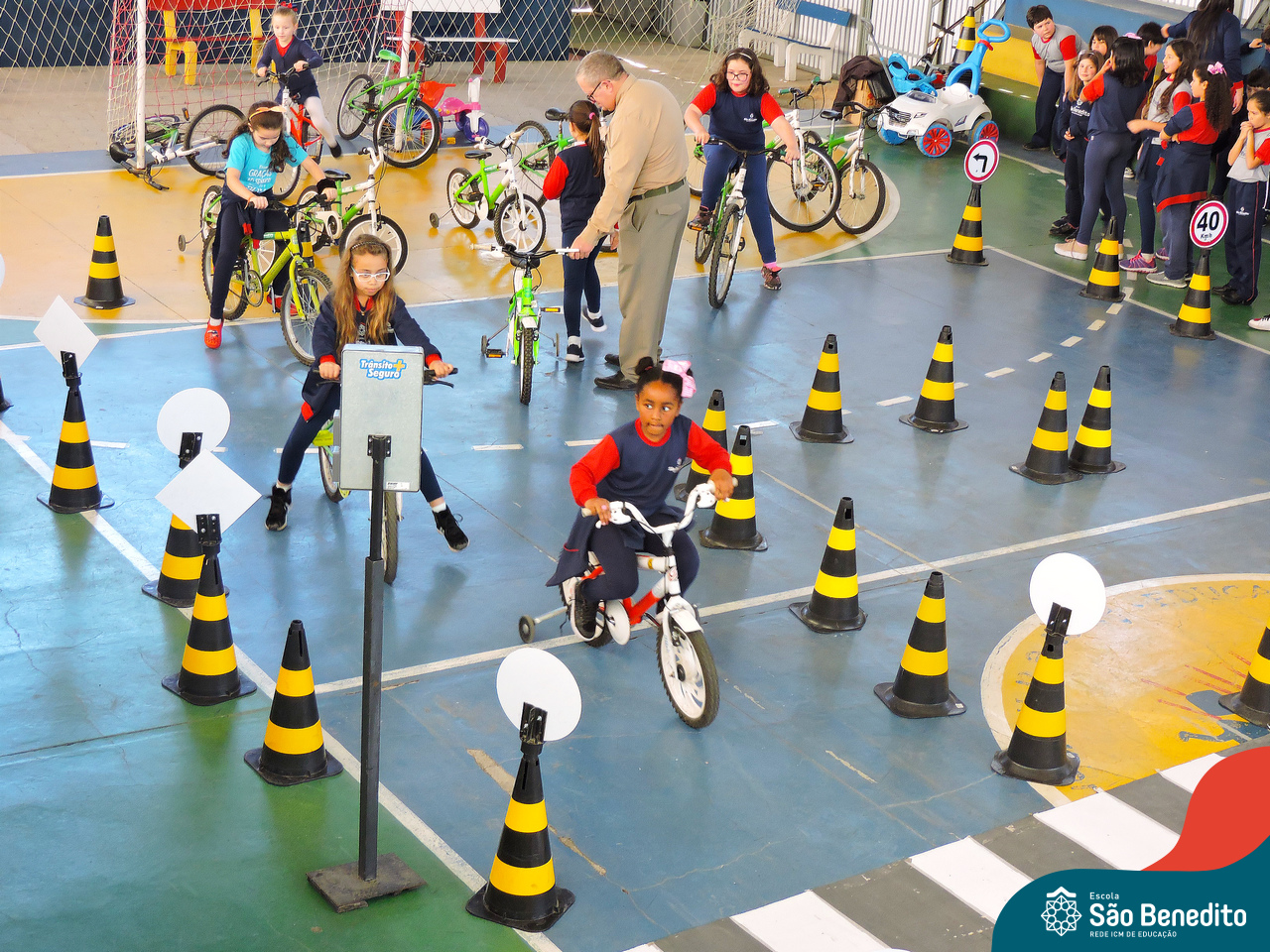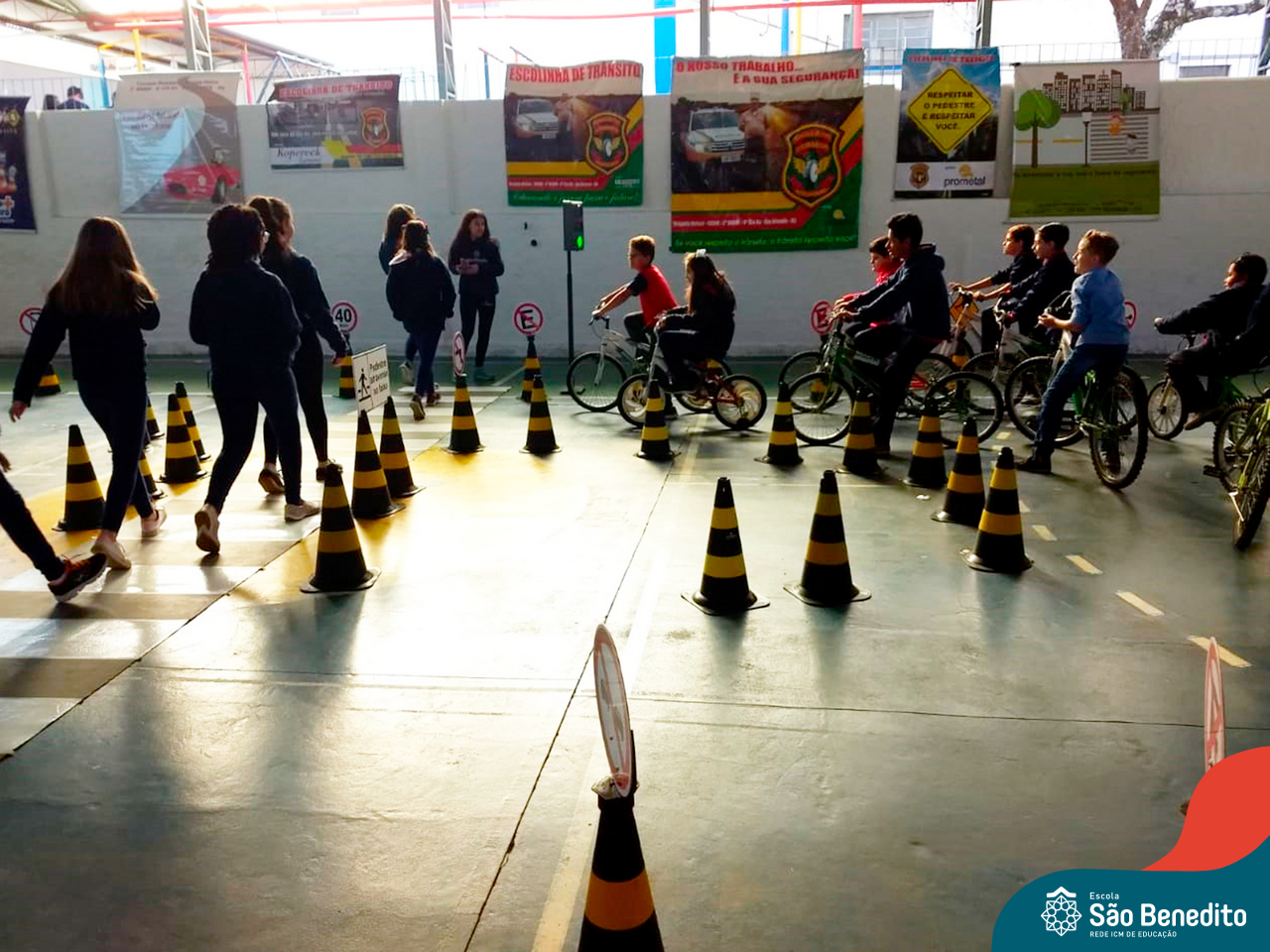 Os alunos da Educação Infantil até o 6º Ano, participaram de um circuito que simula o trânsito, que foi montado na quadra da Escola. Esse é o projeto “Escolinha de Trânsito”, do 2º BRBM.