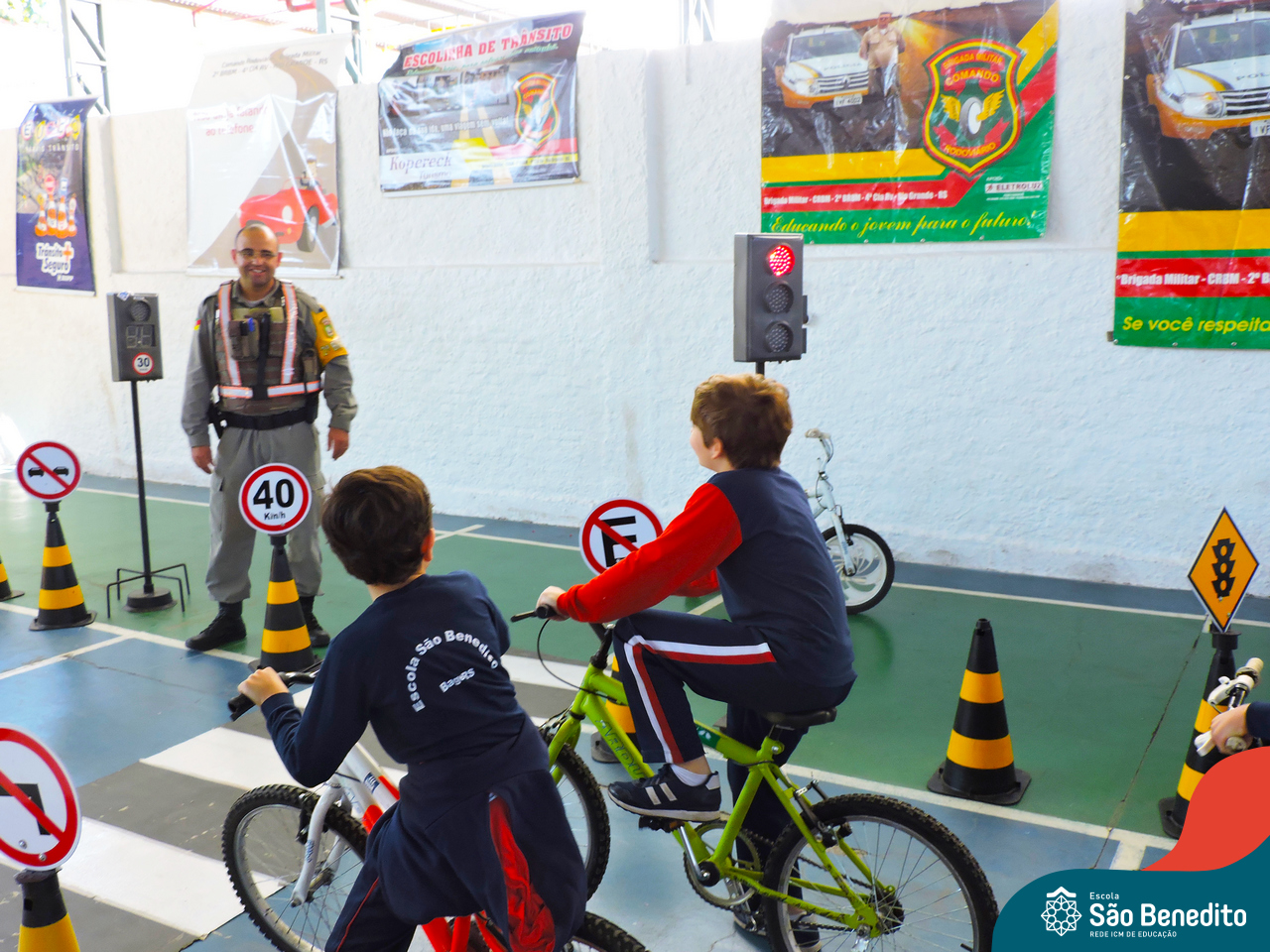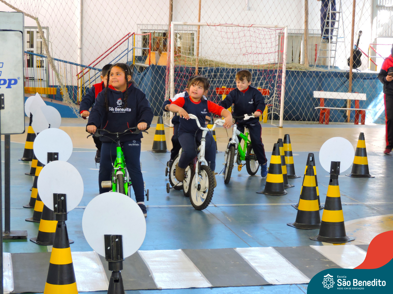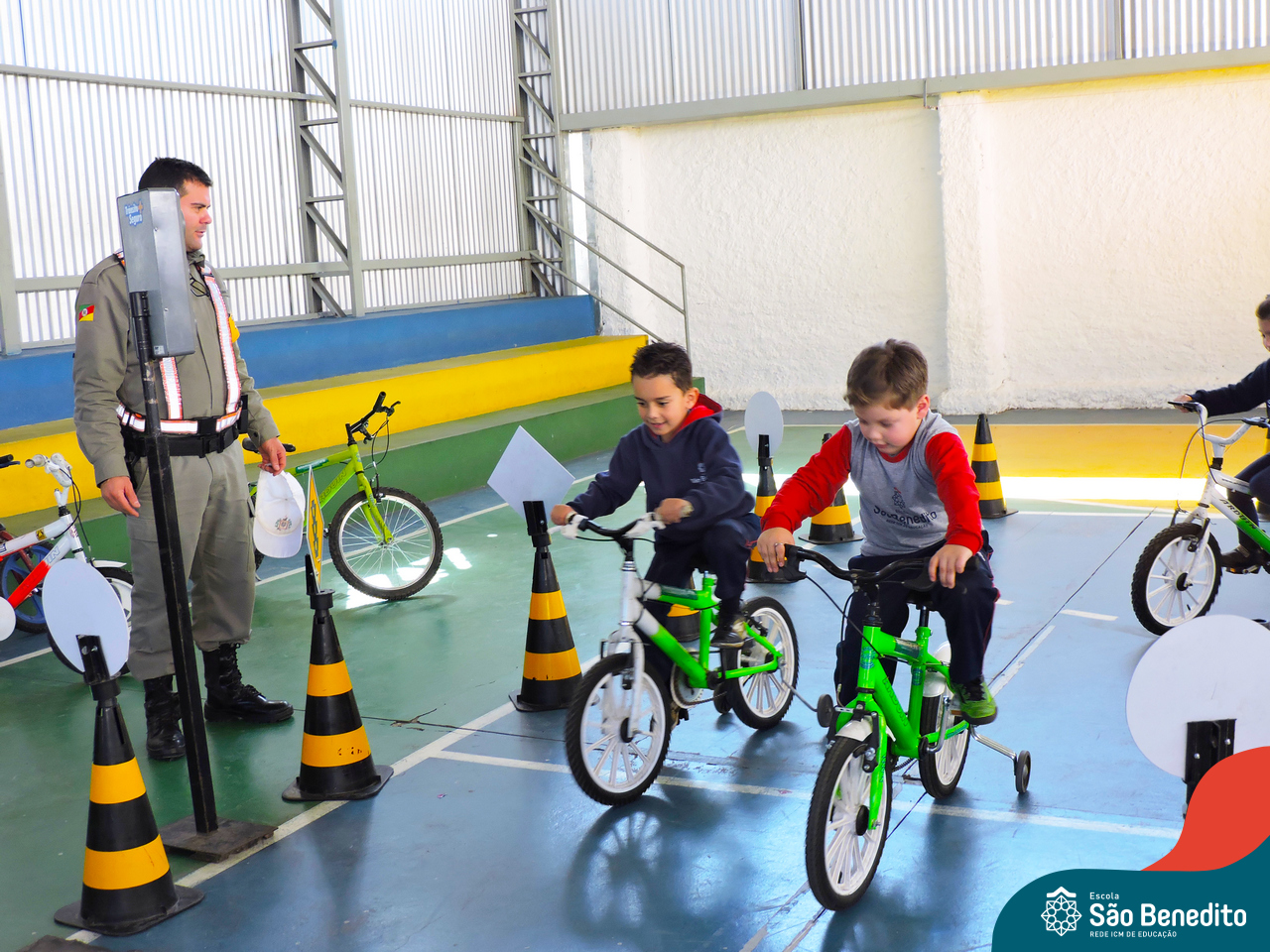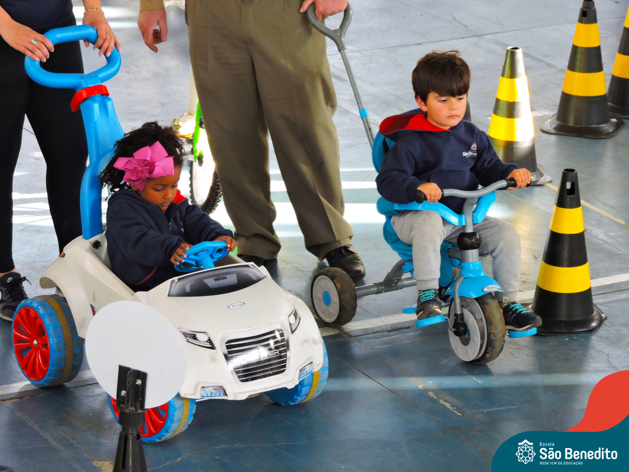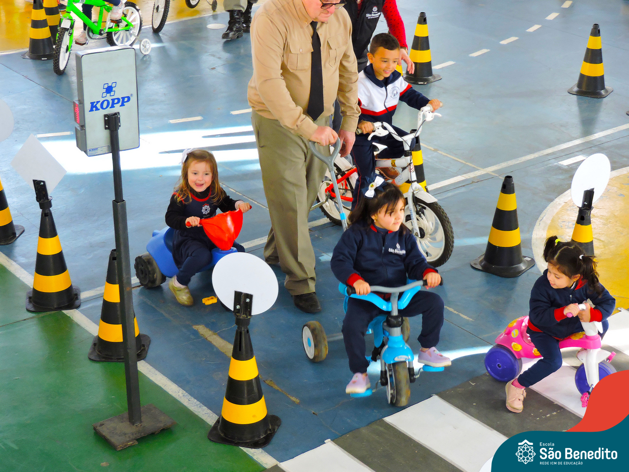 Os alunos da Educação Infantil até o 6º Ano, participaram de um circuito que simula o trânsito, que foi montado na quadra da Escola. Esse é o projeto “Escolinha de Trânsito”, do 2º BRBM.