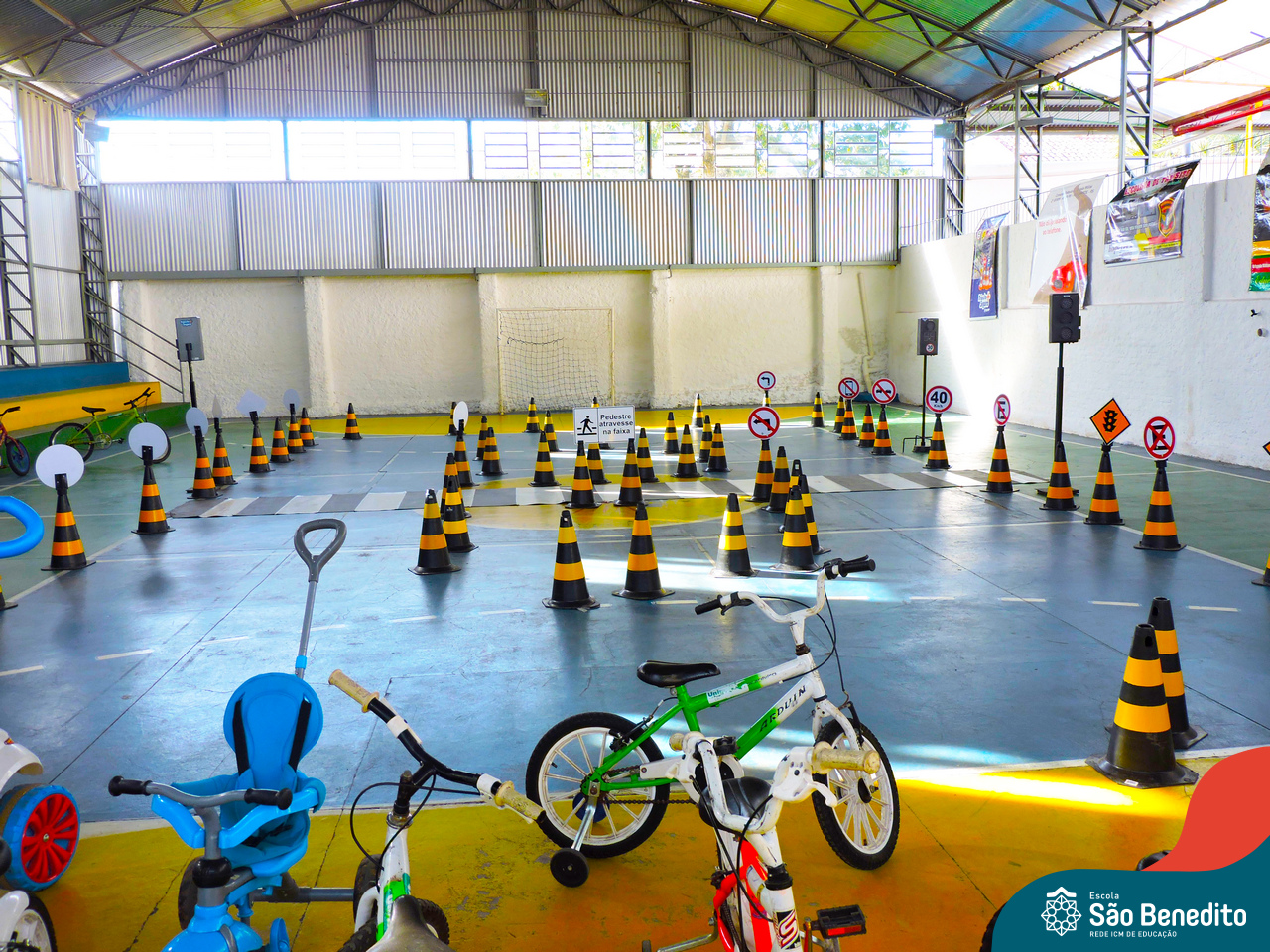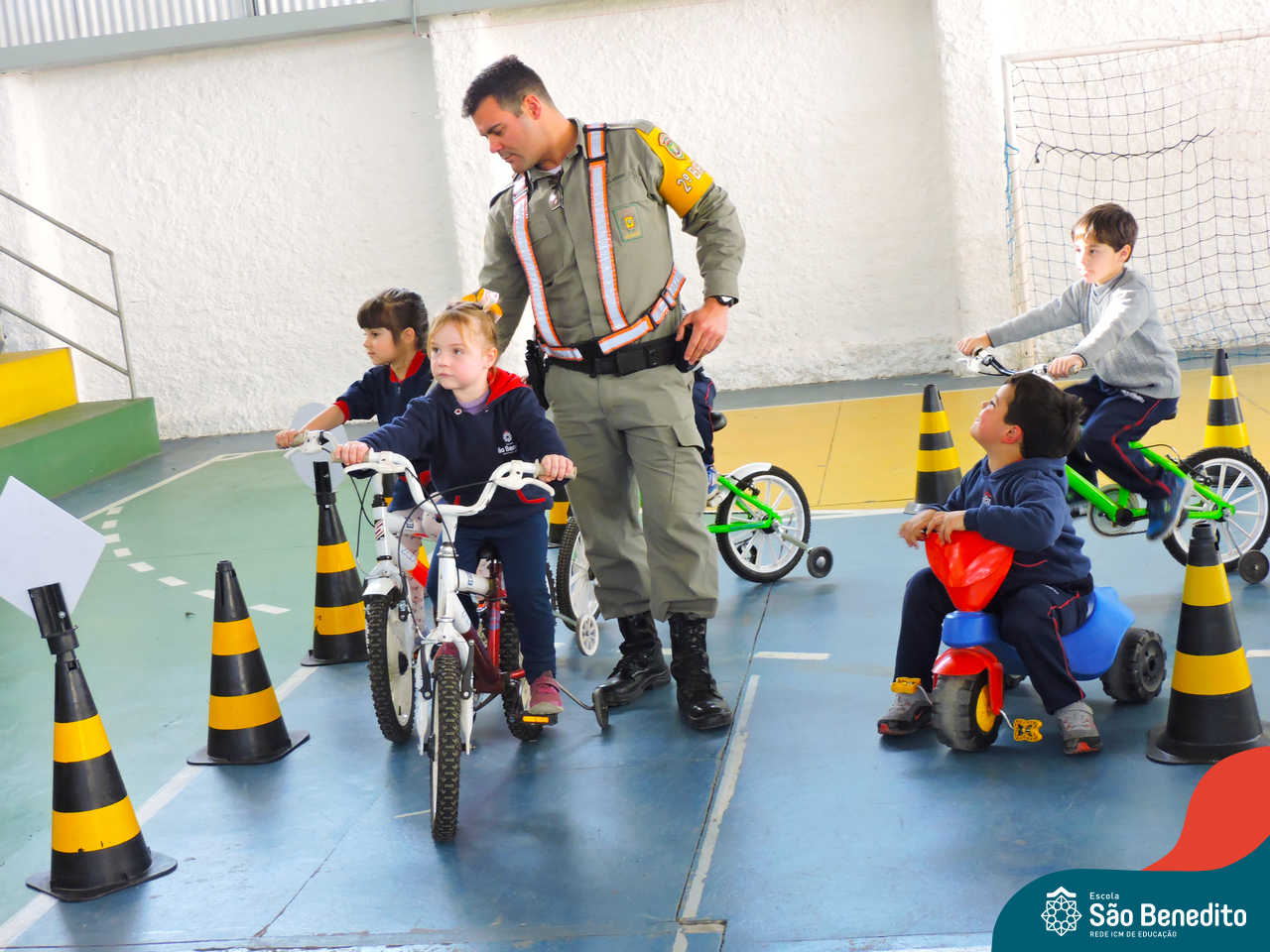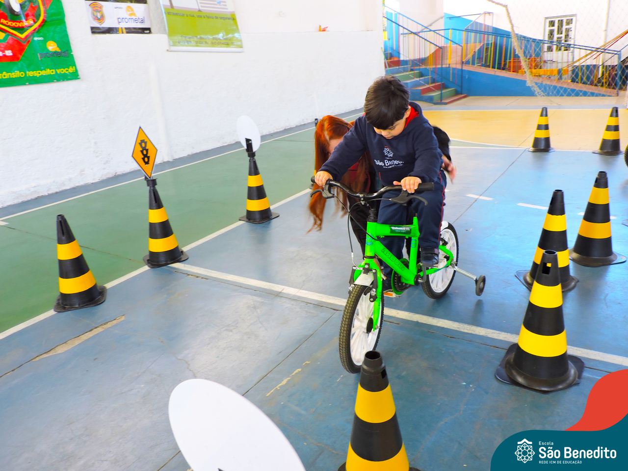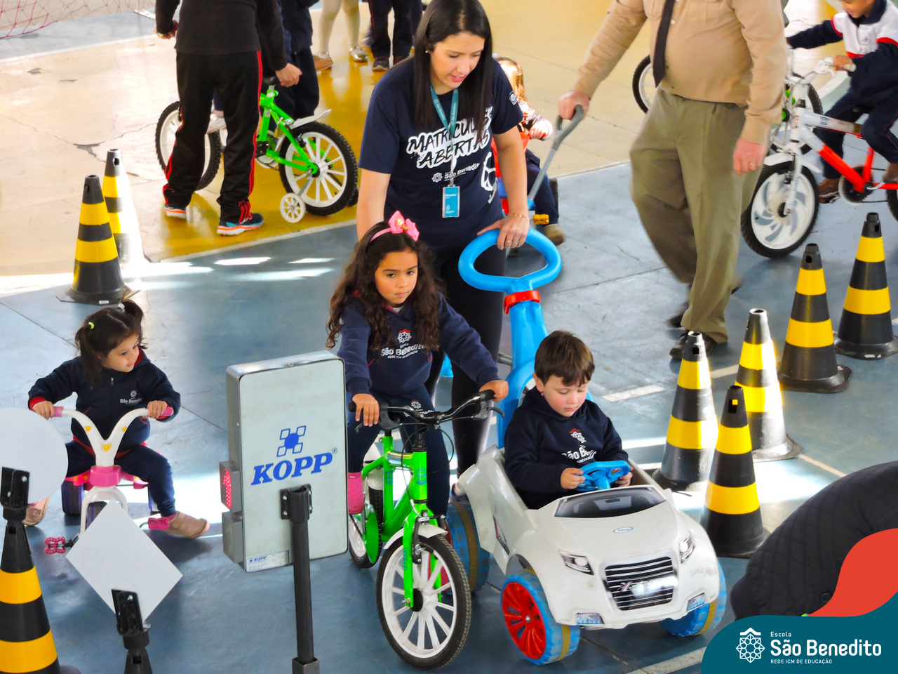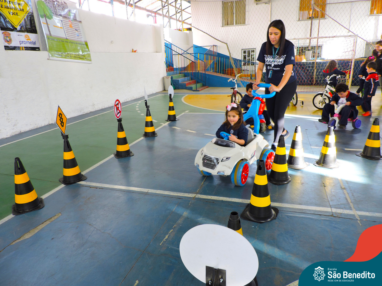 Os alunos da Educação Infantil até o 6º Ano, participaram de um circuito que simula o trânsito, que foi montado na quadra da Escola. Esse é o projeto “Escolinha de Trânsito”, do 2º BRBM.