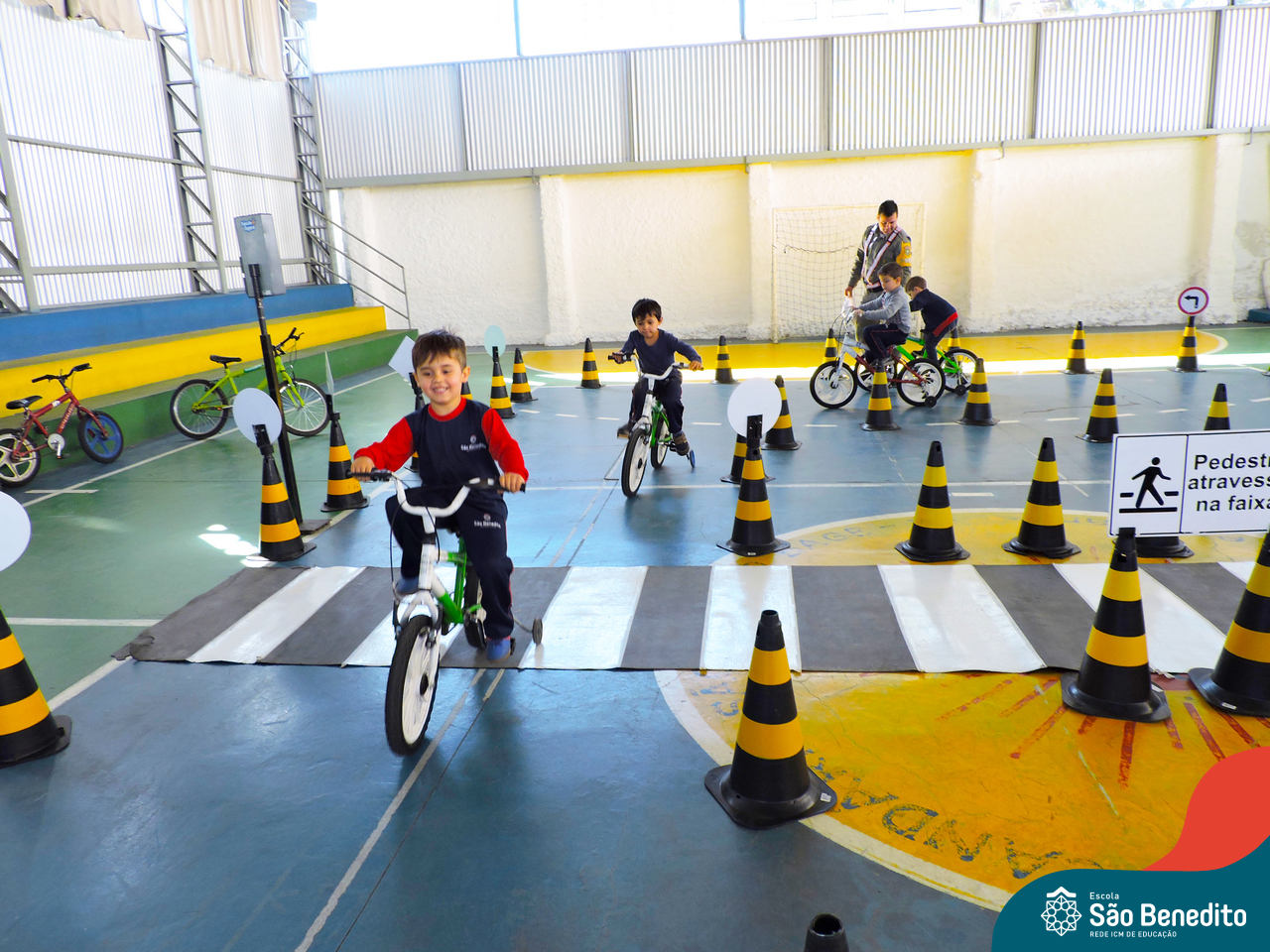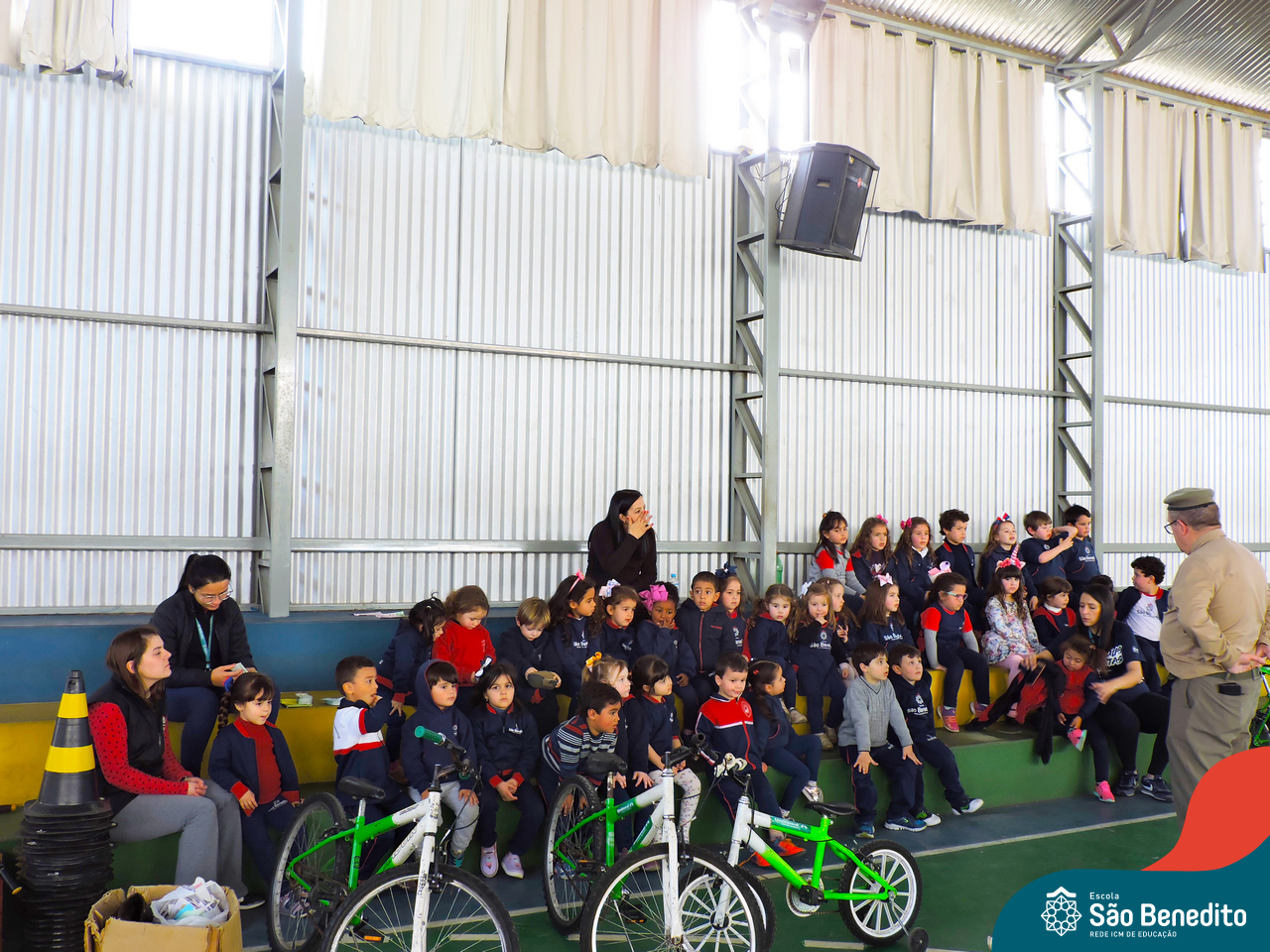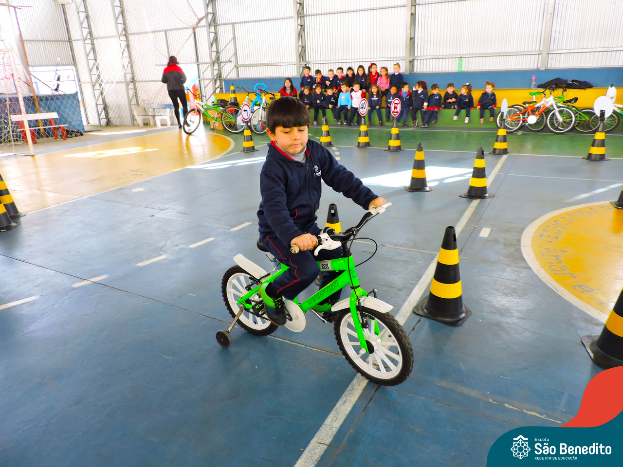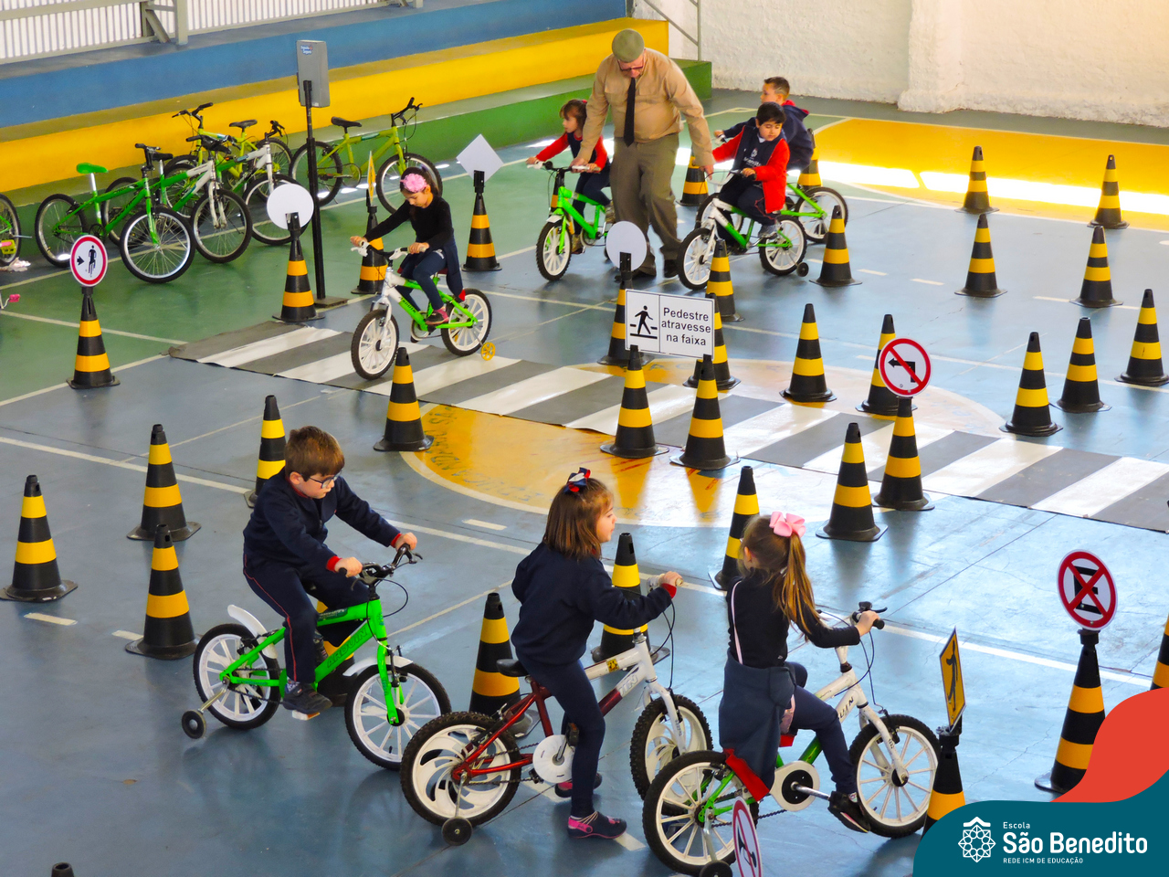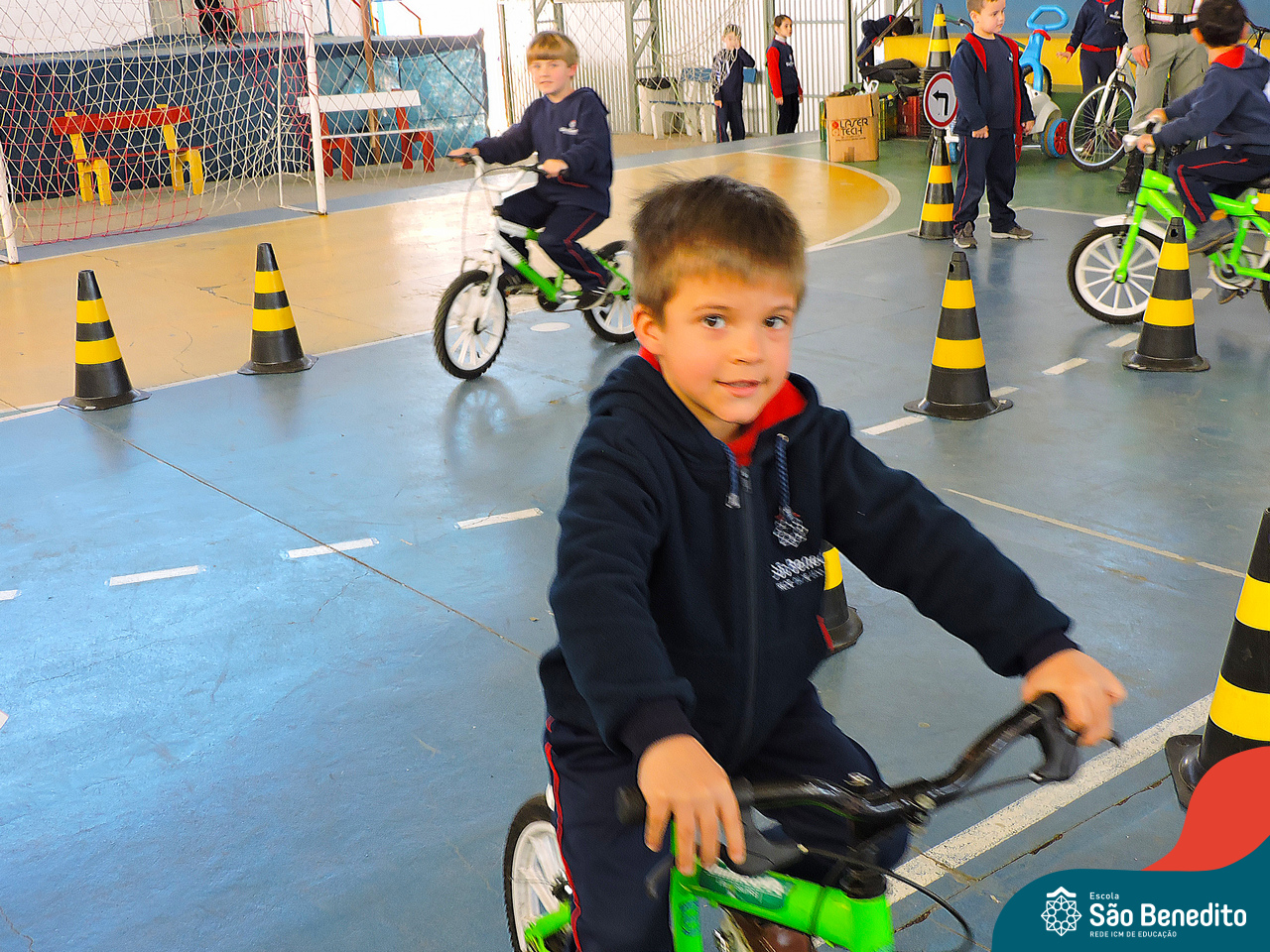Os alunos da Educação Infantil até o 6º Ano, participaram de um circuito que simula o trânsito, que foi montado na quadra da Escola. Esse é o projeto “Escolinha de Trânsito”, do 2º BRBM.