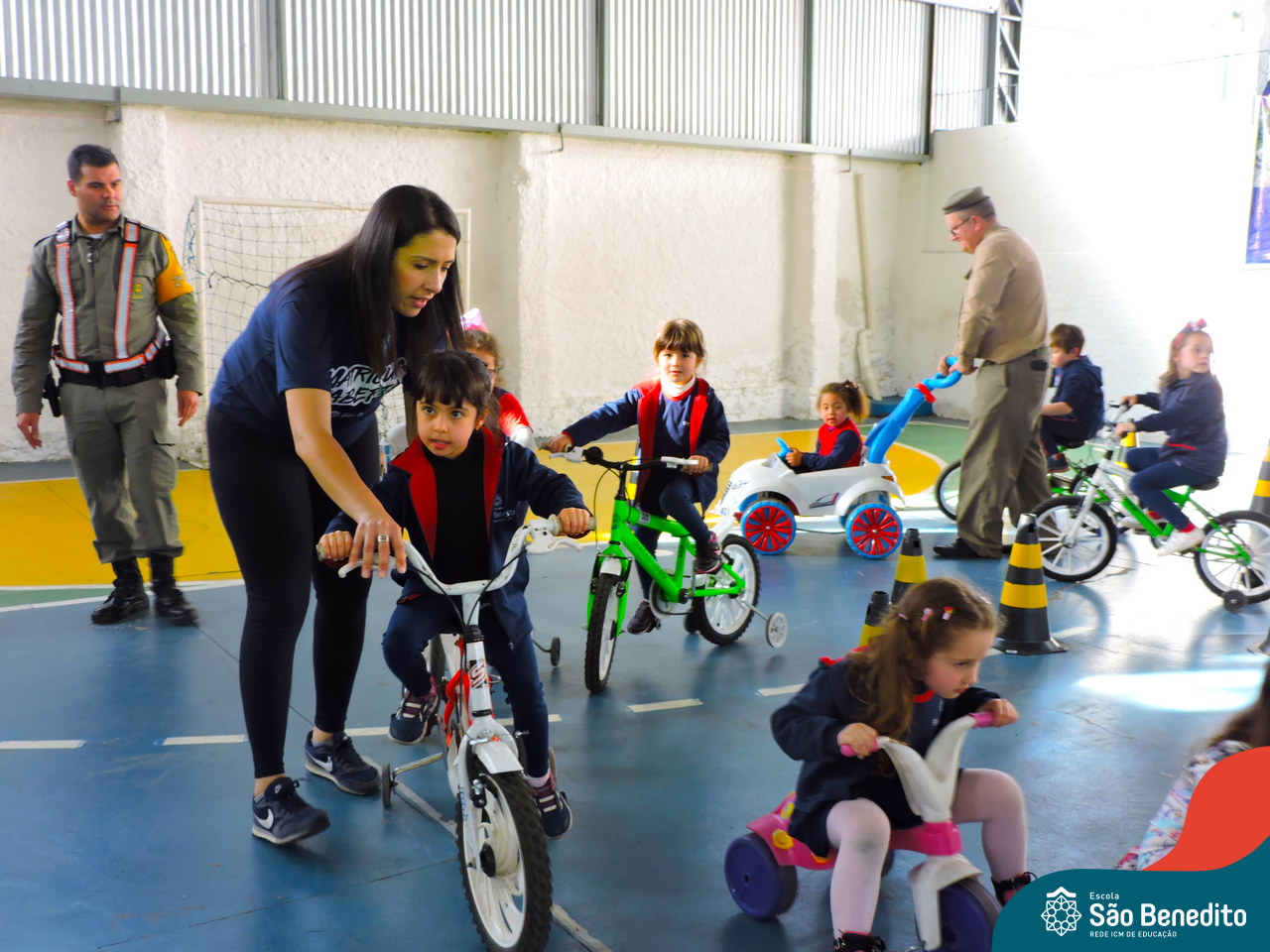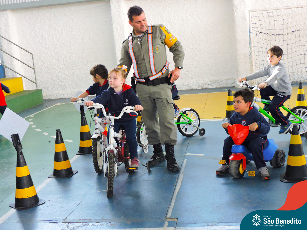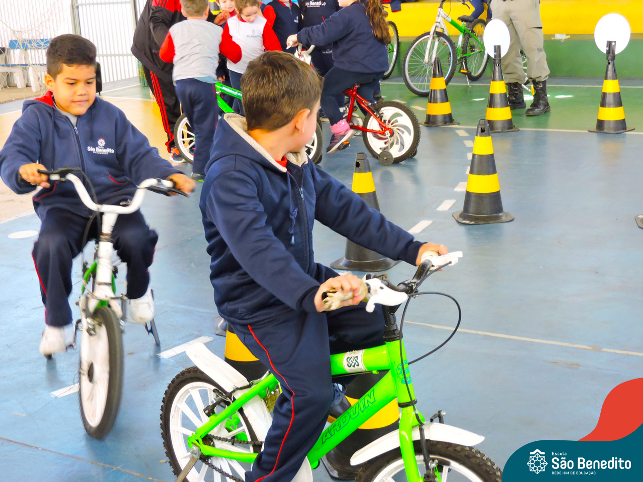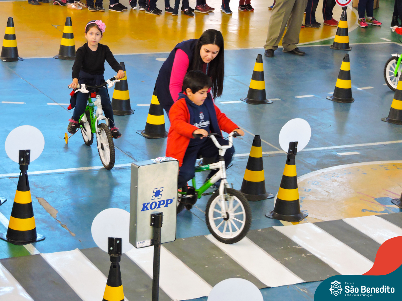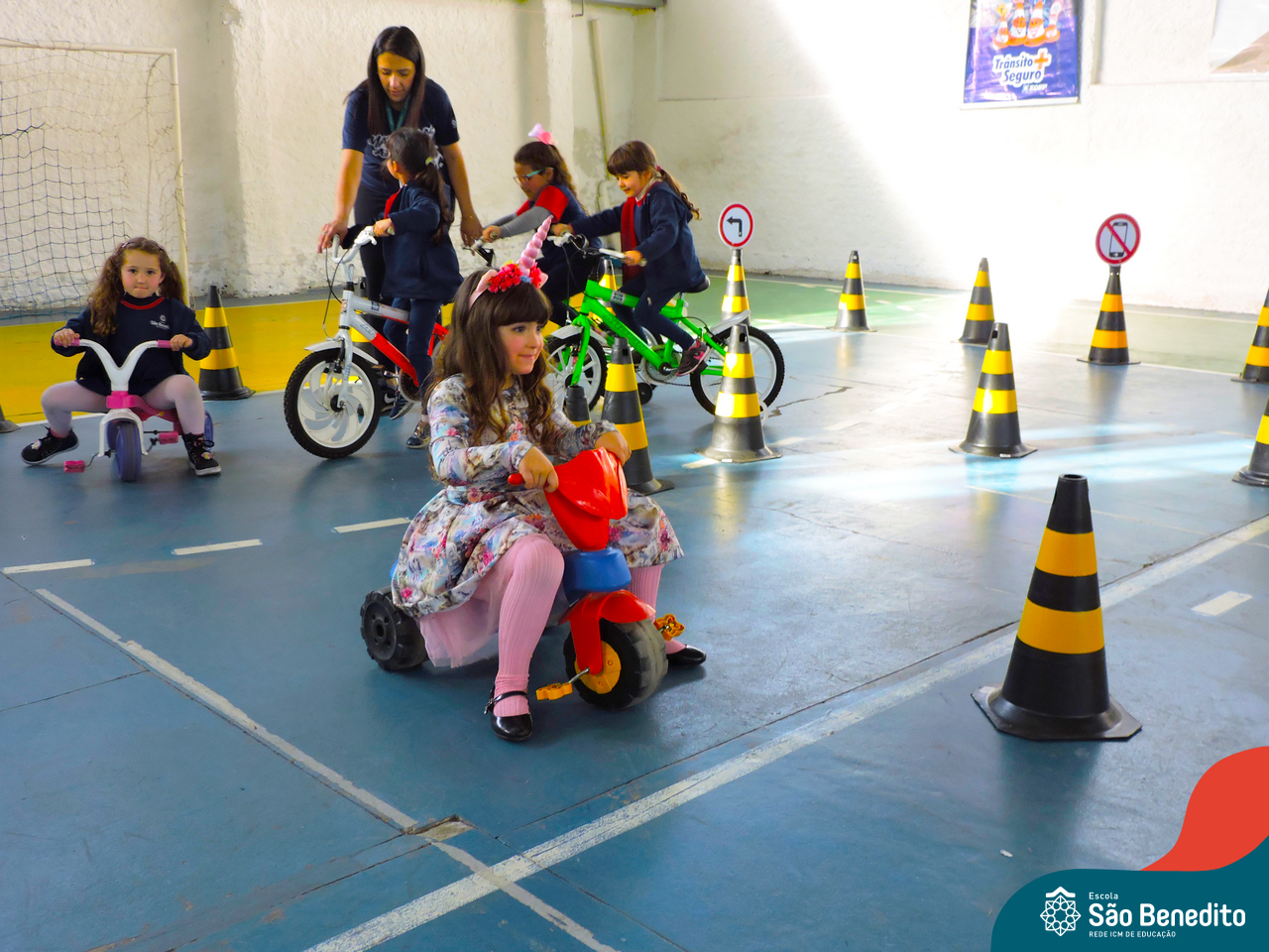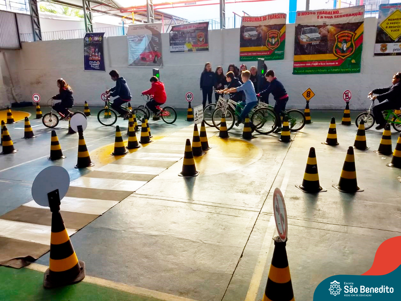 Os alunos da Educação Infantil até o 6º Ano, participaram de um circuito que simula o trânsito, que foi montado na quadra da Escola. Esse é o projeto “Escolinha de Trânsito”, do 2º BRBM.