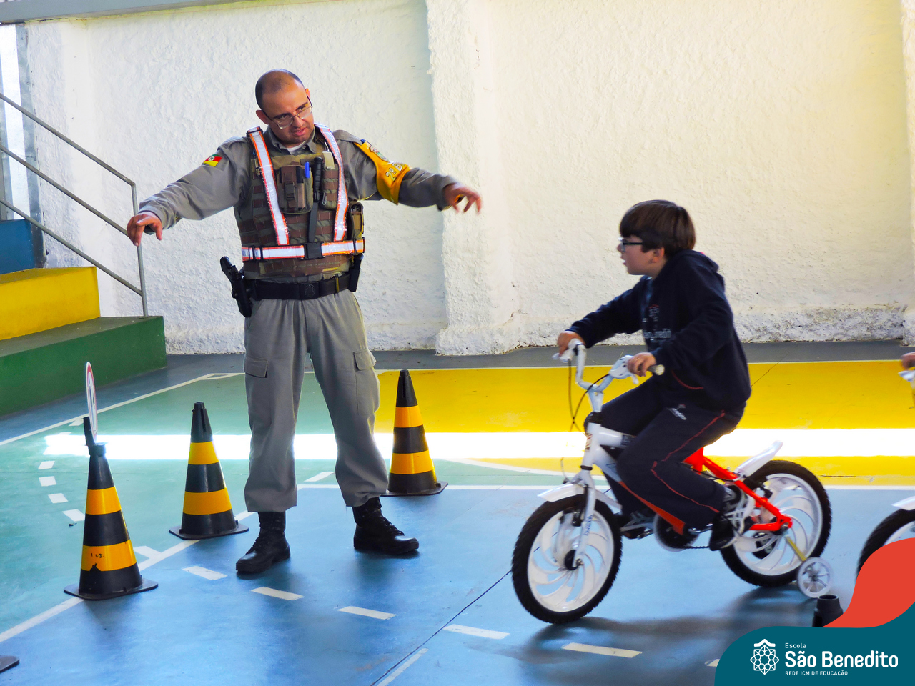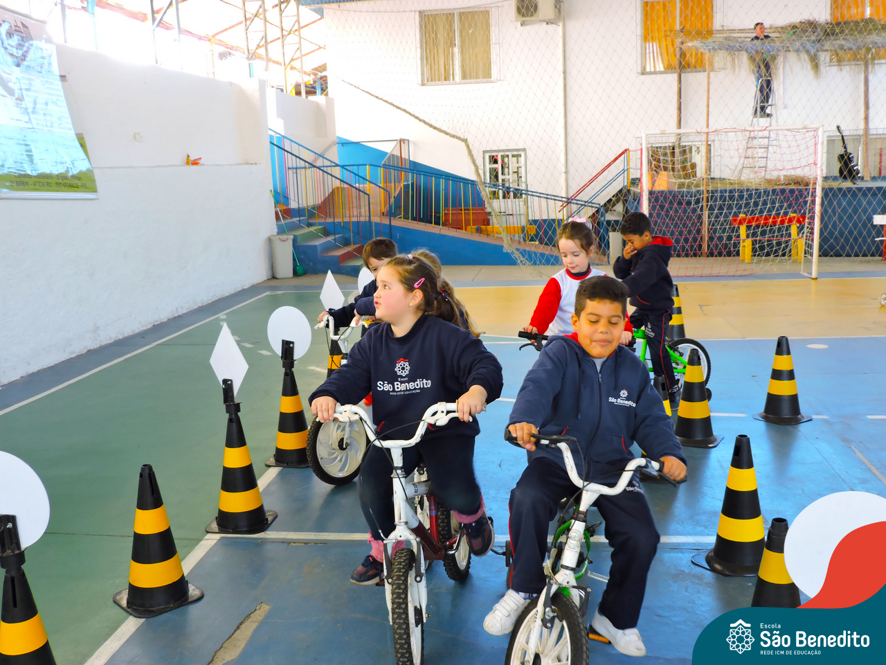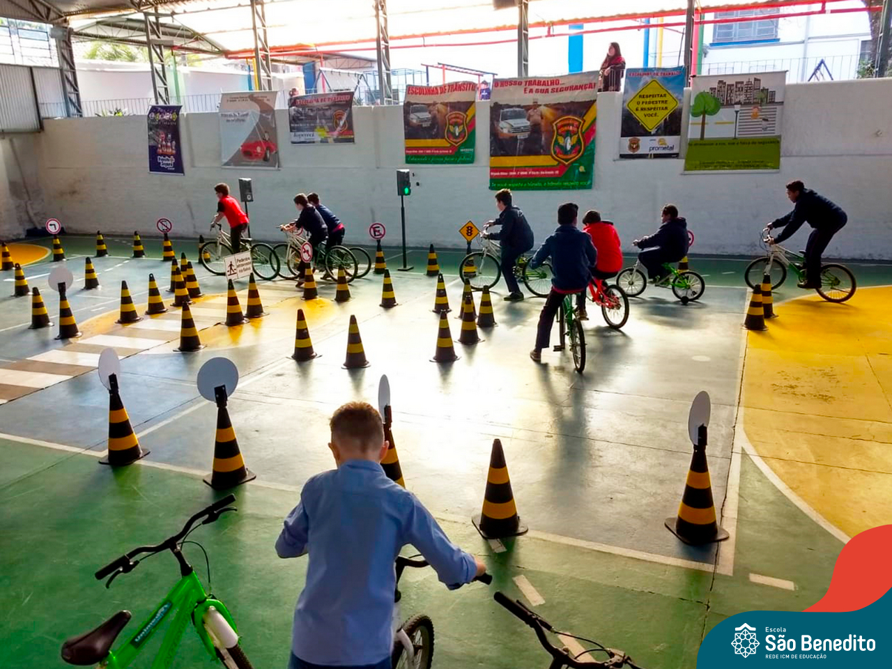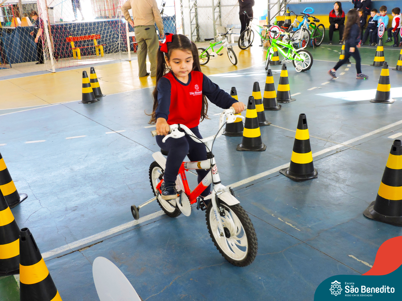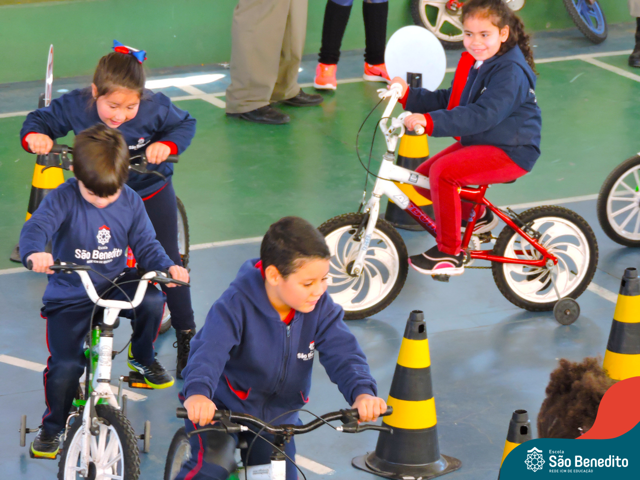 Os alunos da Educação Infantil até o 6º Ano, participaram de um circuito que simula o trânsito, que foi montado na quadra da Escola. Esse é o projeto “Escolinha de Trânsito”, do 2º BRBM.