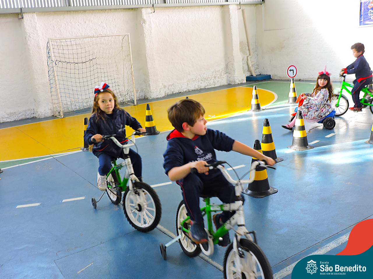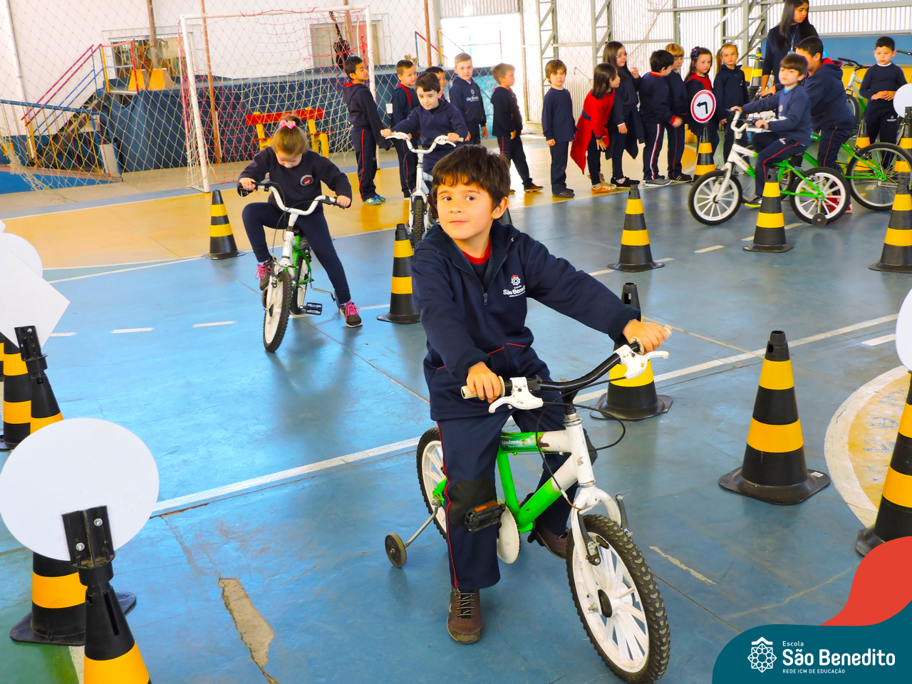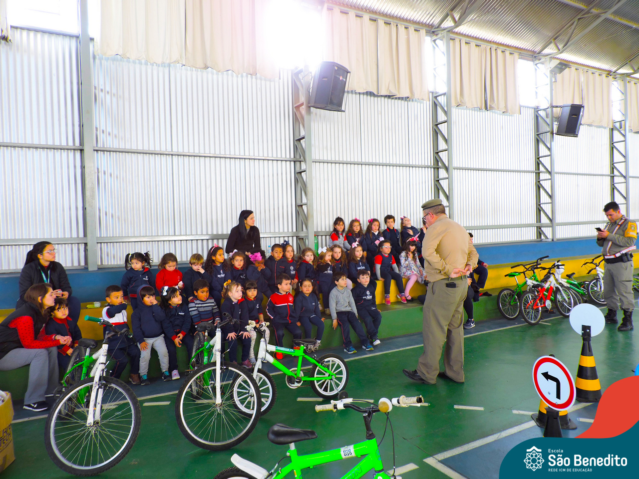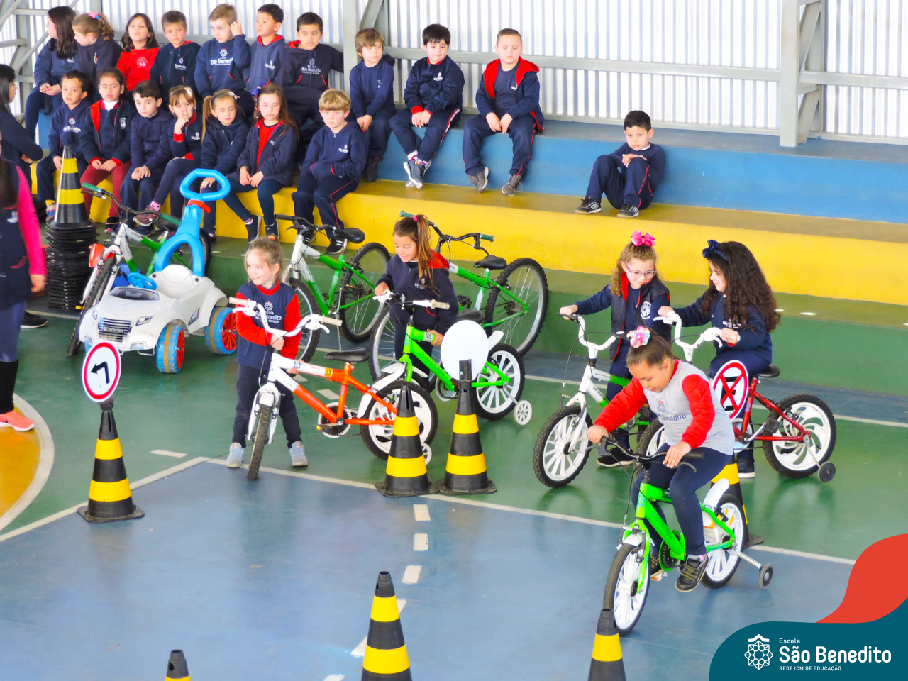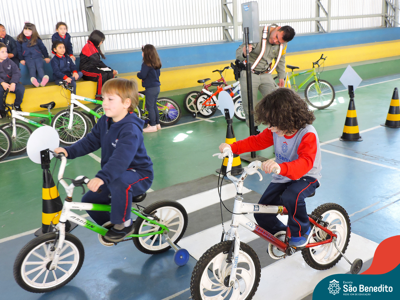 Os alunos da Educação Infantil até o 6º Ano, participaram de um circuito que simula o trânsito, que foi montado na quadra da Escola. Esse é o projeto “Escolinha de Trânsito”, do 2º BRBM.