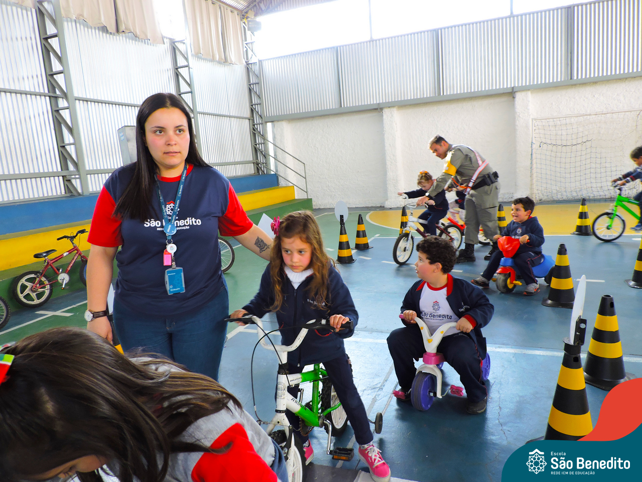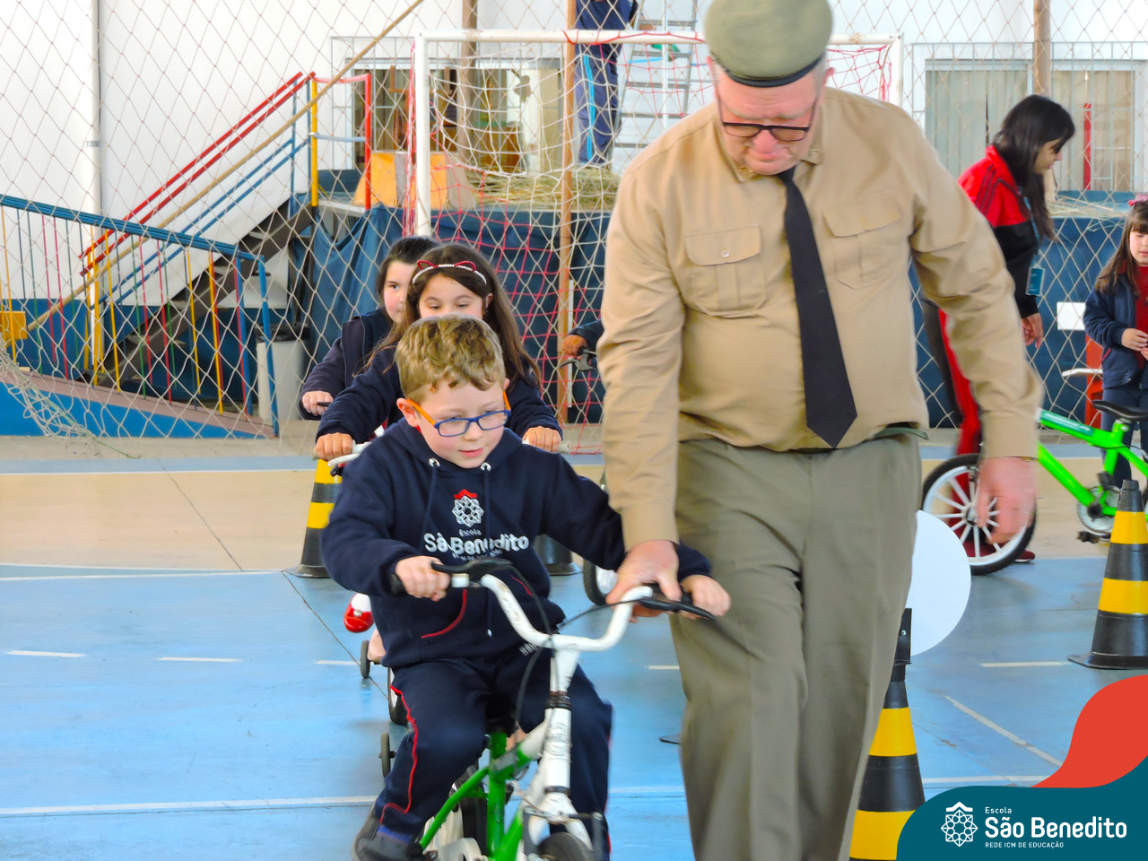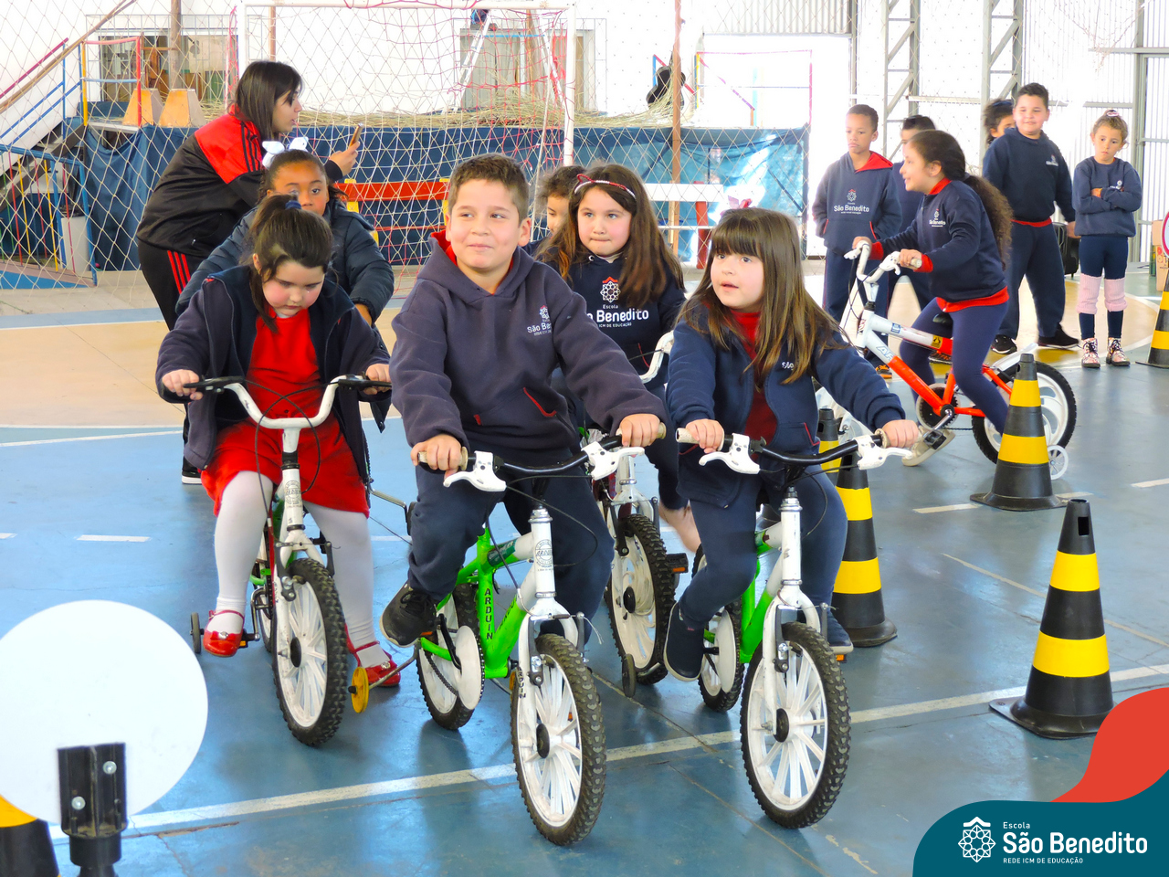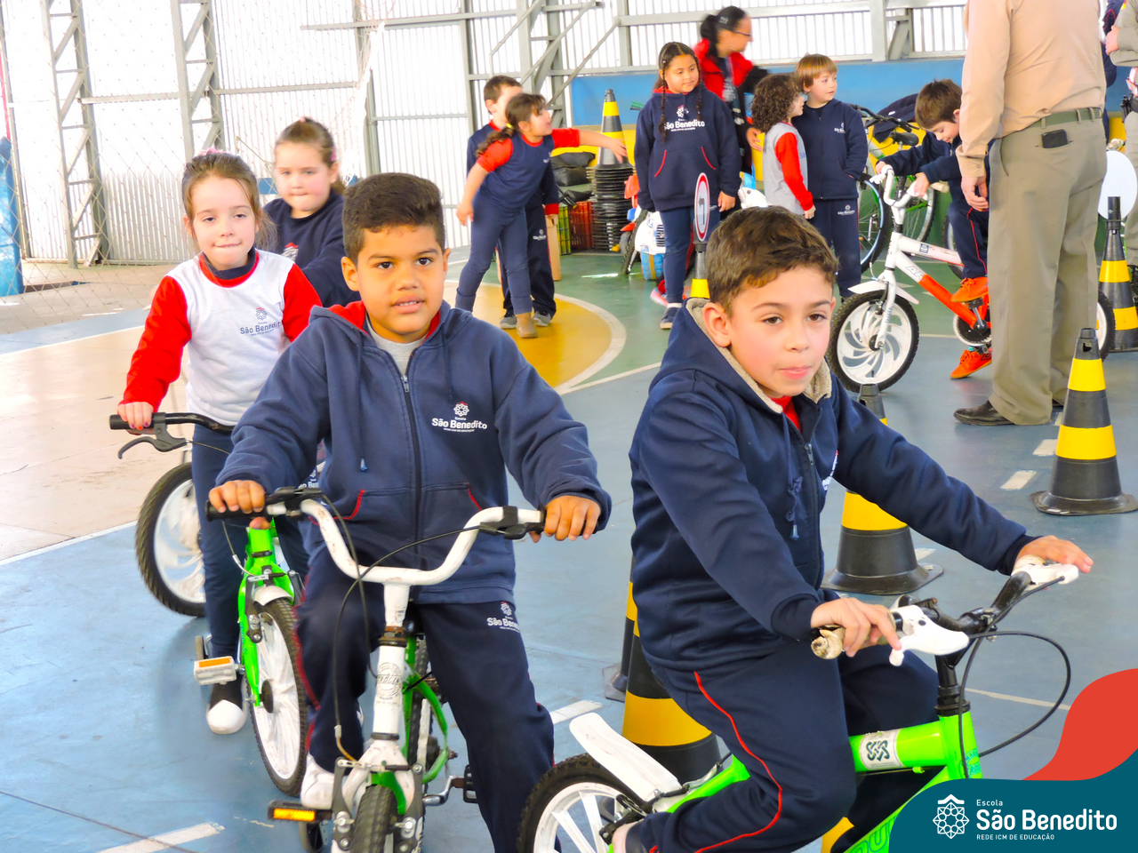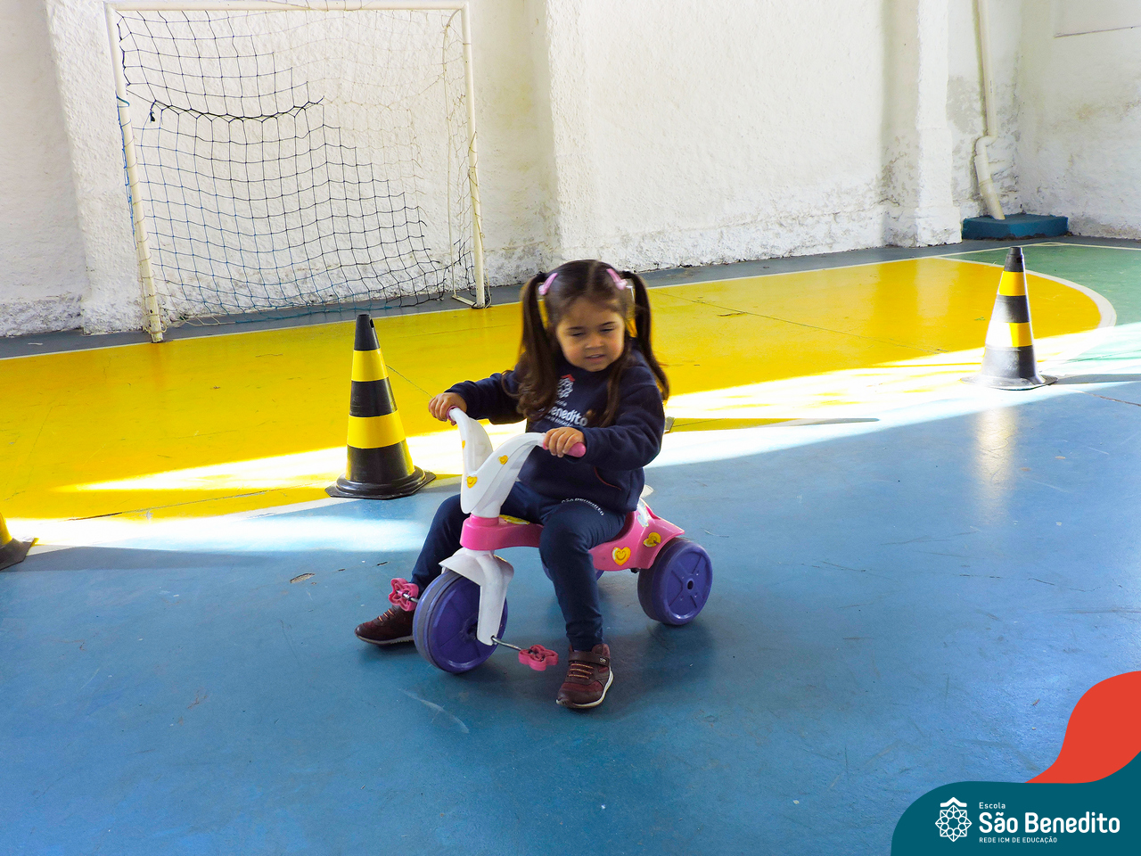 Os alunos da Educação Infantil até o 6º Ano, participaram de um circuito que simula o trânsito, que foi montado na quadra da Escola. Esse é o projeto “Escolinha de Trânsito”, do 2º BRBM.