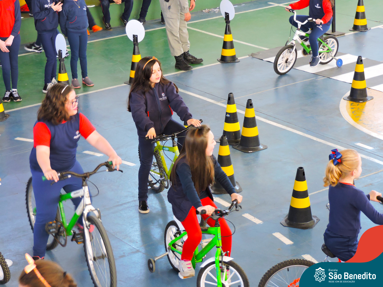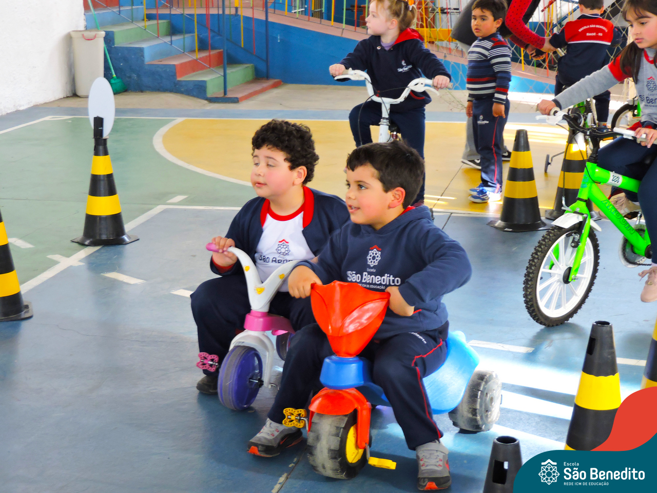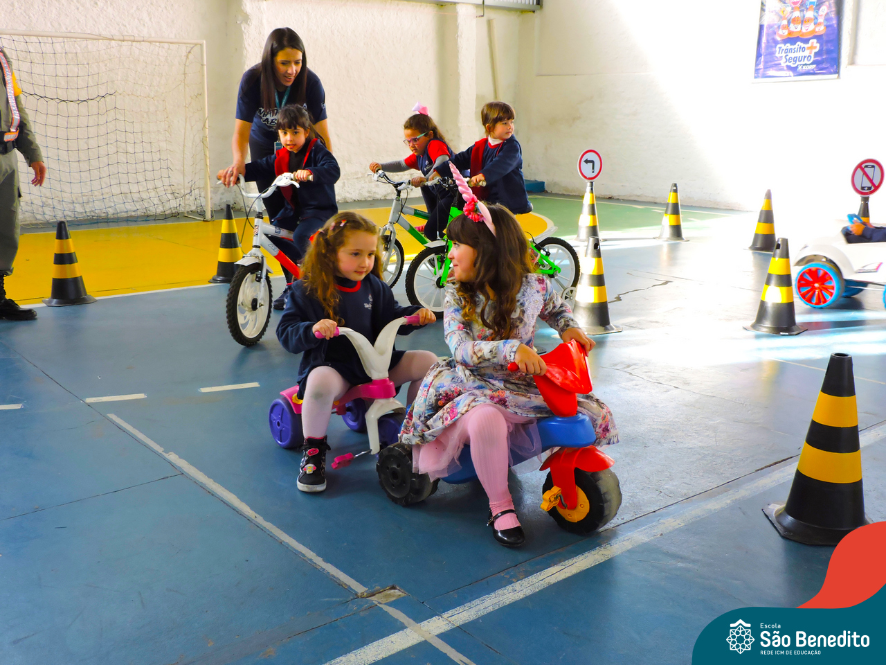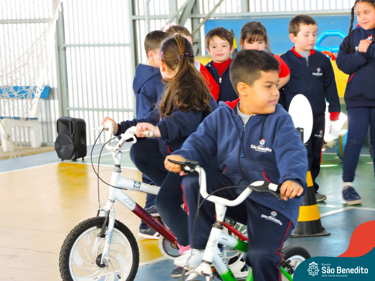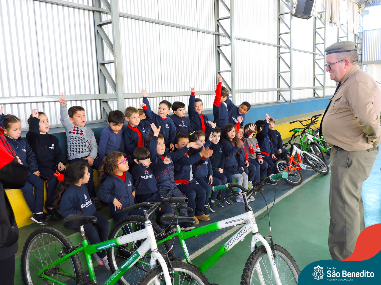 Os alunos da Educação Infantil até o 6º Ano, participaram de um circuito que simula o trânsito, que foi montado na quadra da Escola. Esse é o projeto “Escolinha de Trânsito”, do 2º BRBM.
