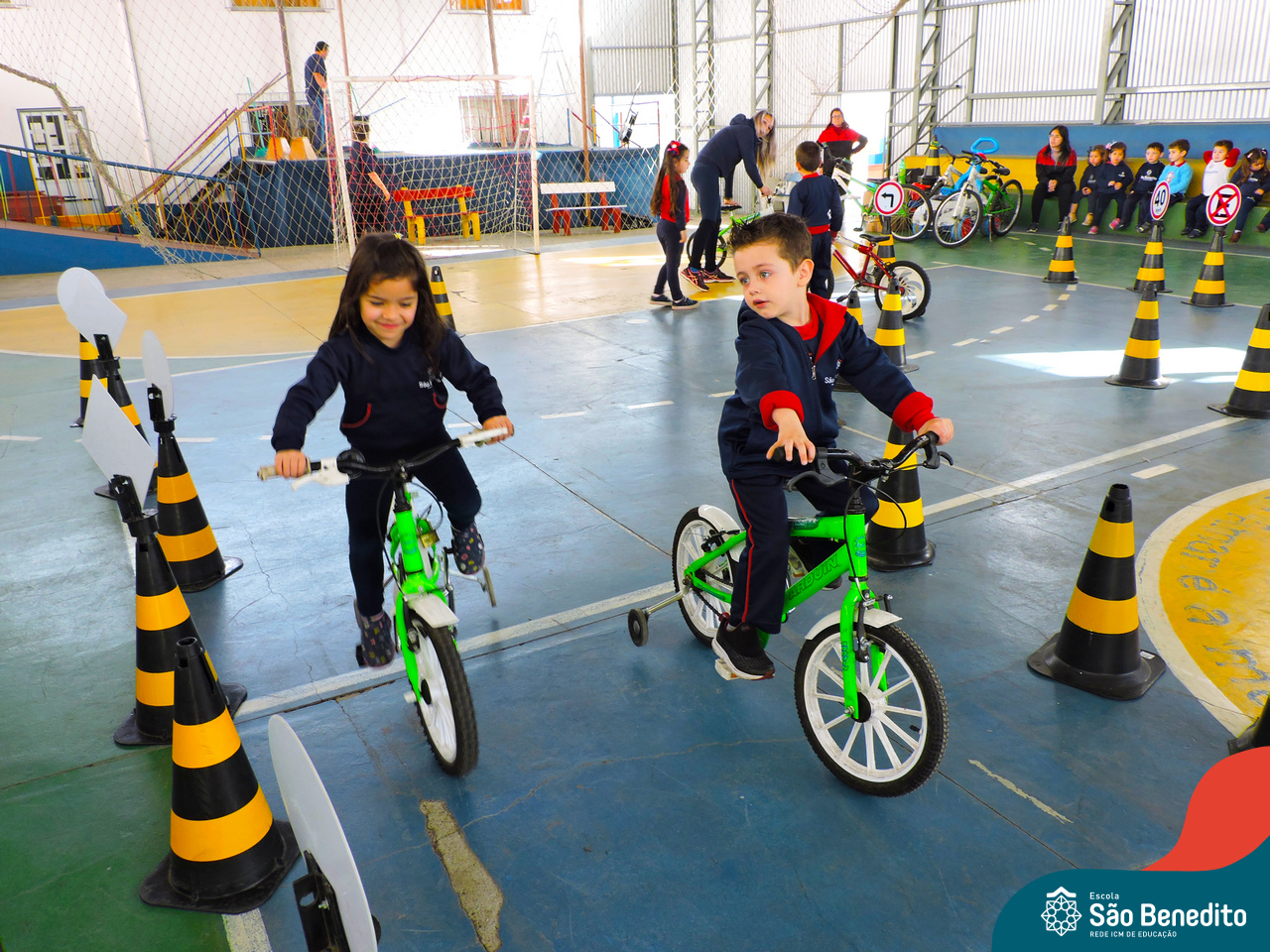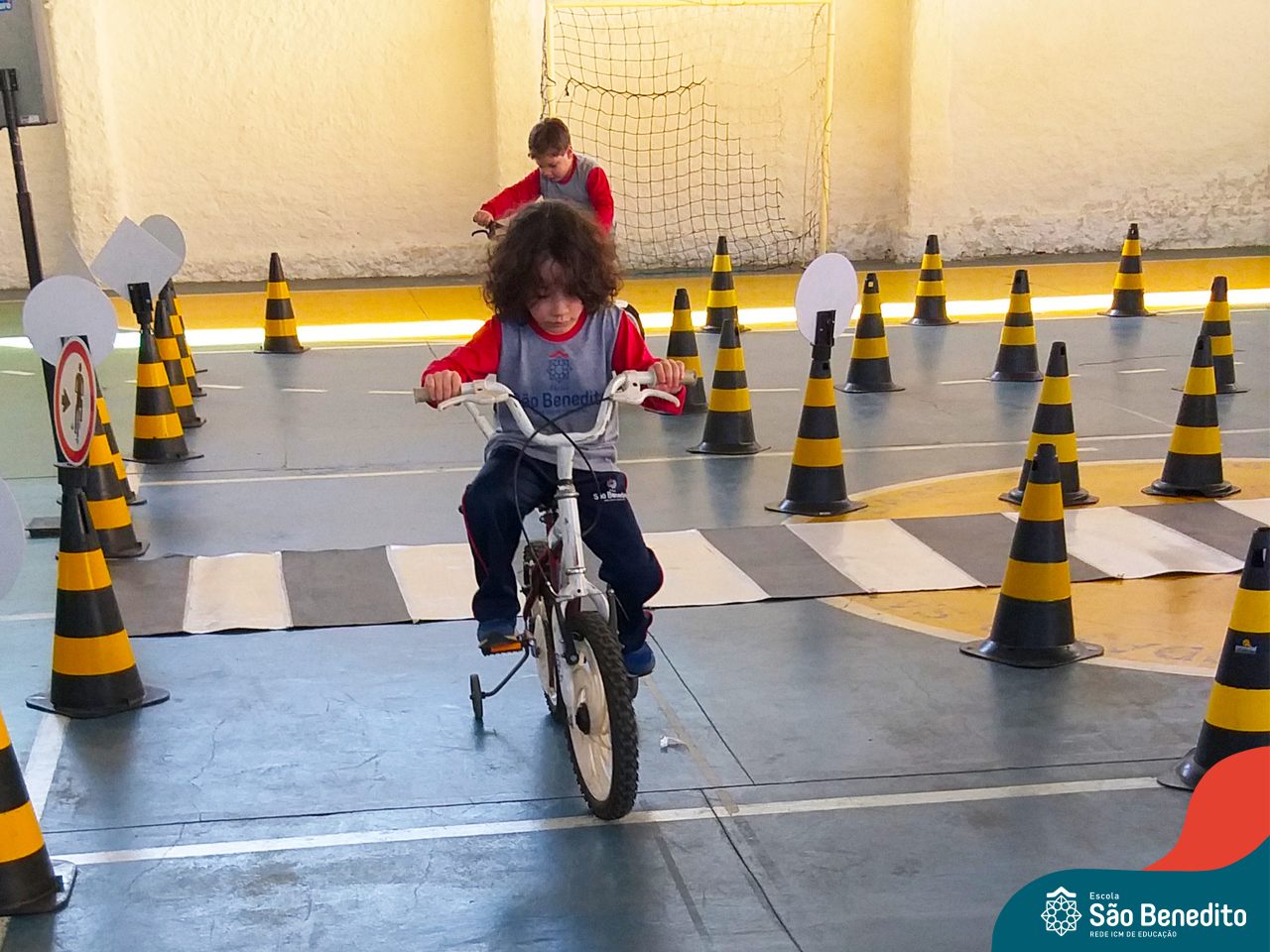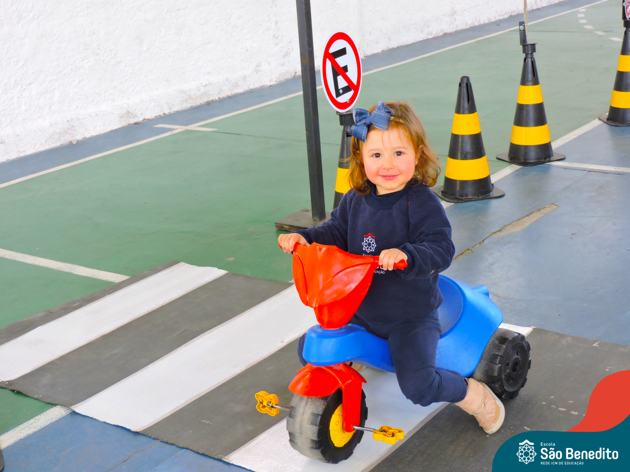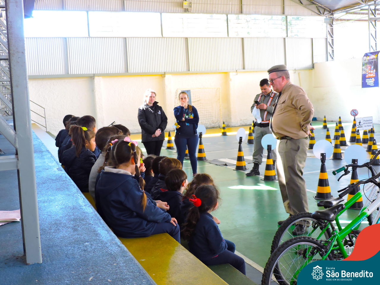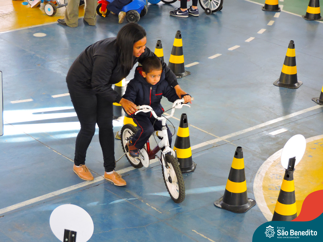 Os alunos da Educação Infantil até o 6º Ano, participaram de um circuito que simula o trânsito, que foi montado na quadra da Escola. Esse é o projeto “Escolinha de Trânsito”, do 2º BRBM.