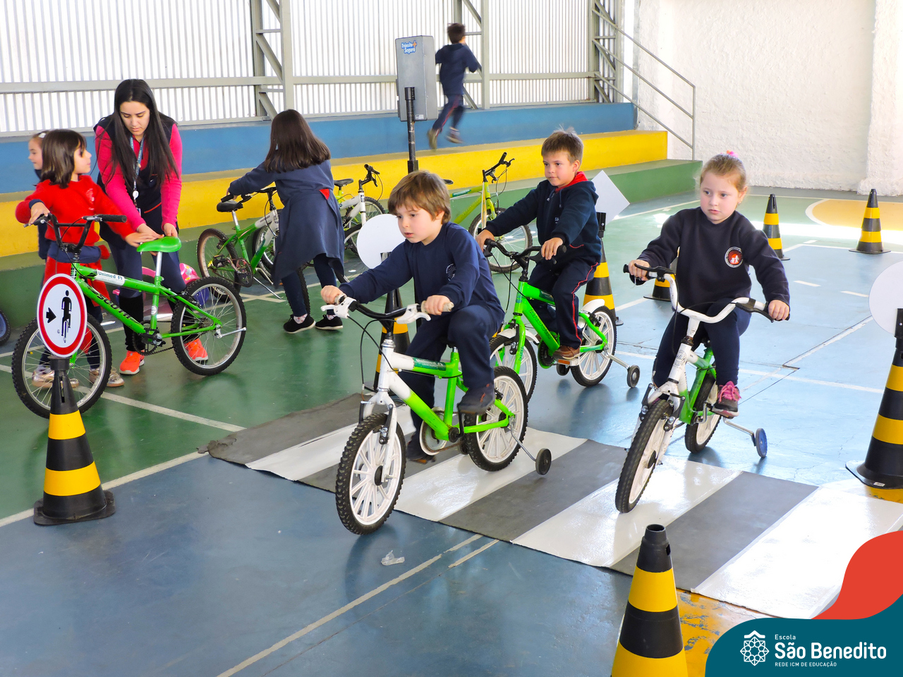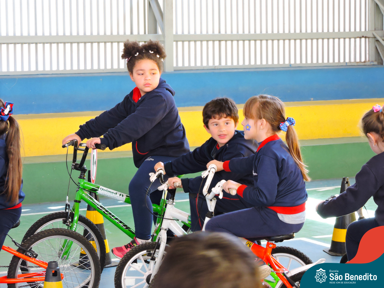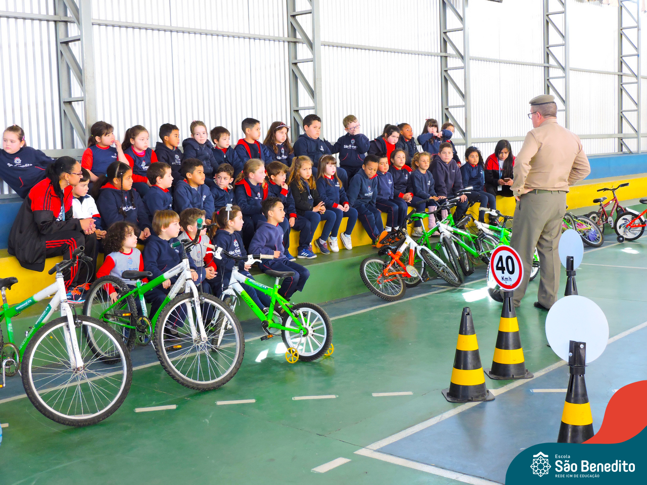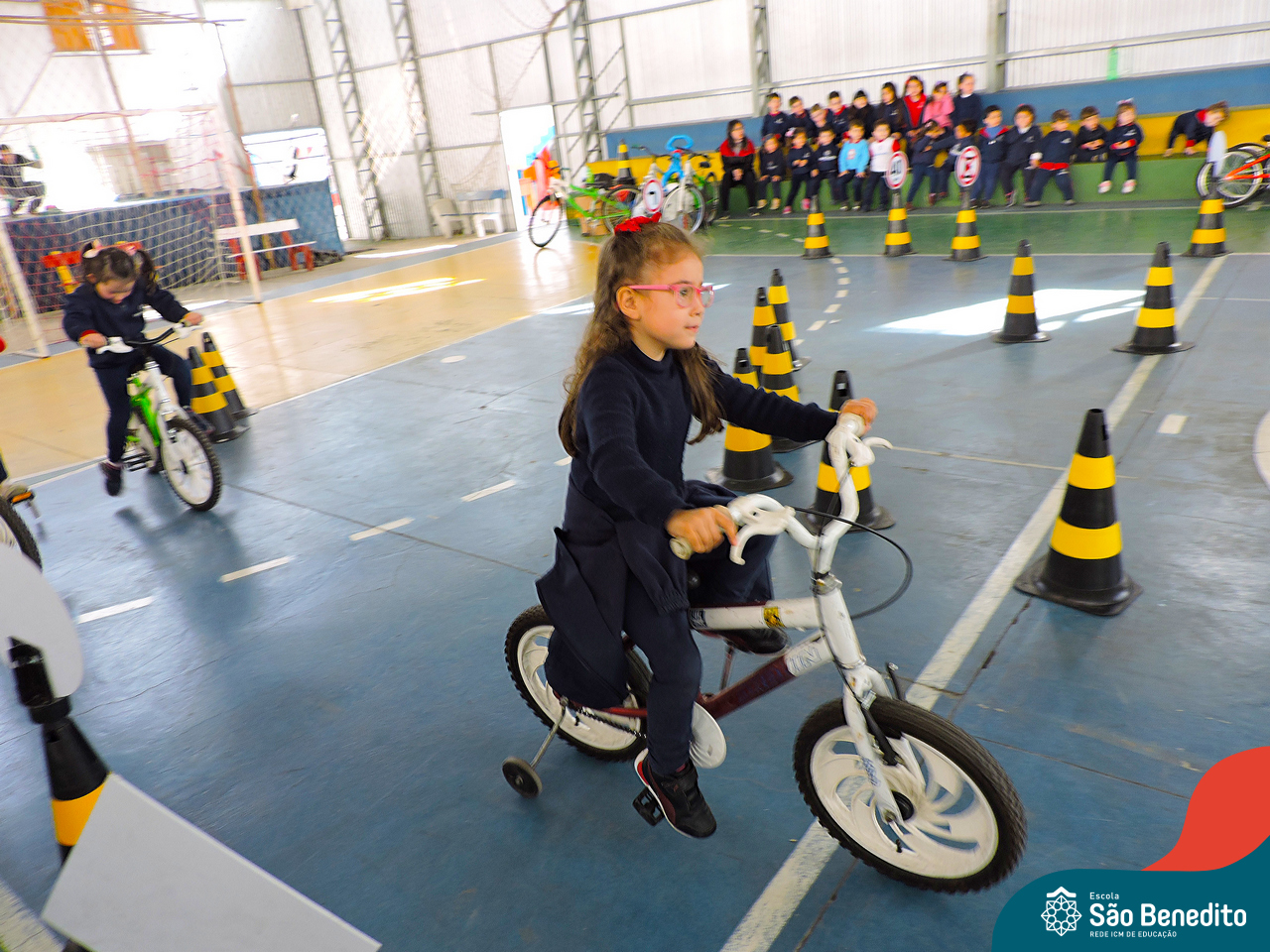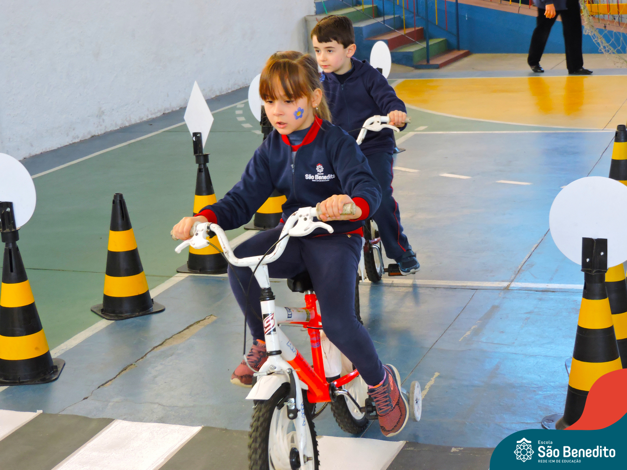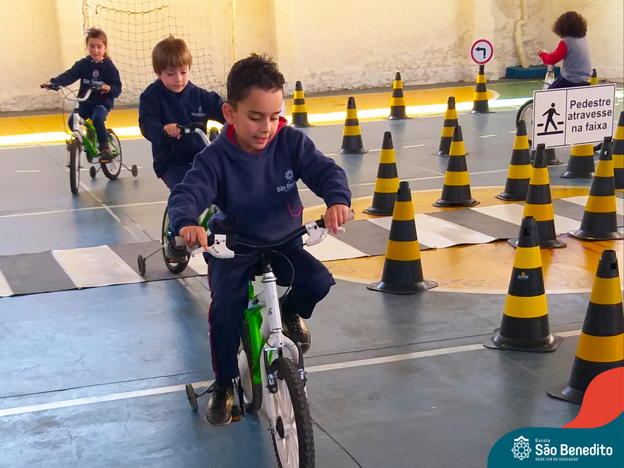 Os alunos da Educação Infantil até o 6º Ano, participaram de um circuito que simula o trânsito, que foi montado na quadra da Escola. Esse é o projeto “Escolinha de Trânsito”, do 2º BRBM.