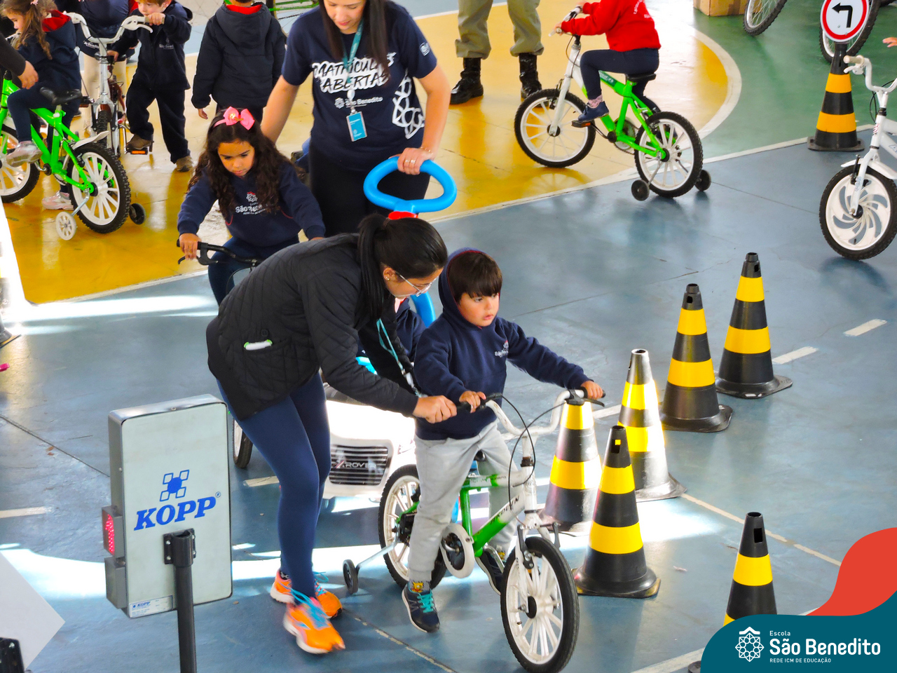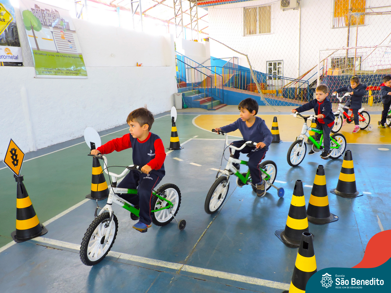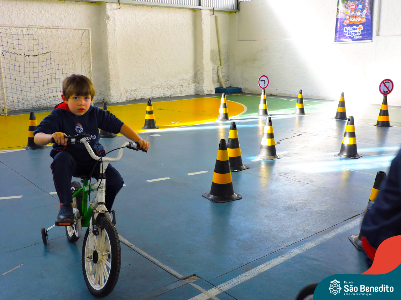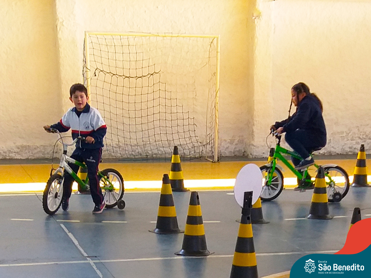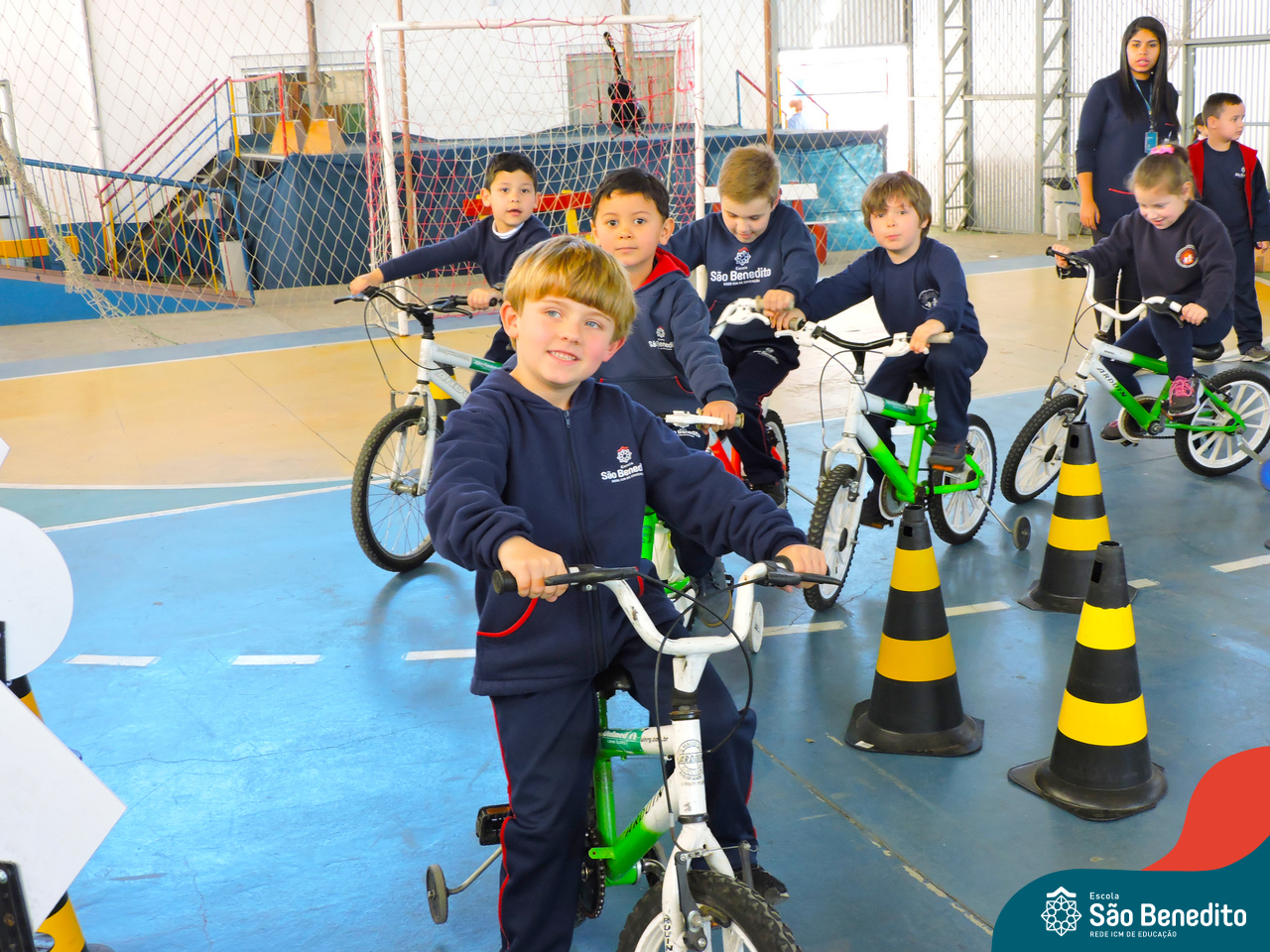 Os alunos da Educação Infantil até o 6º Ano, participaram de um circuito que simula o trânsito, que foi montado na quadra da Escola. Esse é o projeto “Escolinha de Trânsito”, do 2º BRBM.