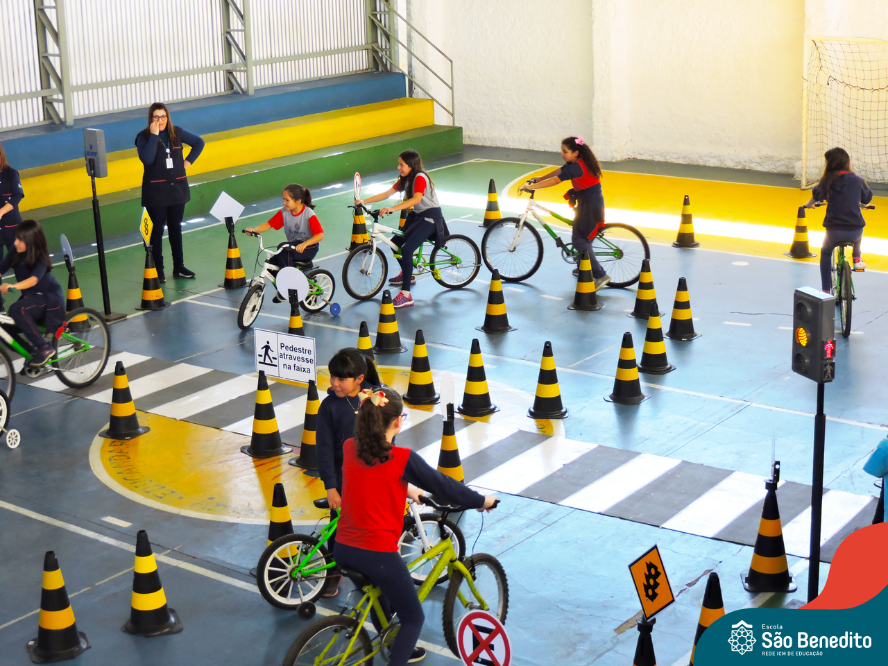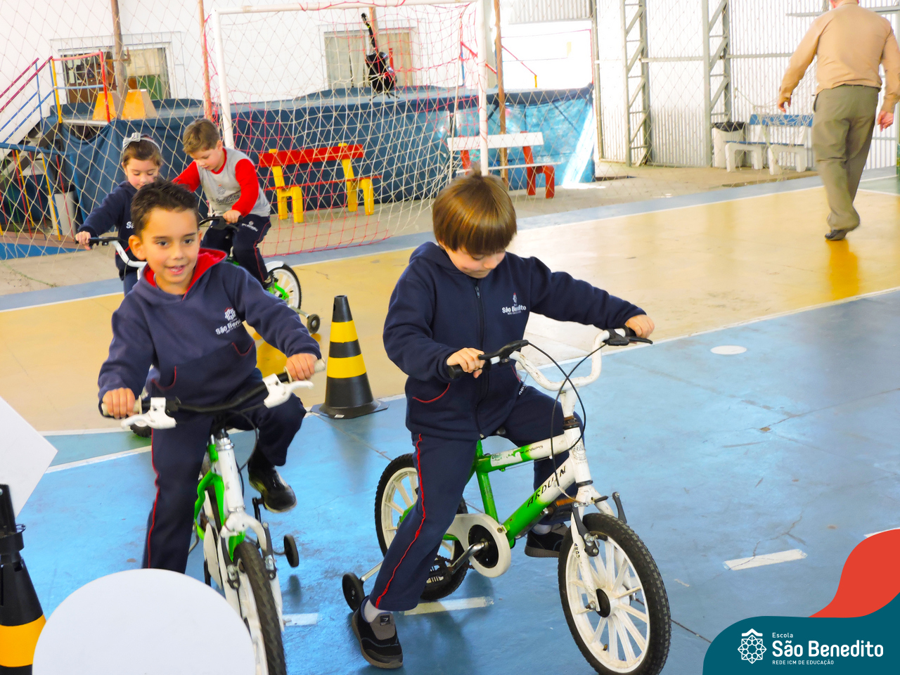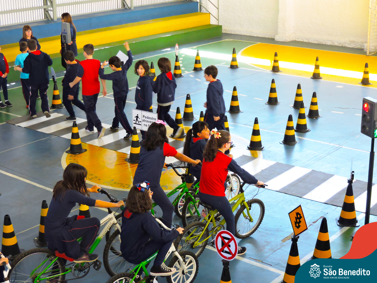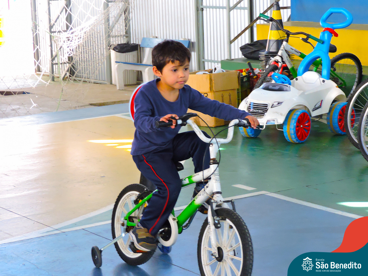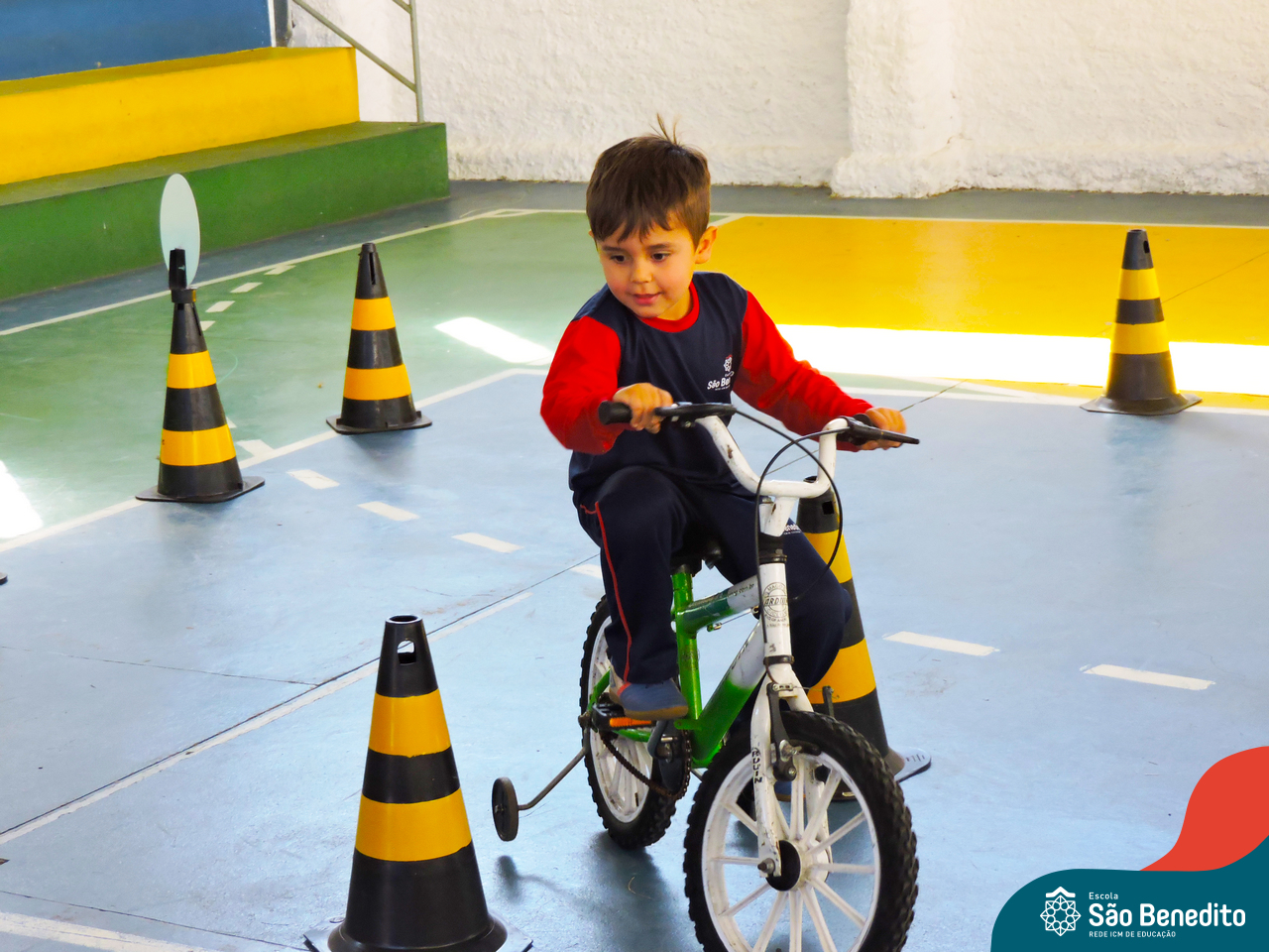 Os alunos da Educação Infantil até o 6º Ano, participaram de um circuito que simula o trânsito, que foi montado na quadra da Escola. Esse é o projeto “Escolinha de Trânsito”, do 2º BRBM.