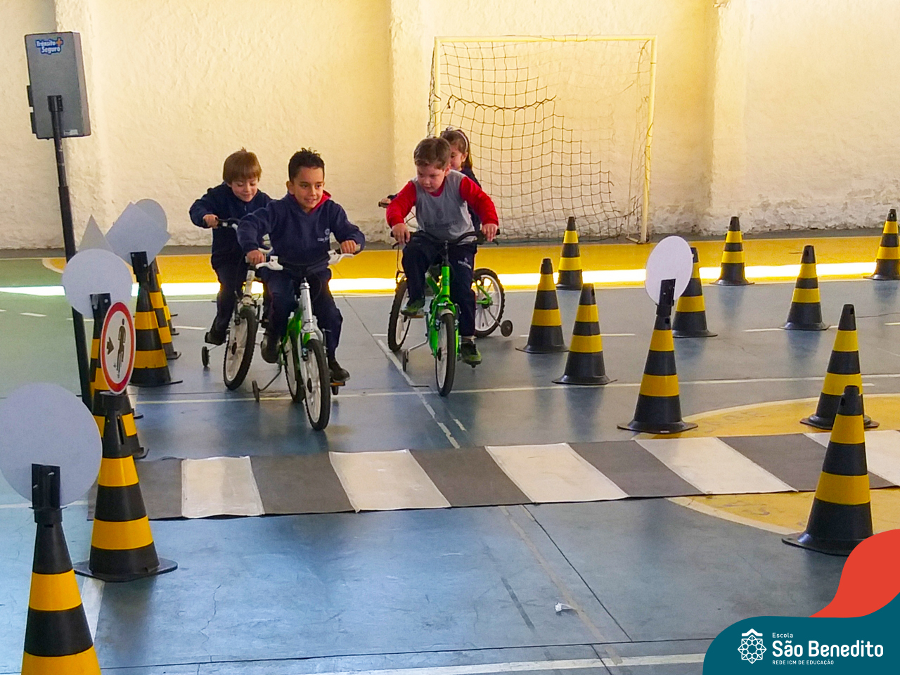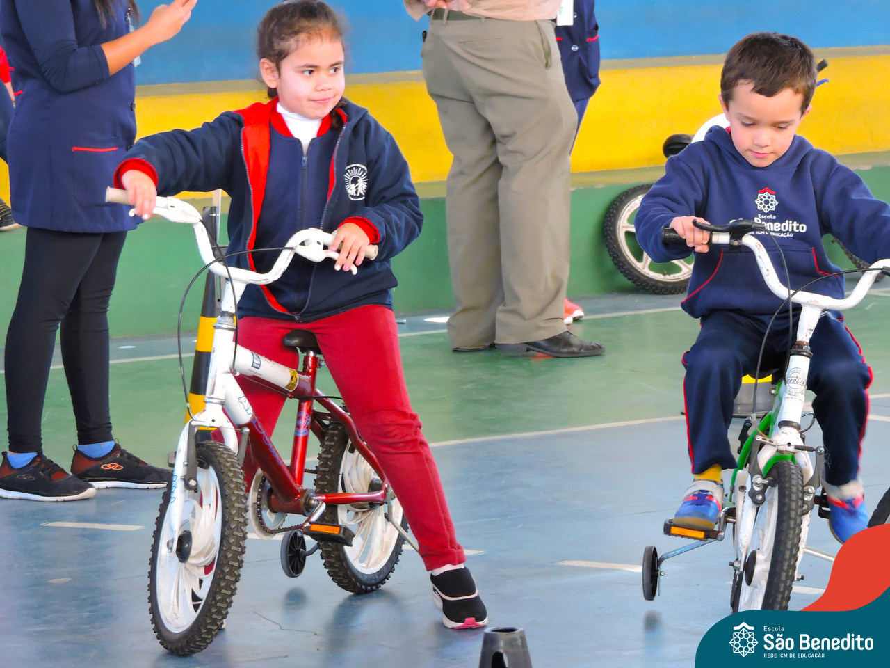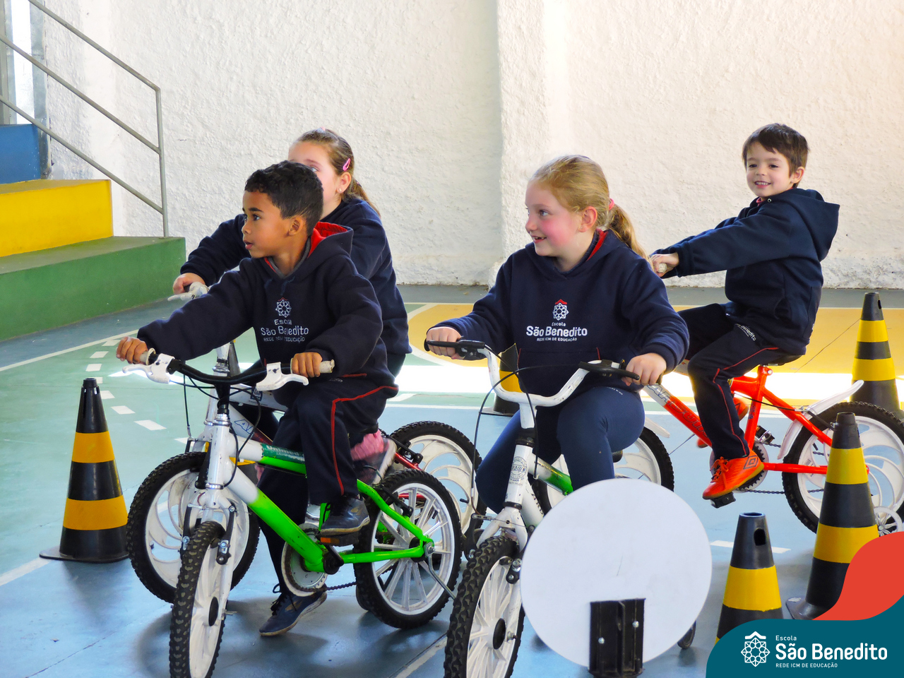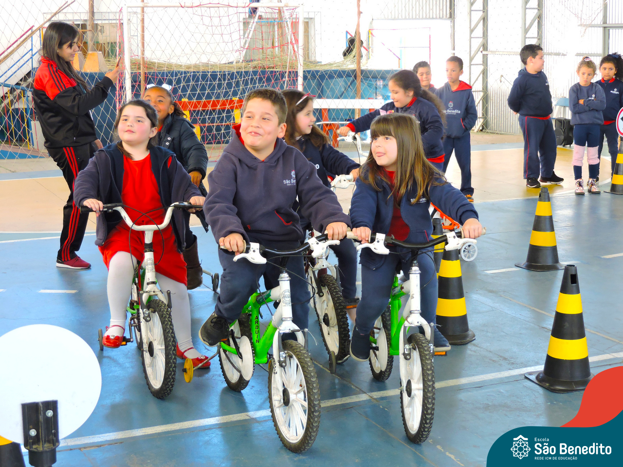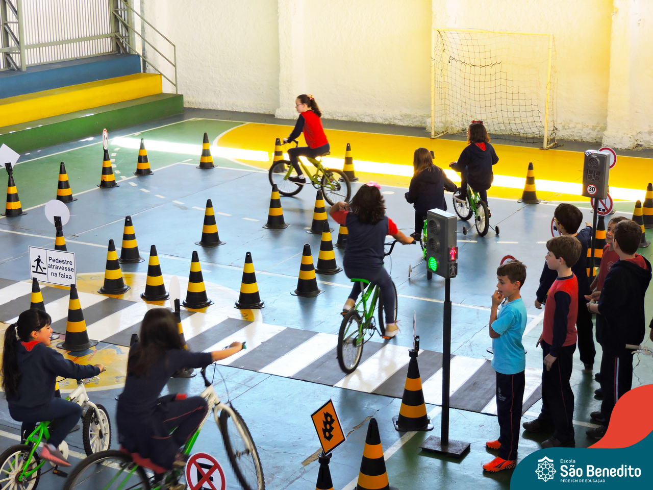 Os alunos da Educação Infantil até o 6º Ano, participaram de um circuito que simula o trânsito, que foi montado na quadra da Escola. Esse é o projeto “Escolinha de Trânsito”, do 2º BRBM.