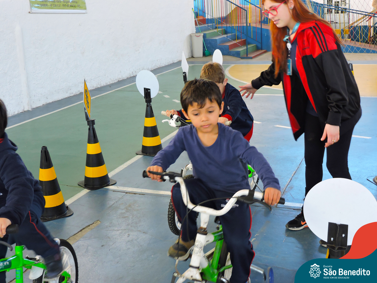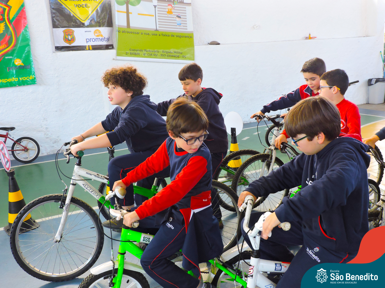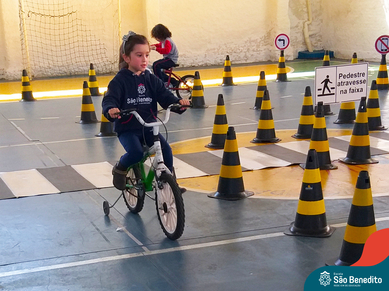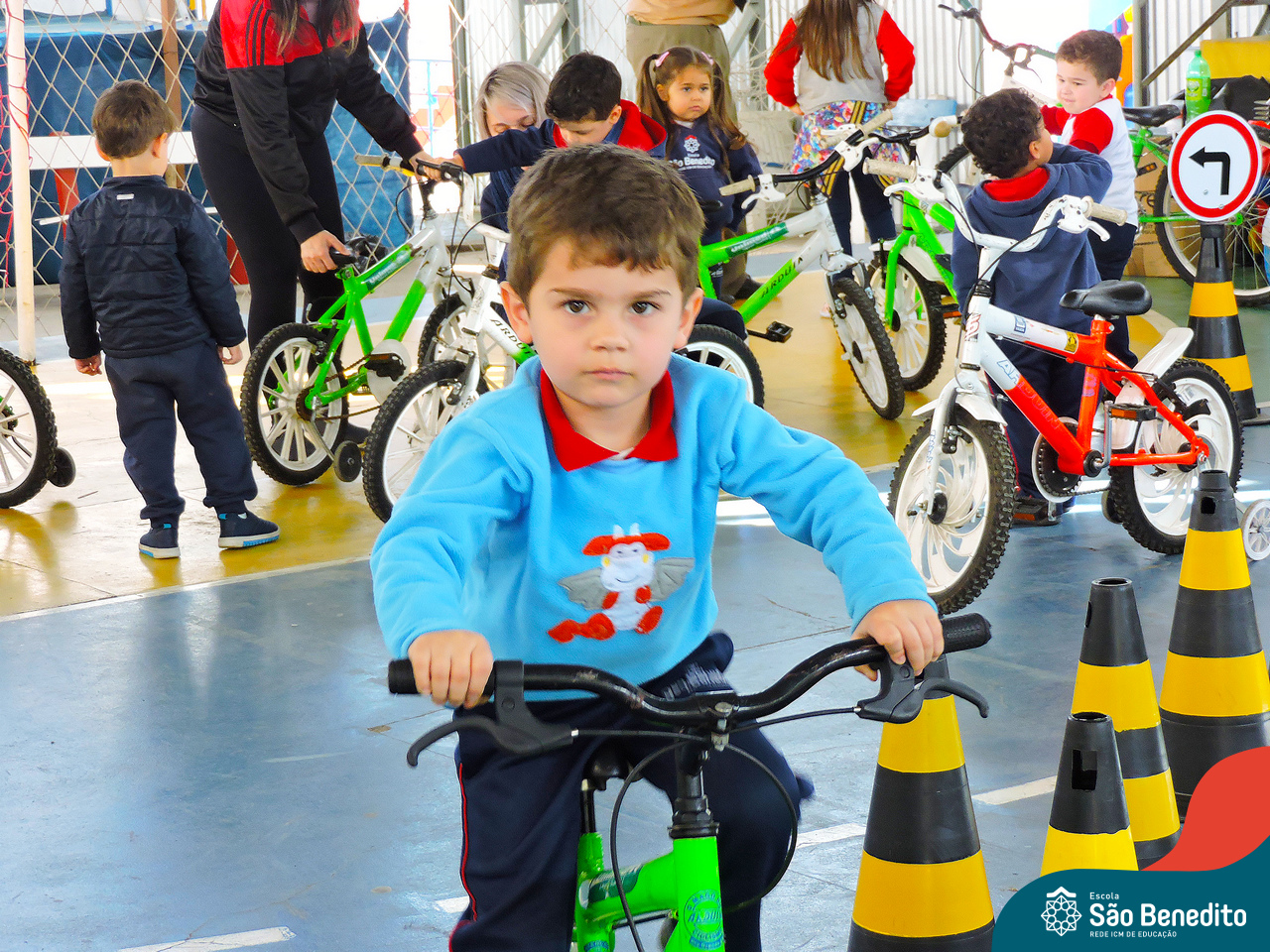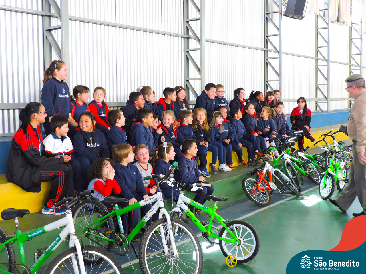 Os alunos da Educação Infantil até o 6º Ano, participaram de um circuito que simula o trânsito, que foi montado na quadra da Escola. Esse é o projeto “Escolinha de Trânsito”, do 2º BRBM.
