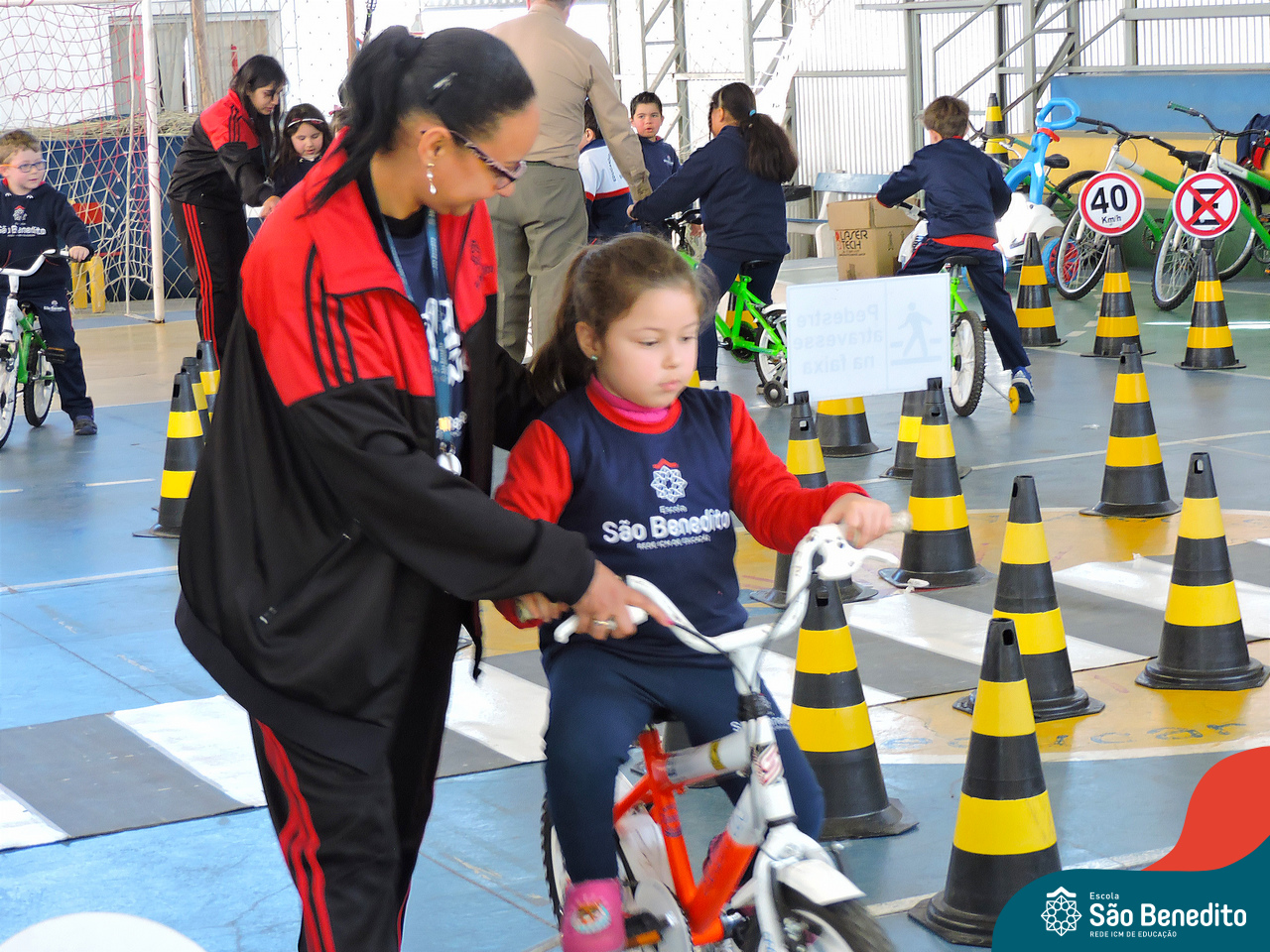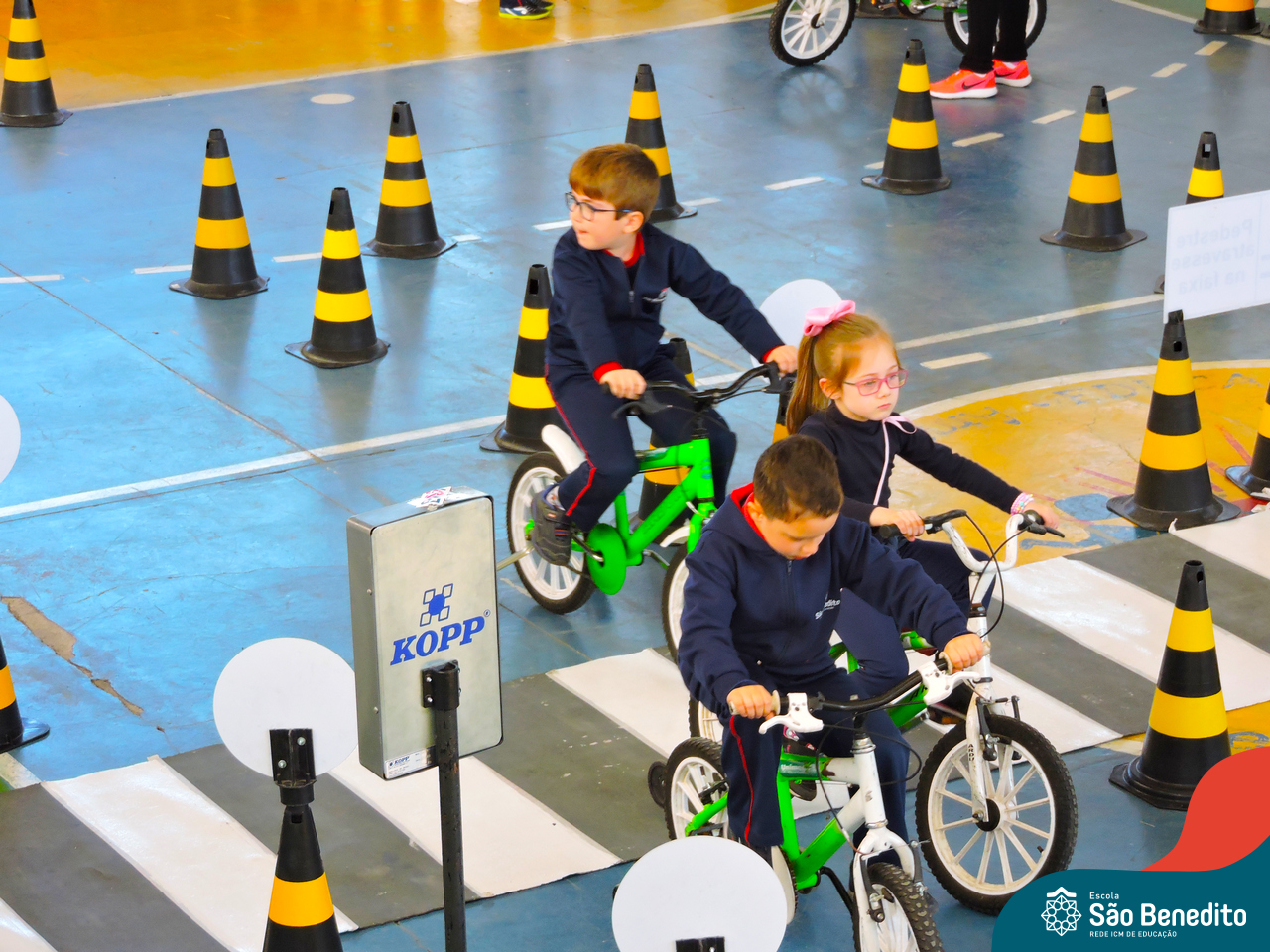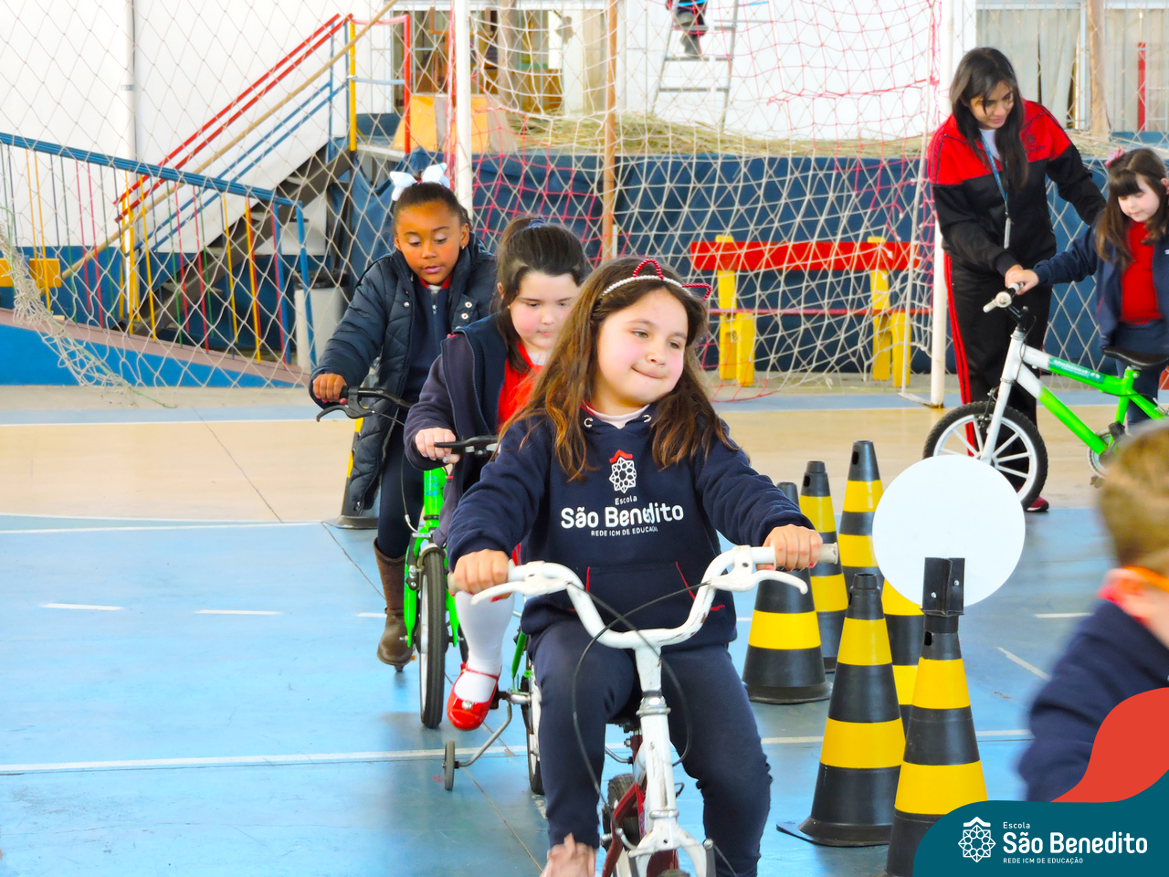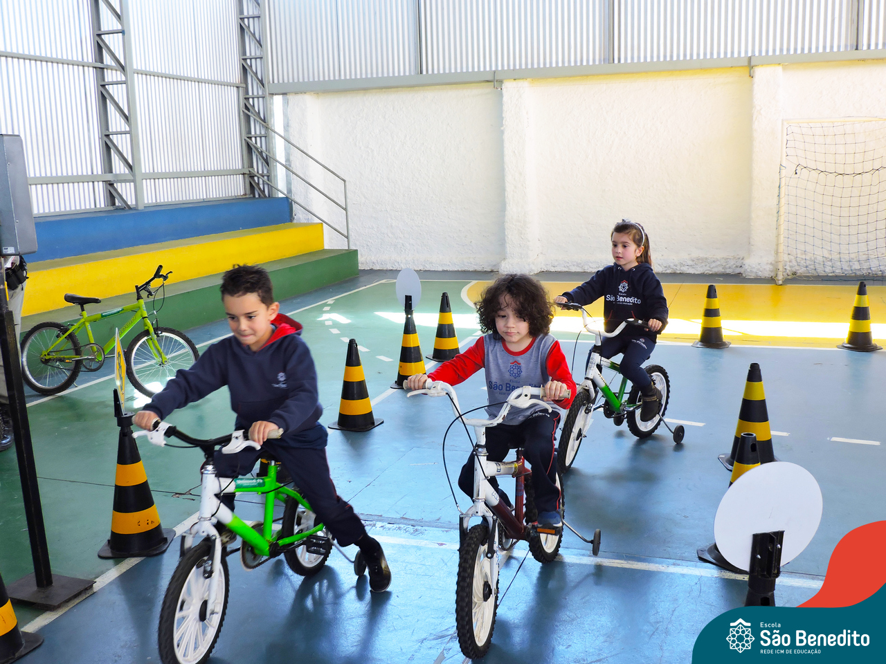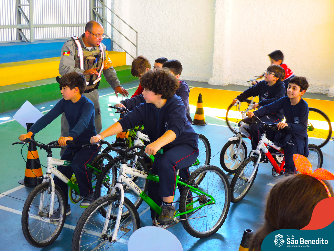 Os alunos da Educação Infantil até o 6º Ano, participaram de um circuito que simula o trânsito, que foi montado na quadra da Escola. Esse é o projeto “Escolinha de Trânsito”, do 2º BRBM.